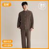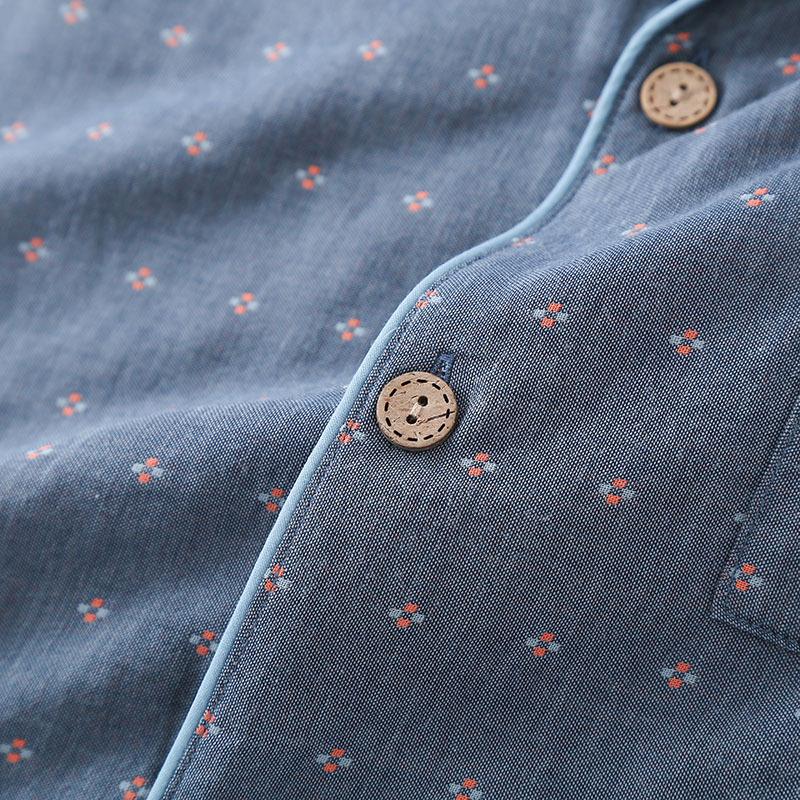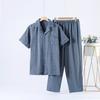 Pijama de Gasa Doble Capa de Algodón Puro de Verano Estilo Muji Japonés para Hombre, Delgada de Primavera y Otoño de Manga Corta y Pantalón Largo, Puede Usarse Afuera como Ropa de Descanso