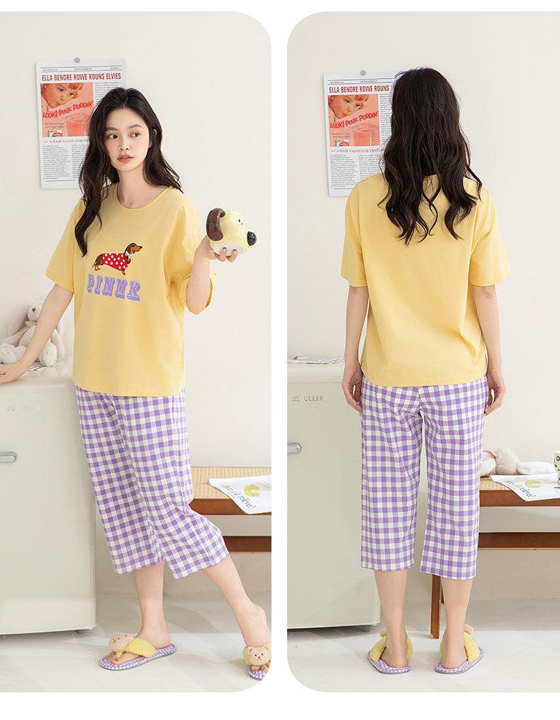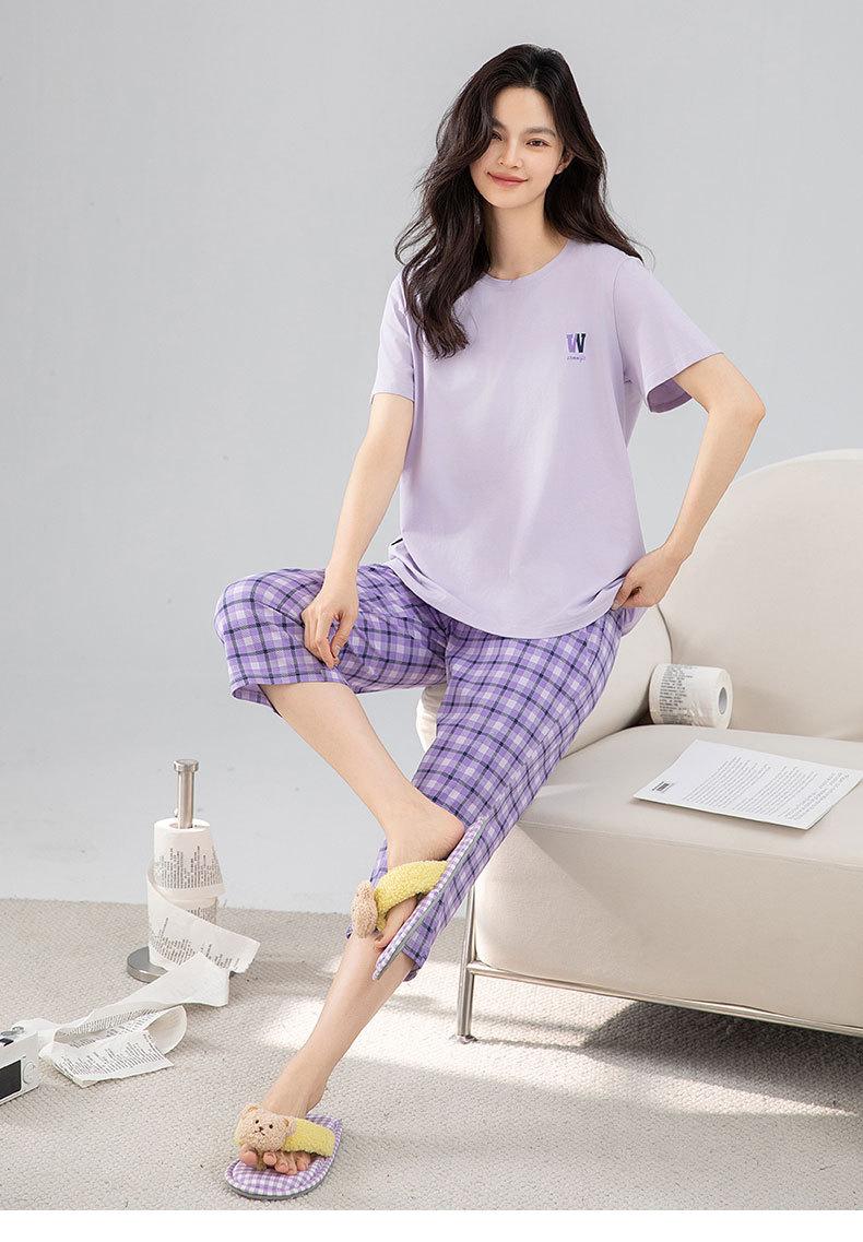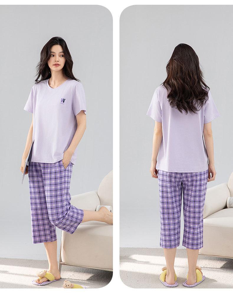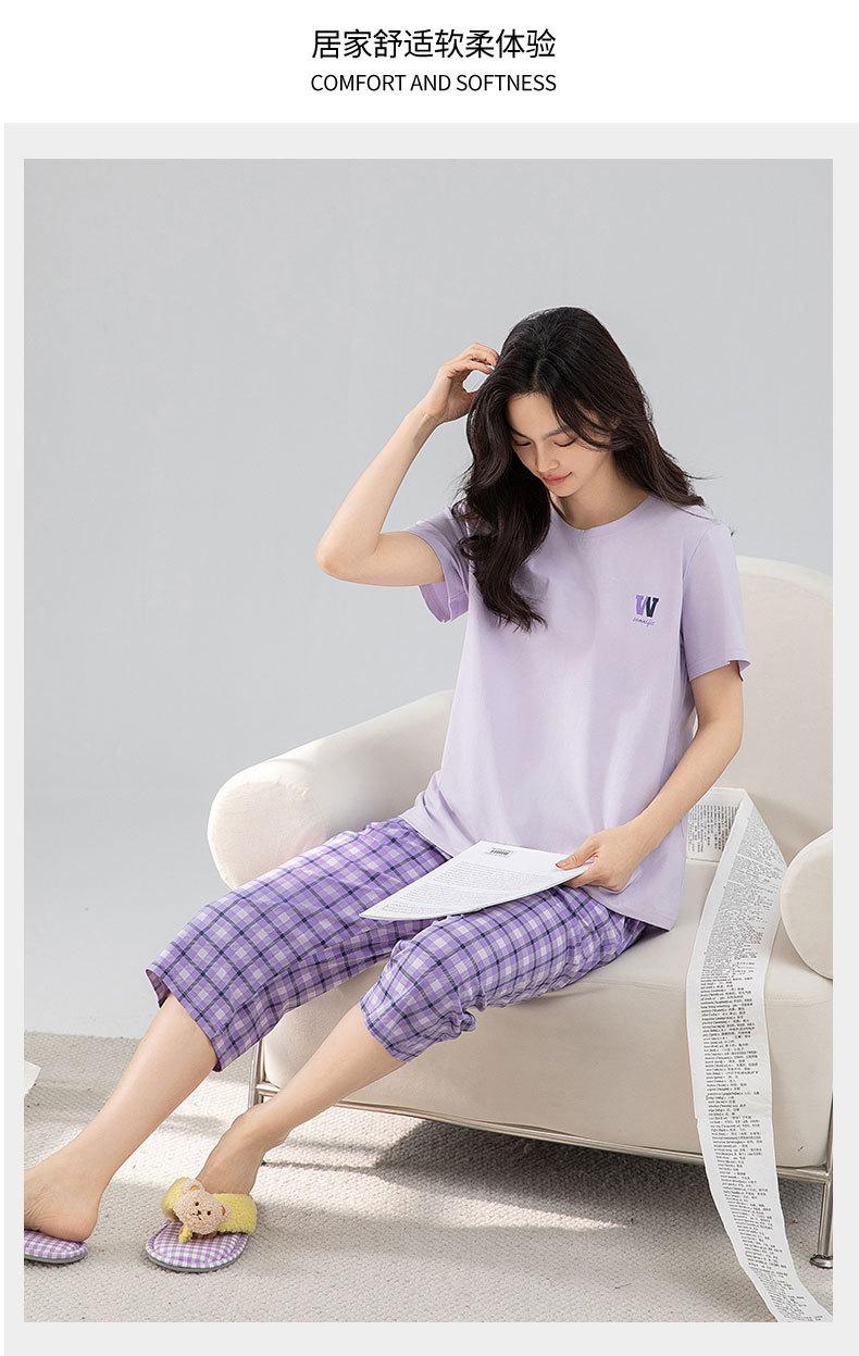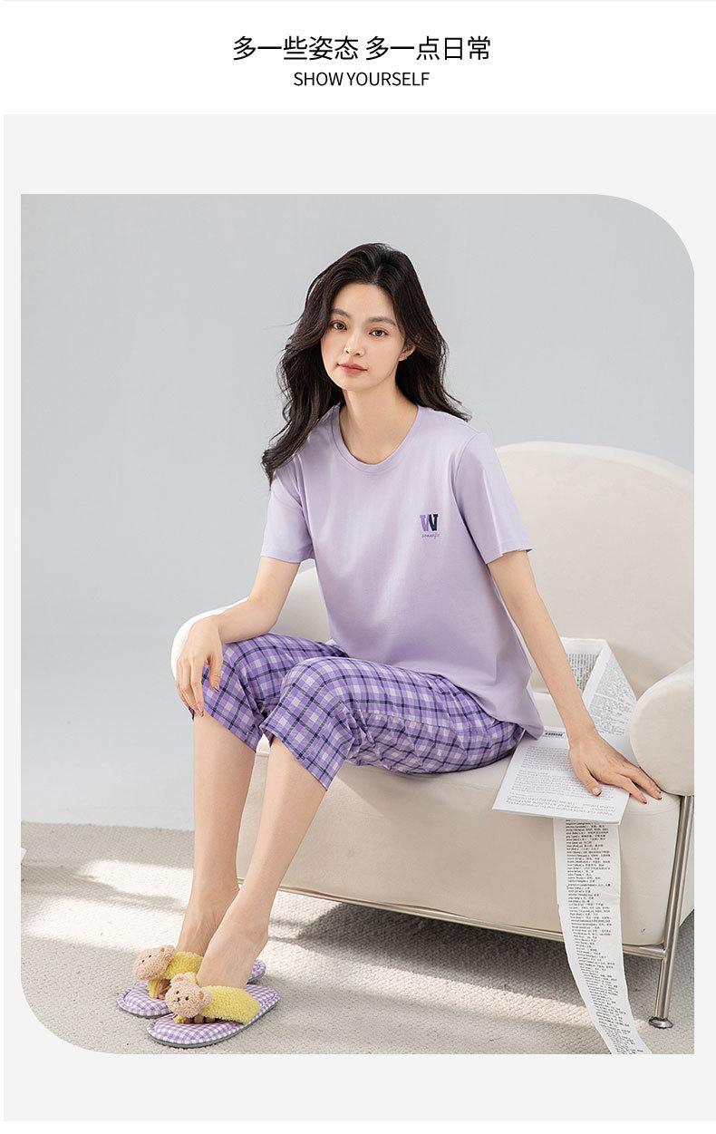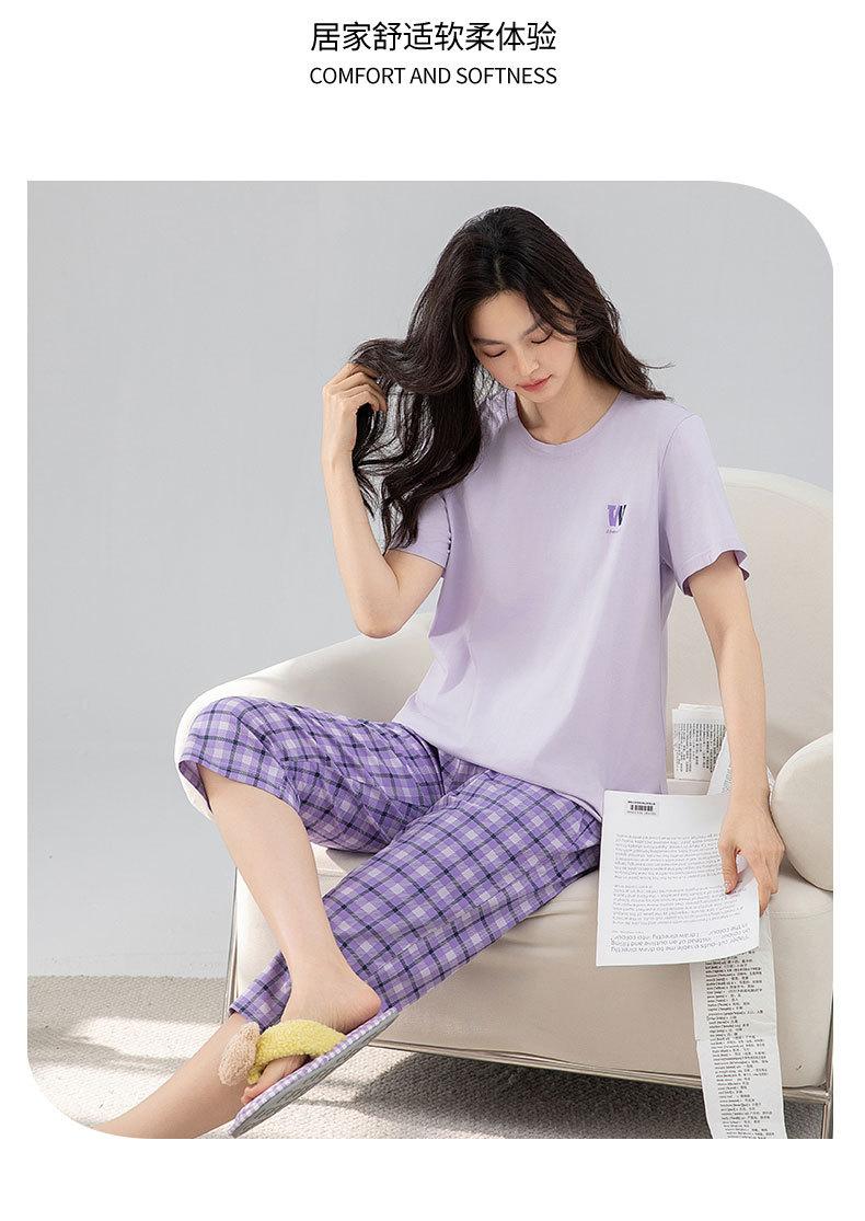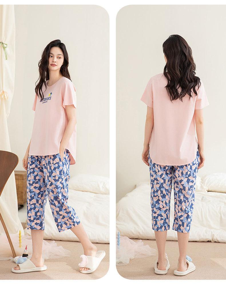Pijamas para Mujer Verano Manga Corta Pantalones Recortados Algodón Puro Fresco Ropa de Casa para Mujer Estilo Verano 2025 Nuevo Casual Se Puede Usar Afuera
