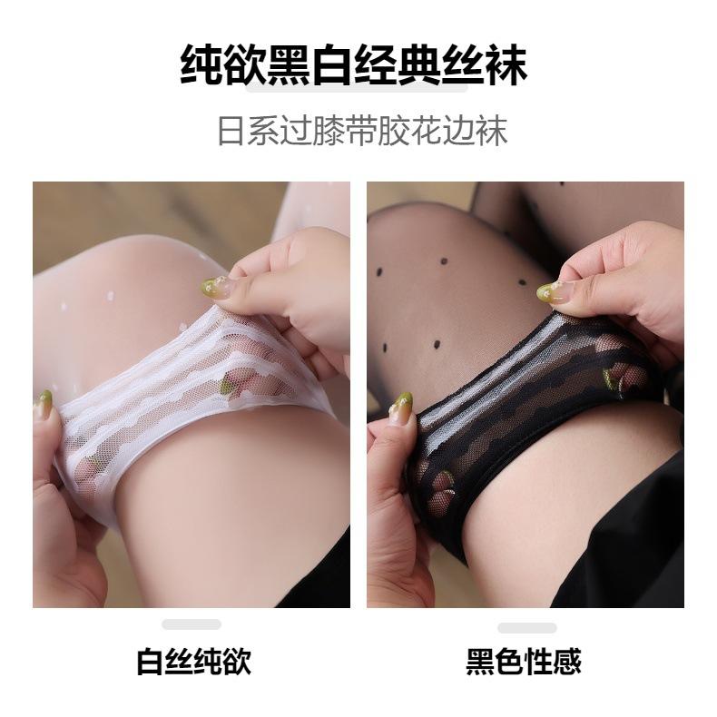 Medias Japonesas de Encaje de Lunares Blancos Talla Grande Hasta la Rodilla Negras Transparentes de Silicona Antideslizantes Talla Grande Pierna Hermosa Calcetines de Tubo Largo