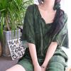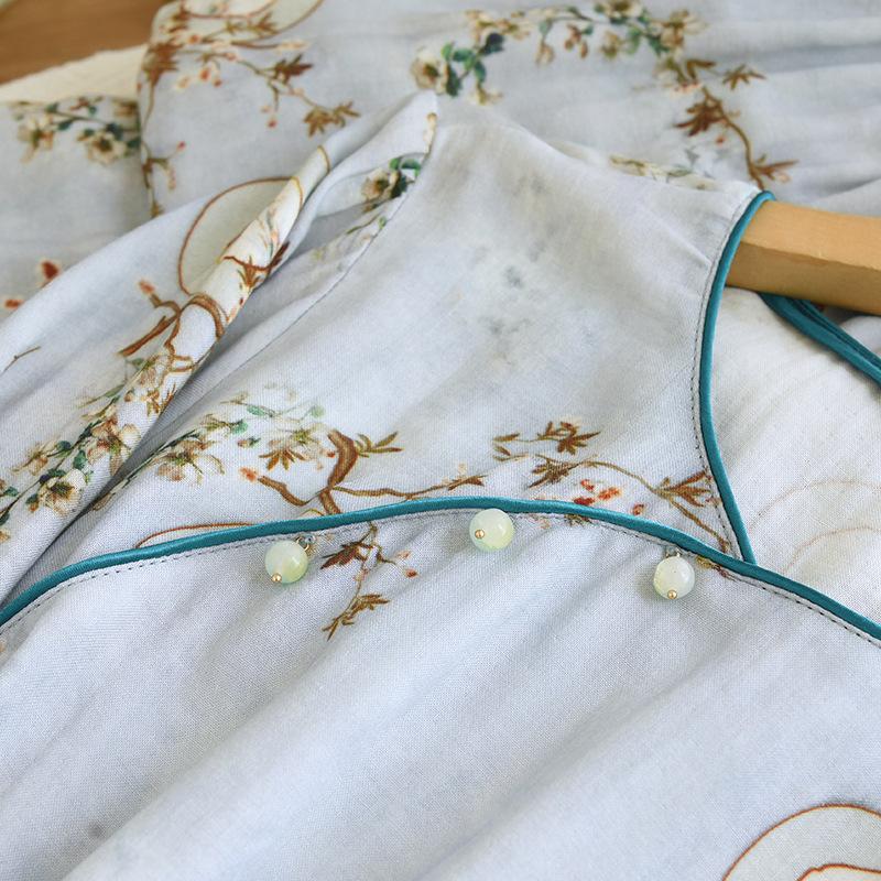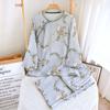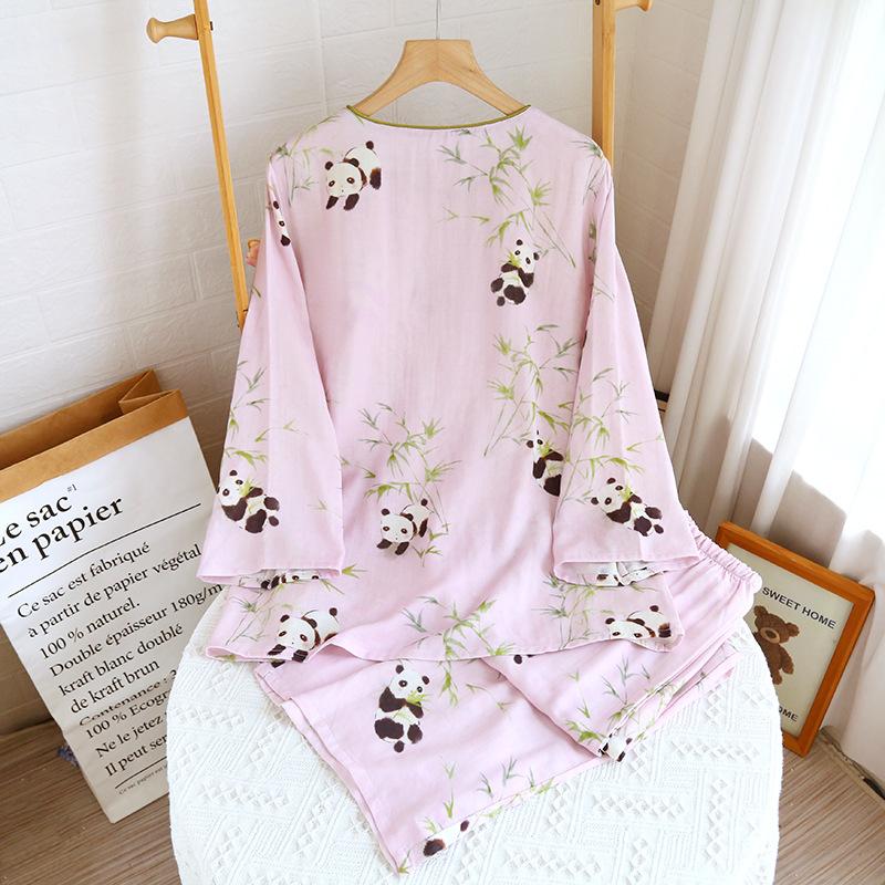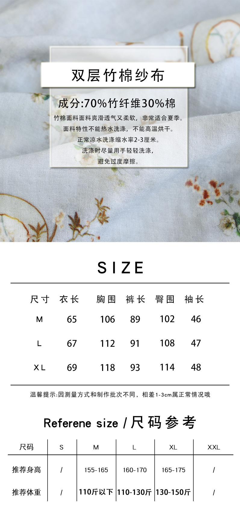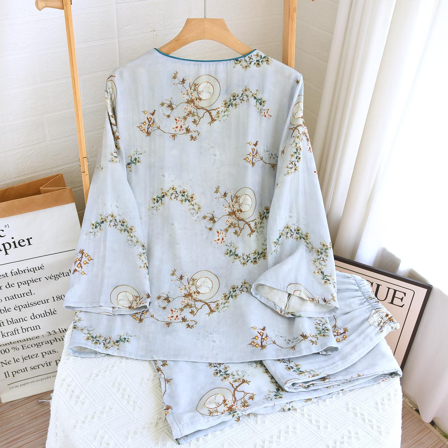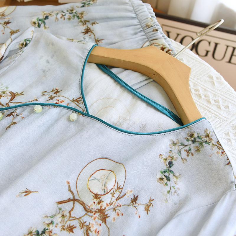 Pijama de Estilo Chino Nuevo Conjunto de Dos Piezas Transpirable Holgado Traje de Verano para Mujer Retro Talla Grande Fibra de Bambú Ropa para el Hogar