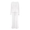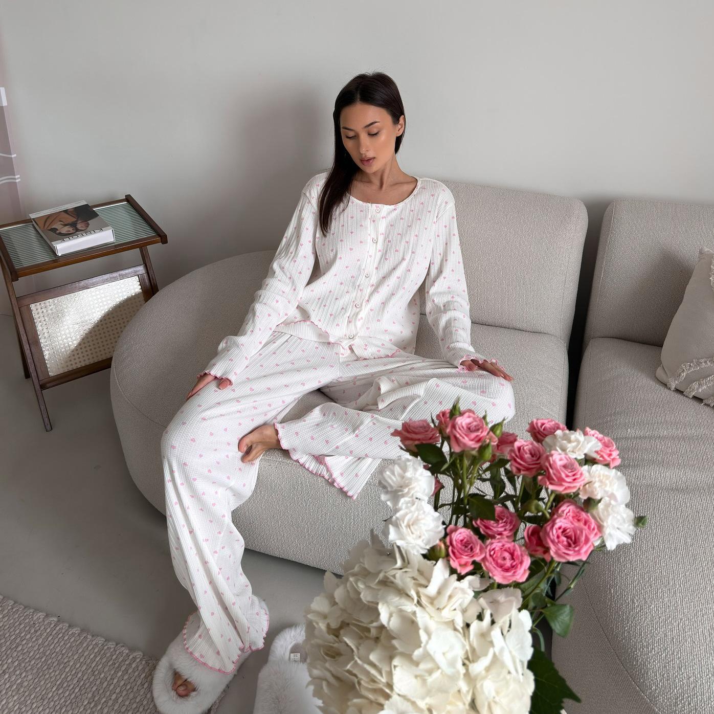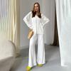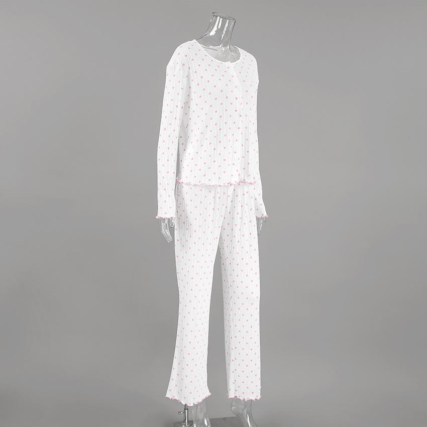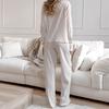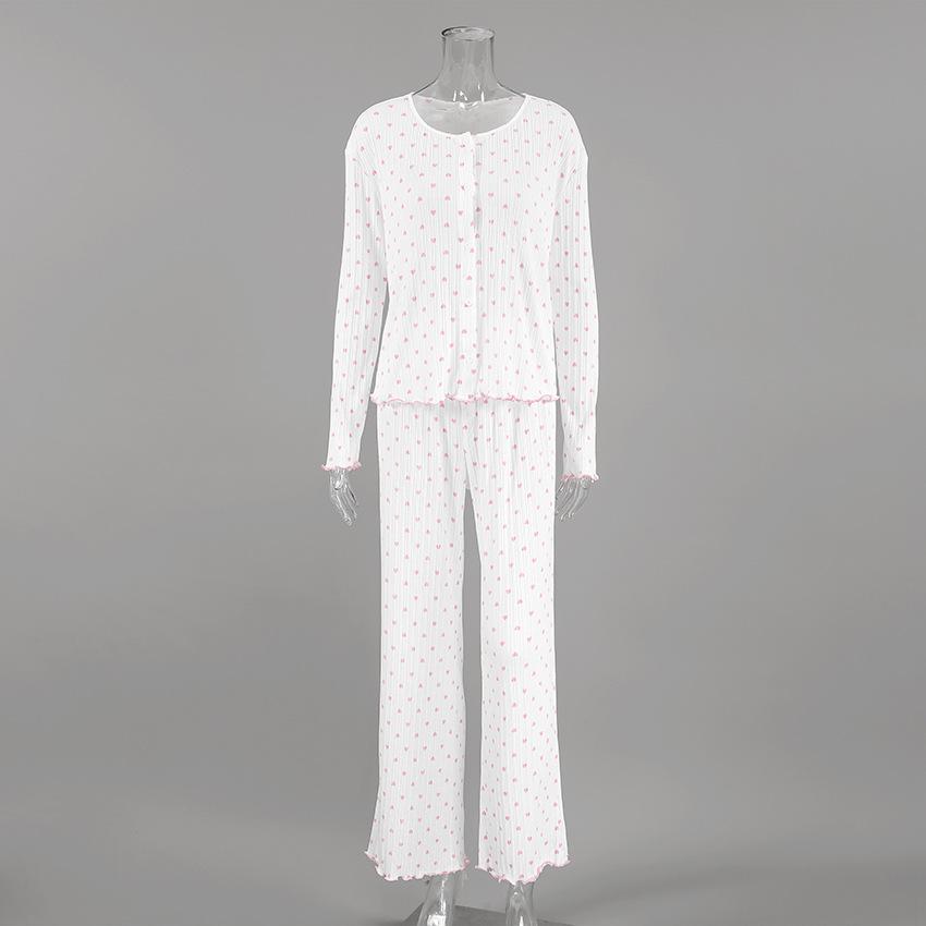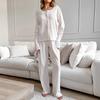 Conjunto de Pijama Europeo y Americano Transfronterizo Otoño Nuevo Tejido Estampado Manga Larga Pantalón 2025 Ropa de Casa Suelta y Cómoda para Mujer