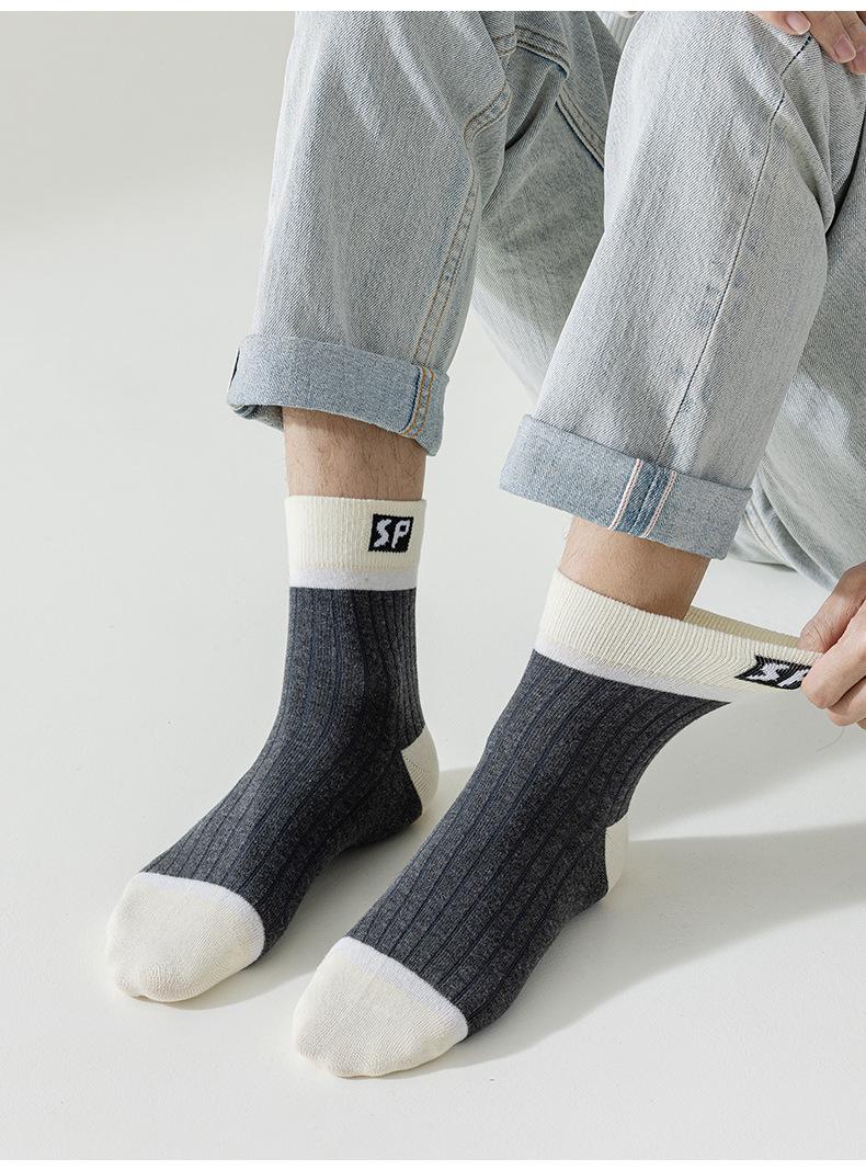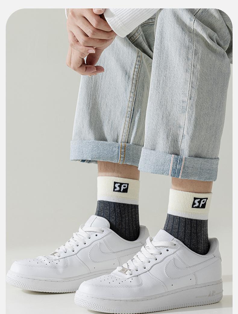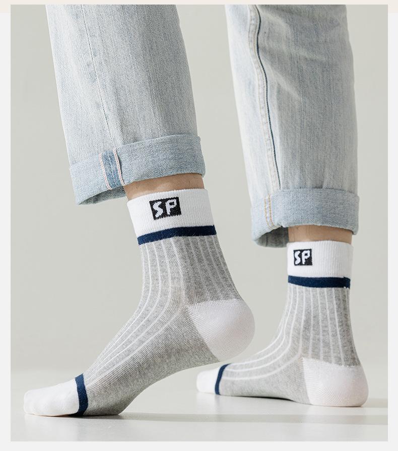 Calcetines deportivos para hombre absorbentes de sudor transpirables calcetines de negocios para hombre primavera y verano nuevos calcetines de media caña con letras tendencia de primavera y otoño calcetines versátiles