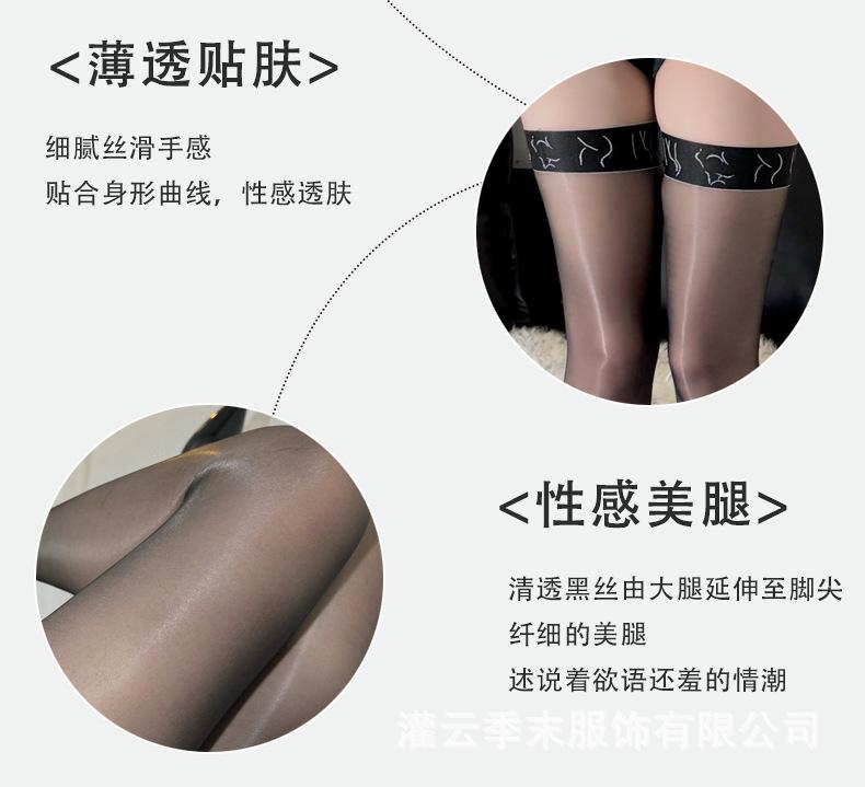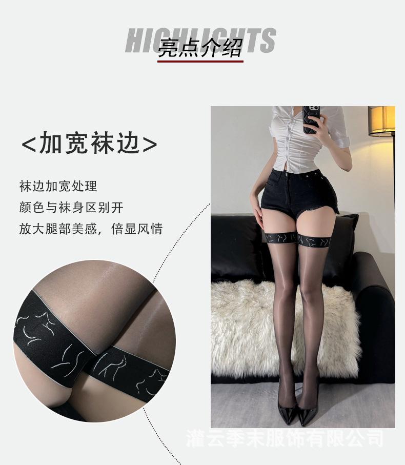 Medias Sexy Aceitosas Hasta el Muslo con Patrón de Empalme de Color Contrastante de Fin de Temporada Sedosas Aceitosas Aurora Medias Hasta el Muslo de Media Longitud 504