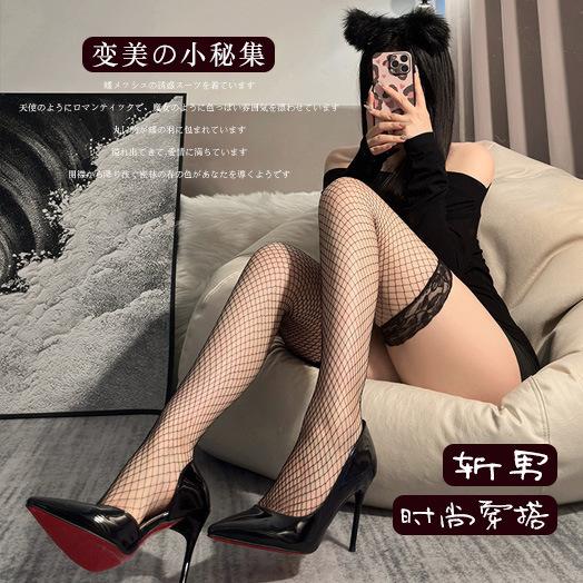 Medias de malla divertidas medias huecas de encaje negro medias finas para damas medias de red lolita calcetines hasta la rodilla blancos y negros negros