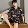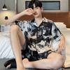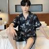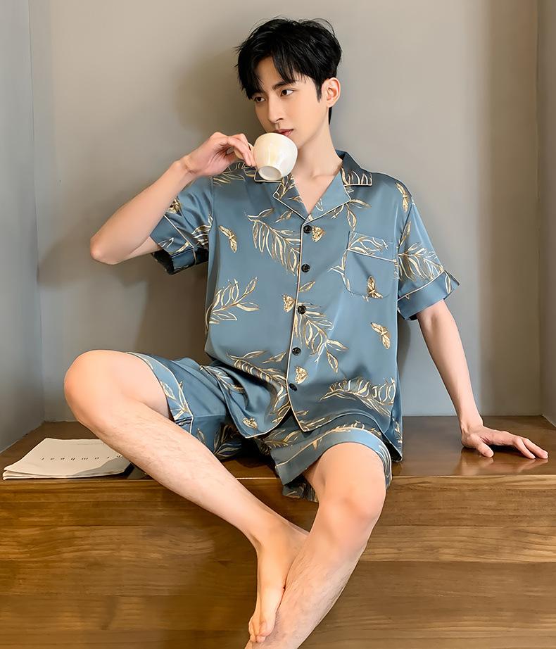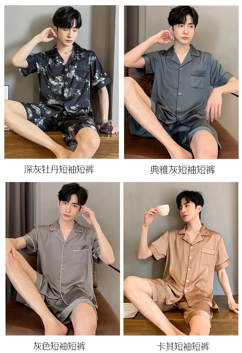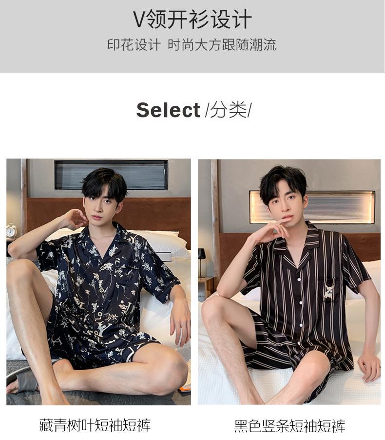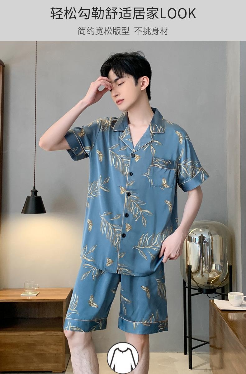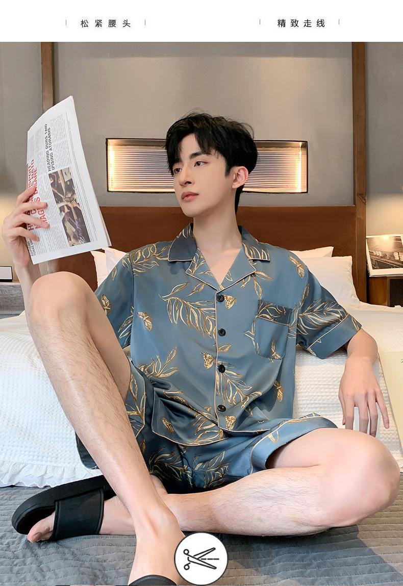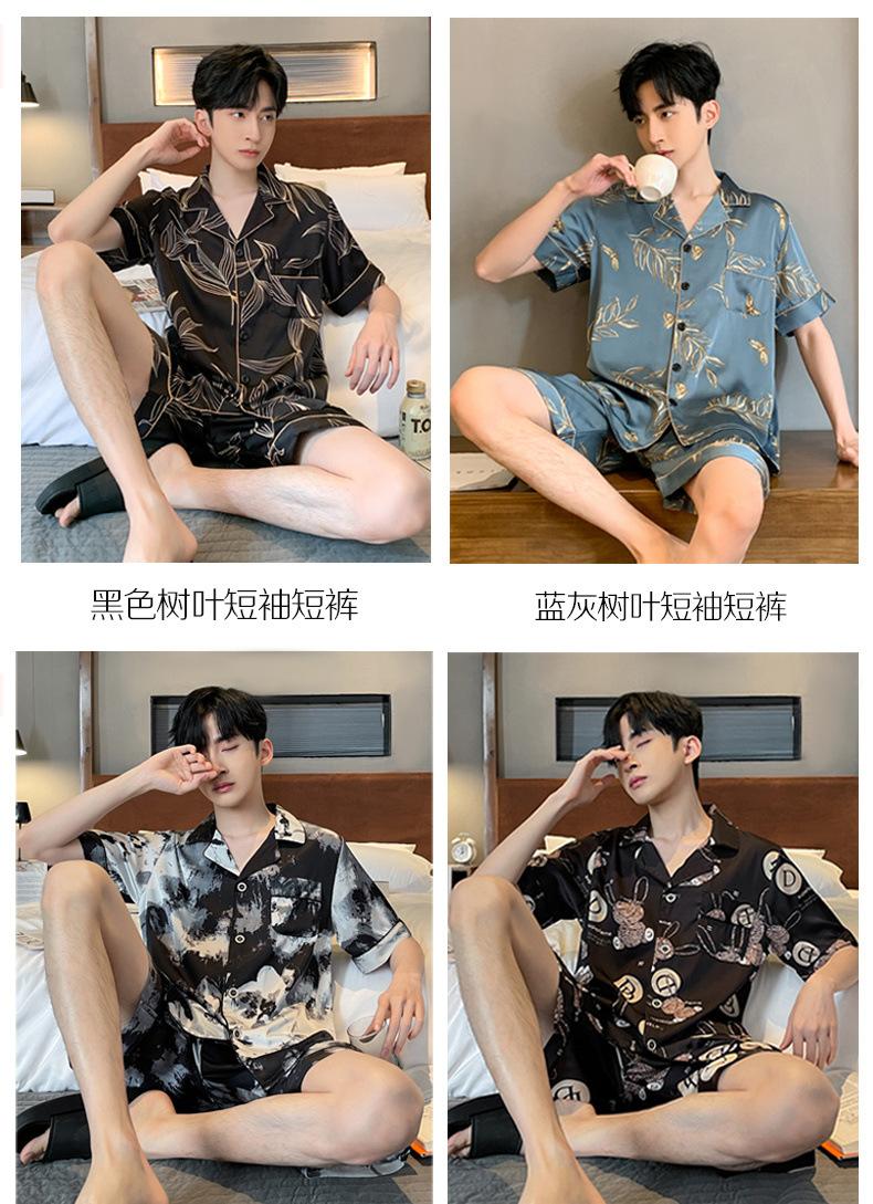 Pijama de Verano de Seda de Hielo de Manga Corta y Pantalón Corto para Hombre Ropa de Casa de Verano para Hombre Traje de Seda Fino para Primavera y Otoño para Niños