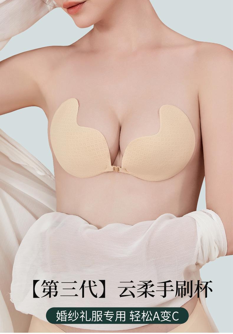 Parche para Pecho de Mango Vestido de Novia para Mujer Copa de Mano con Cepillo Invisible Verano Fino Transpirable Pecho Pequeño Push-Up Parche para Pecho Sexy Pecho Hermoso