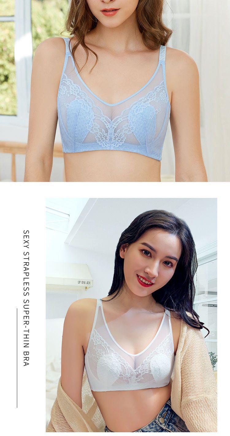 Sujetador de Verano para Mujer Sin Aros Sin Esponja Push-Up Anti-Caída Sexy de Encaje