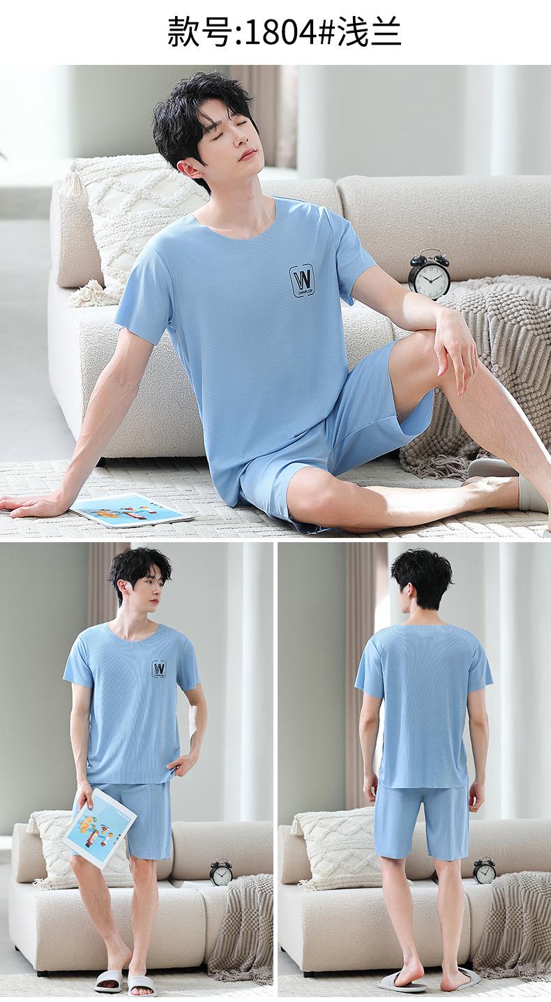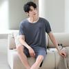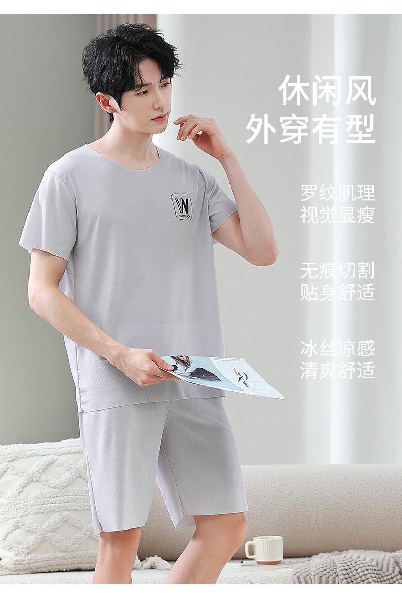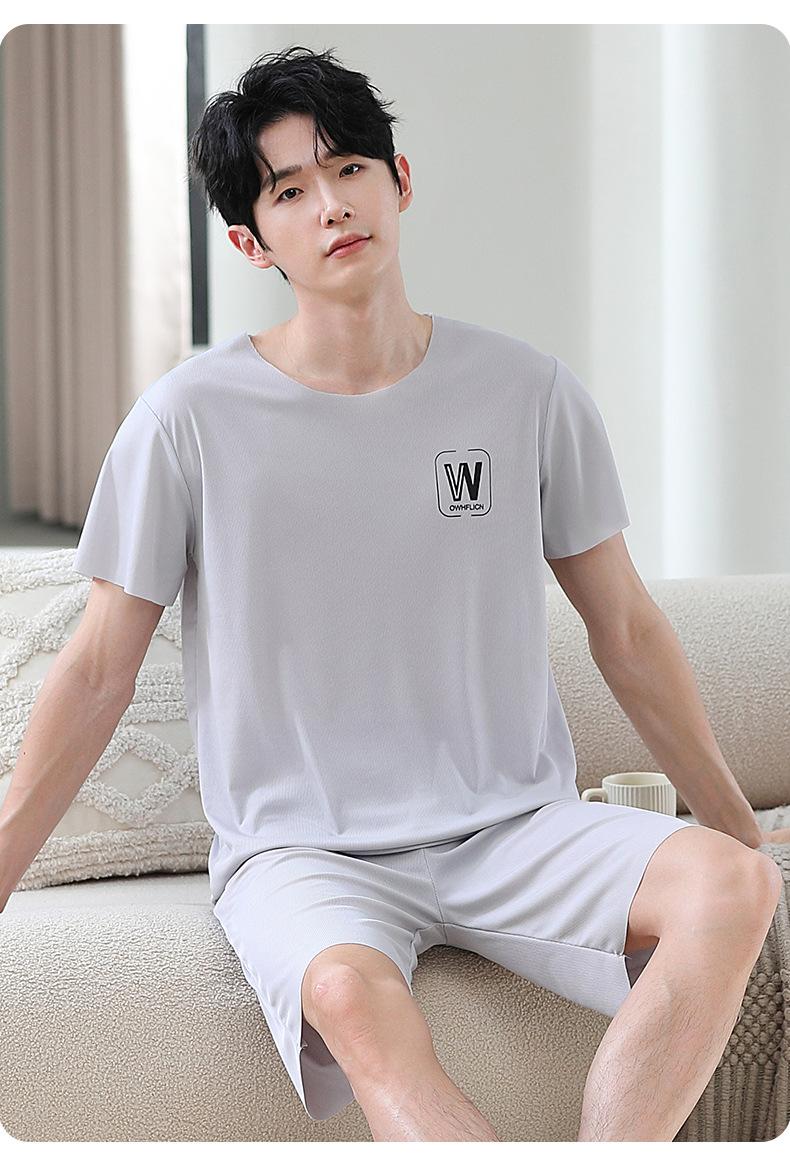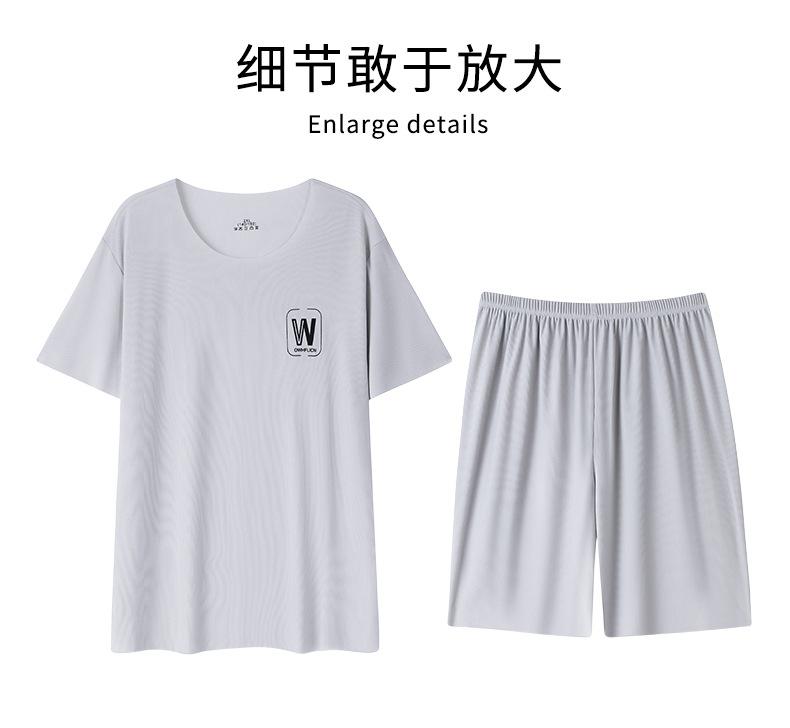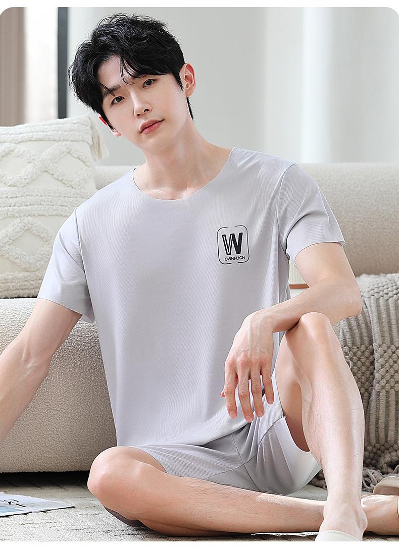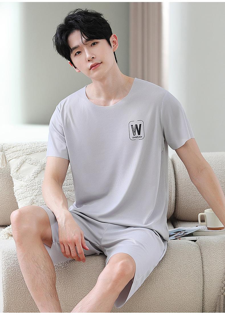 Pijama de Verano para Hombre Nuevo de Seda de Hielo Delgado de Manga Corta con Pantalones Cortos Traje Adolescentes Casual Simple Ropa para el Hogar Talla Grande
