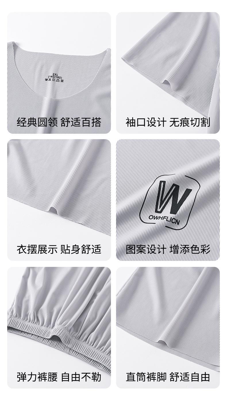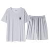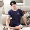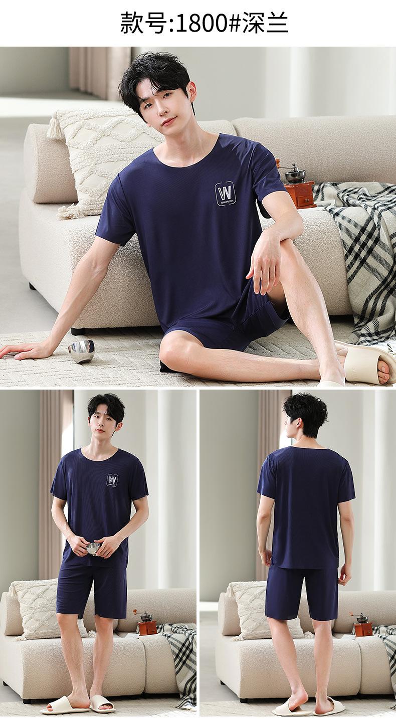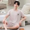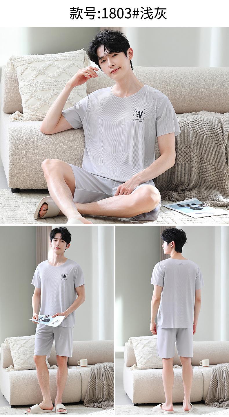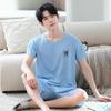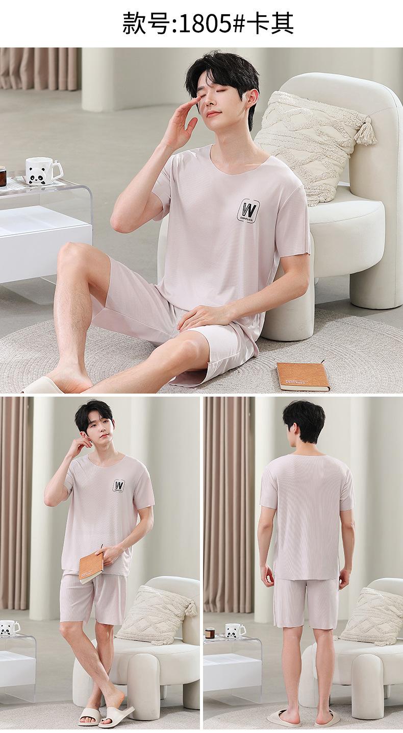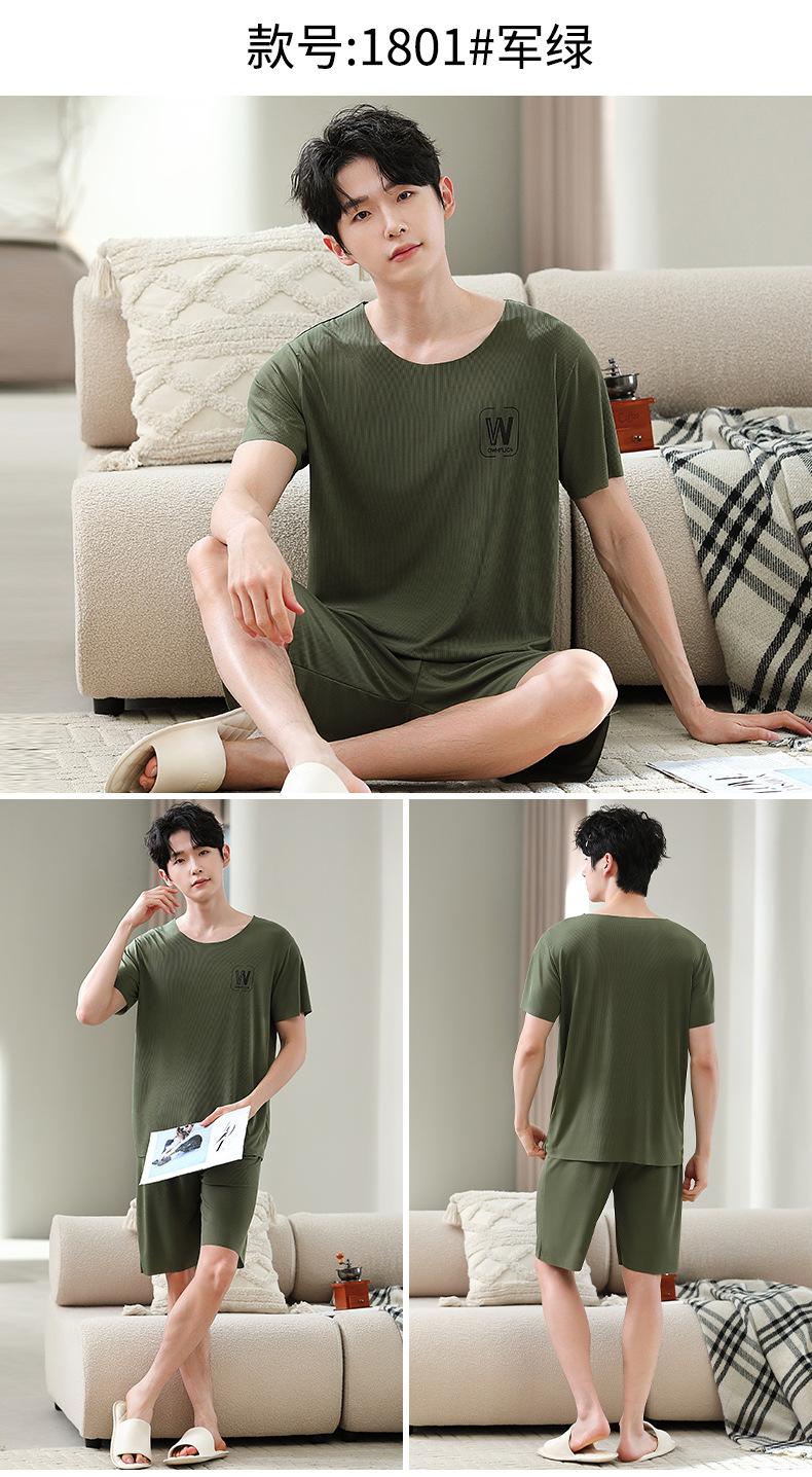 Pijama de Verano para Hombre Nuevo de Seda de Hielo Delgado de Manga Corta con Pantalones Cortos Traje Adolescentes Casual Simple Ropa para el Hogar Talla Grande