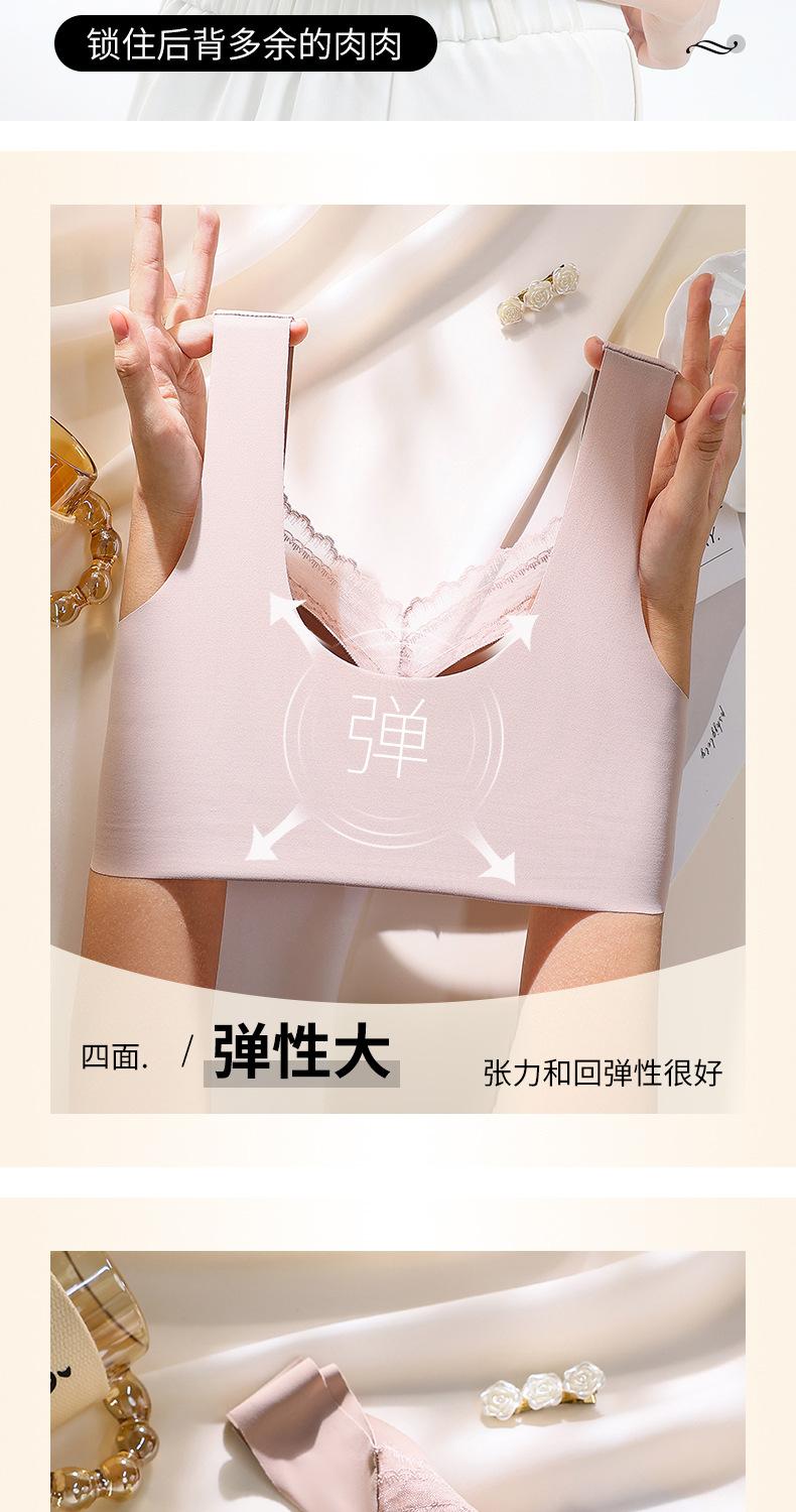 Sujetador de Encaje Sin Costuras de Espalda Hermosa para Mujer, Copa Fija, Sujetador Push-Up Cómodo, Anticaída, Reducción Lateral de Busto, Sujetador Delgado