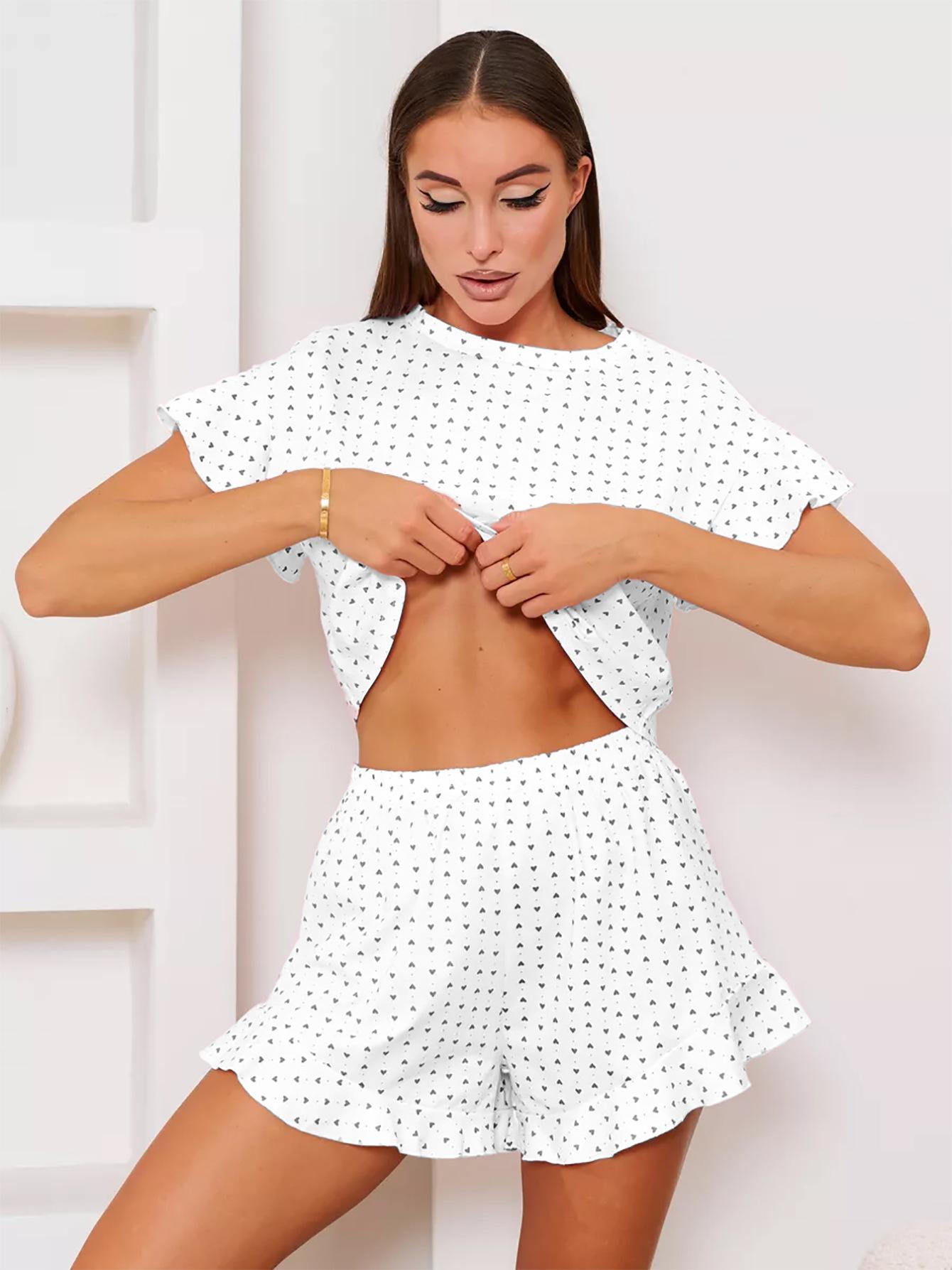 Conjunto de dos piezas de verano europeo y americano transfronterizo de manga corta y shorts para estar en casa para mujer, holgado y cómodo