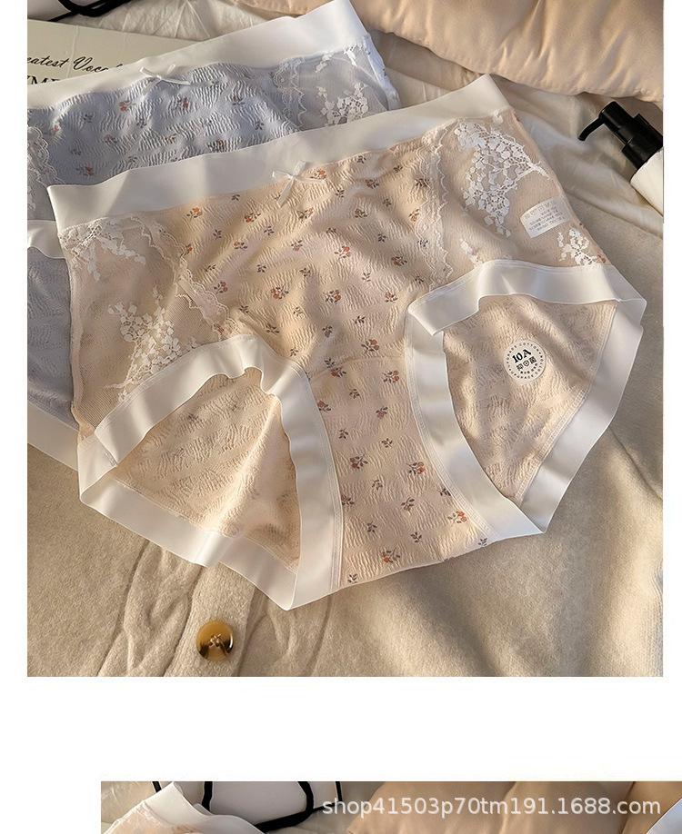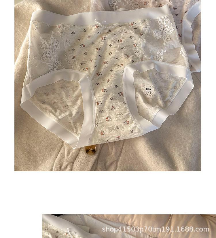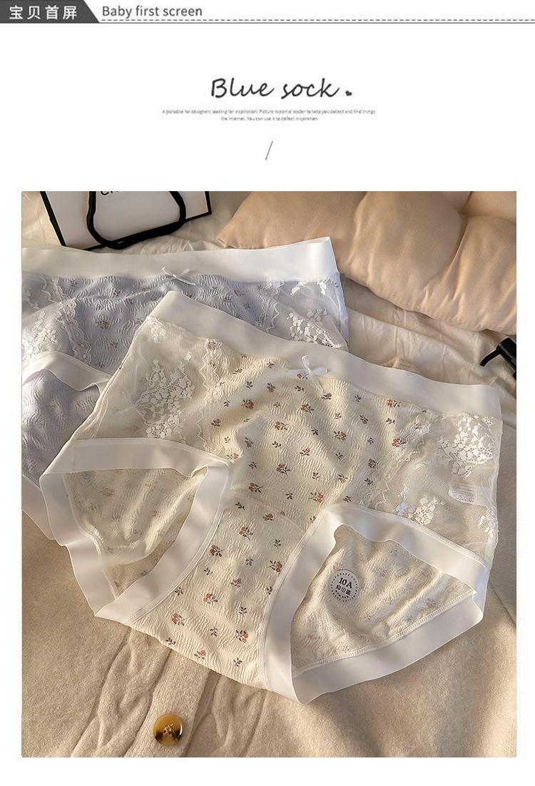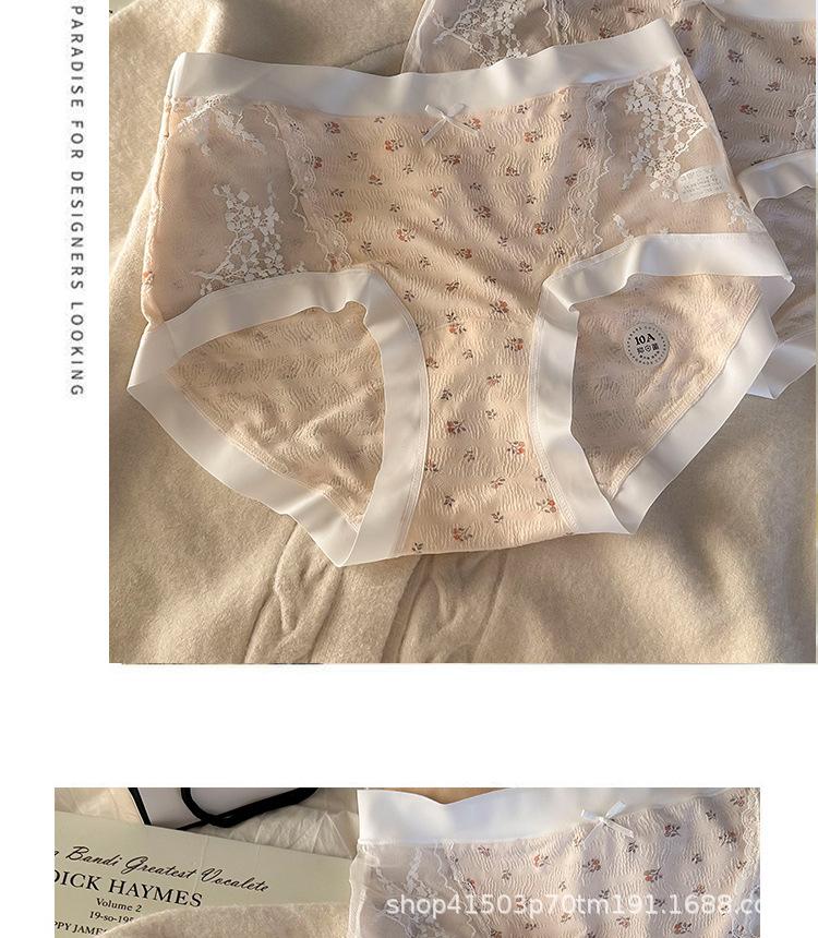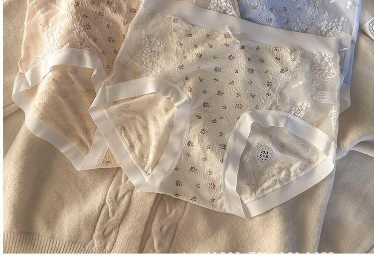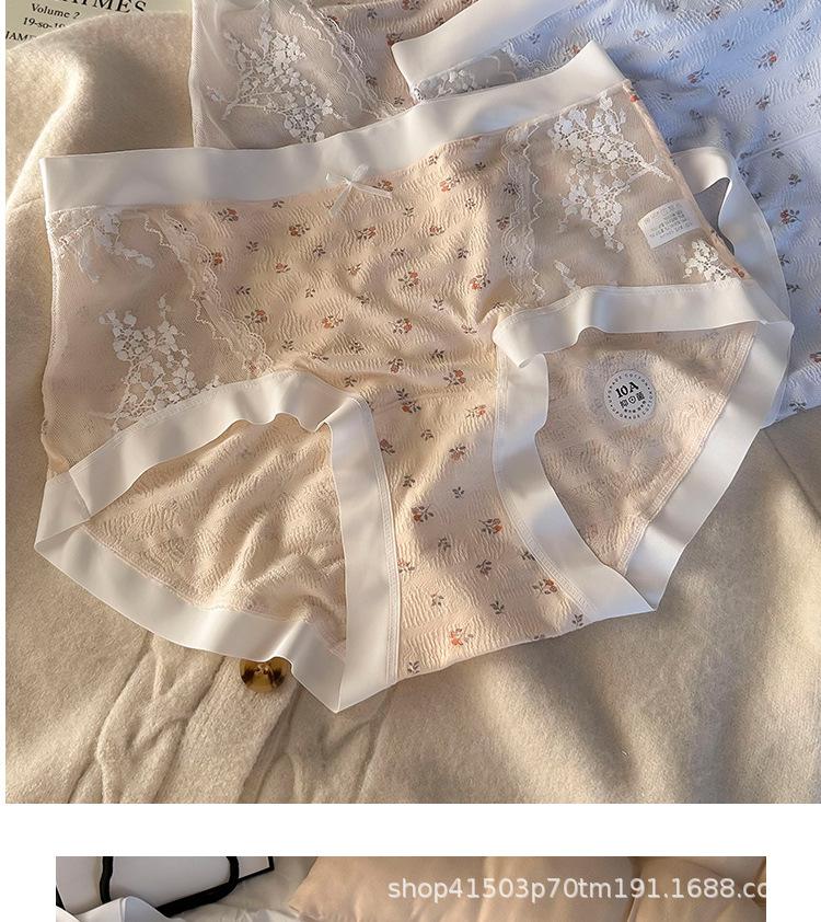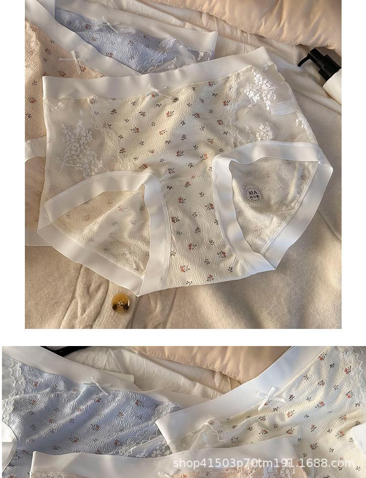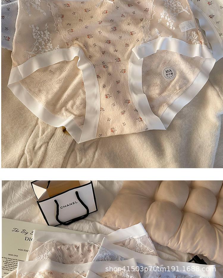 Calzones de malla patchwork floral estilo coreano estilo japonés para niñas de cintura media que favorecen la cadera, son amigables con la piel, sin costuras, desnudos y transpirables