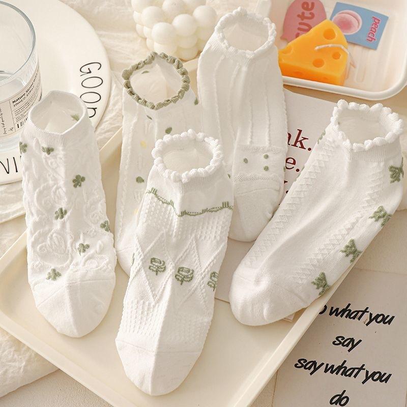 Calcetines Cortos de Encaje Finos de Verano para Mujer Estilo Mori Transpirables con Volantes Corte Bajo Tipo Calcetín de Barco al Mayoreo