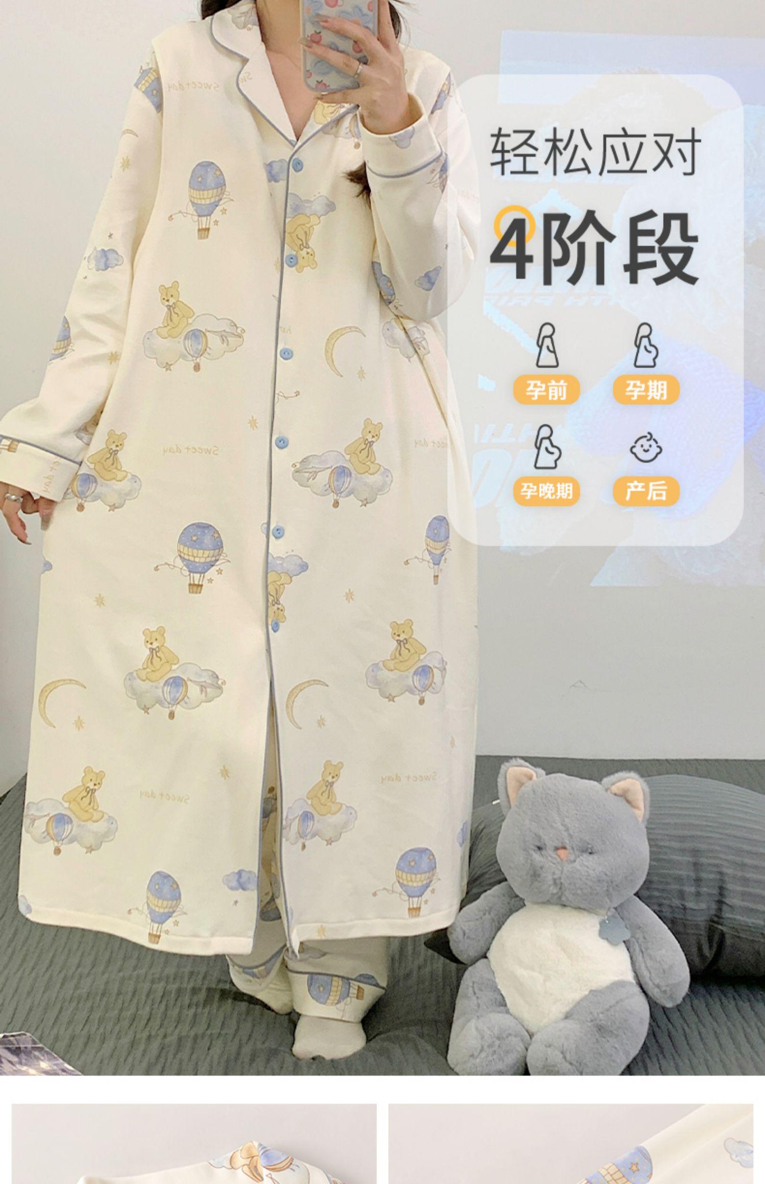 Vestido de Maternidad para Mujeres Embarazadas, Pijama de Lactancia Puro Delgado de Verano, Vestido de Confinamiento Postparto de Algodón con Pantalones para Mujeres