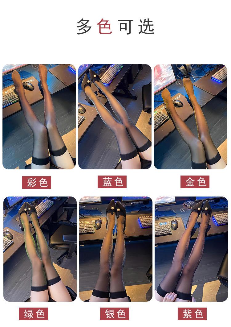 Medias Largas Negras Brillantes Plateadas de Gypsophila Club Nocturno Brillo de Alta Gama Nacaradas Sexy Medias Ultrafinas
