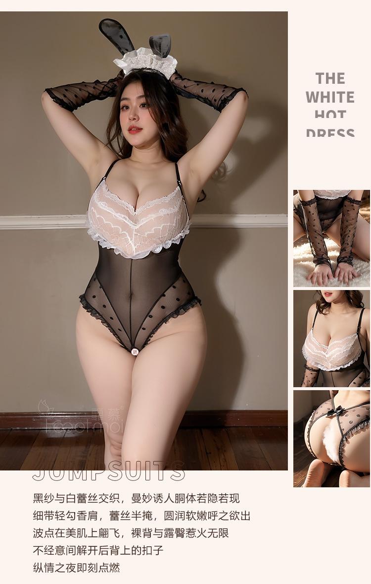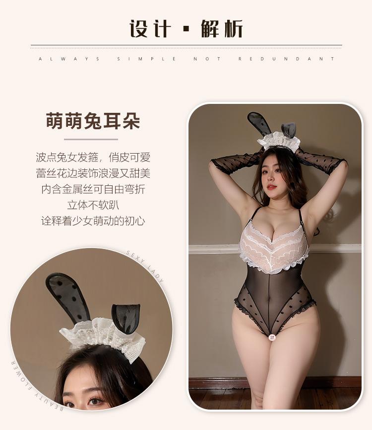 ◆Extragrande◆Negro+Blanco【Diadema+Body con Entrepierna Abierta+Mangas*2】 6937486693058 (Límite de Precio 58)