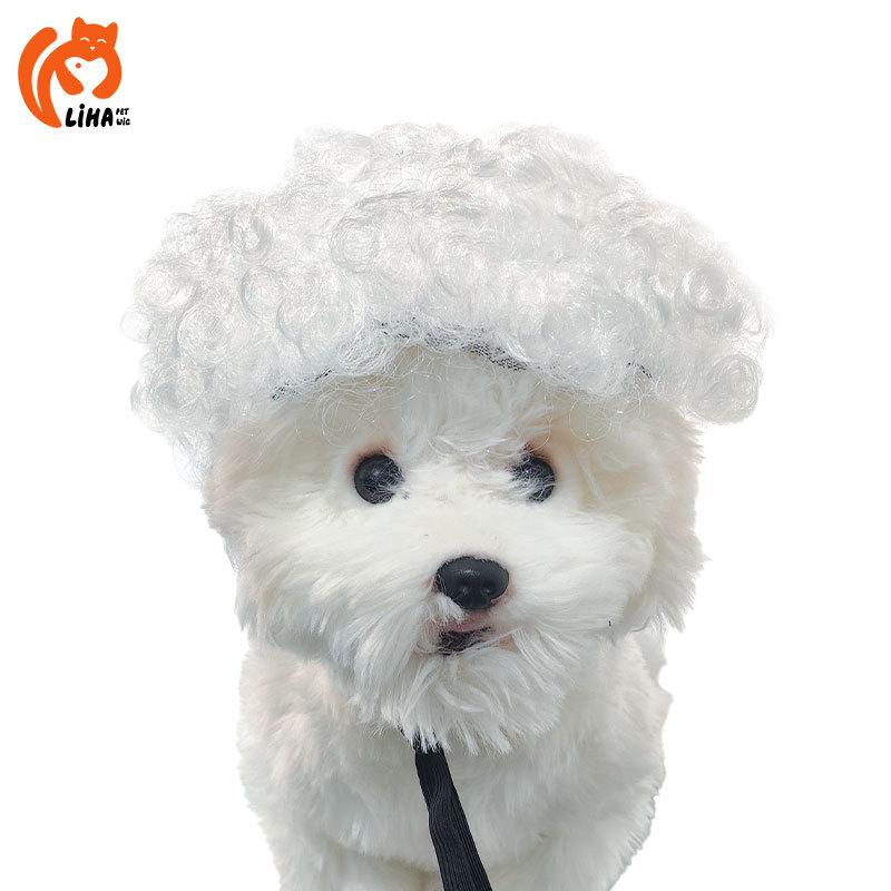 Peluca Popular para Mascota Afro Blanco Halloween Cosplay Accesorios Sombrerería Foto [Procesamiento y Personalización]