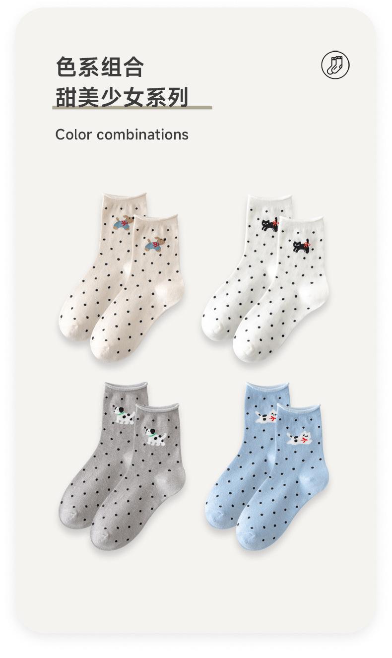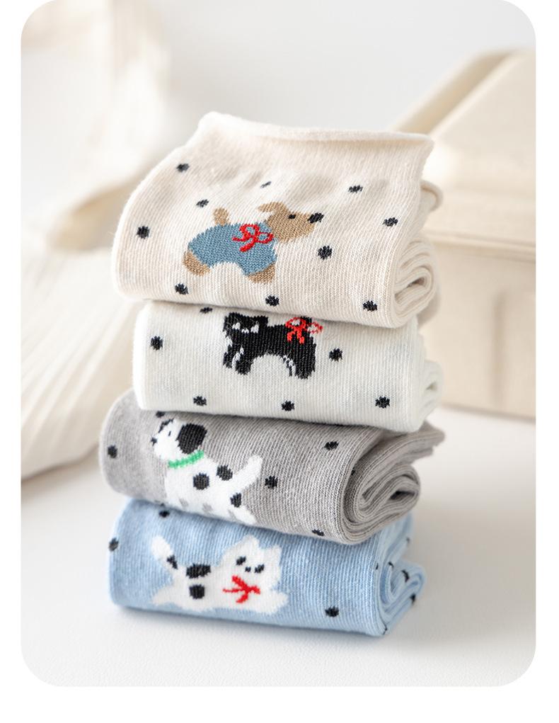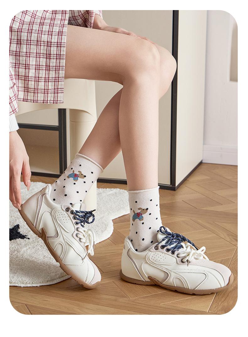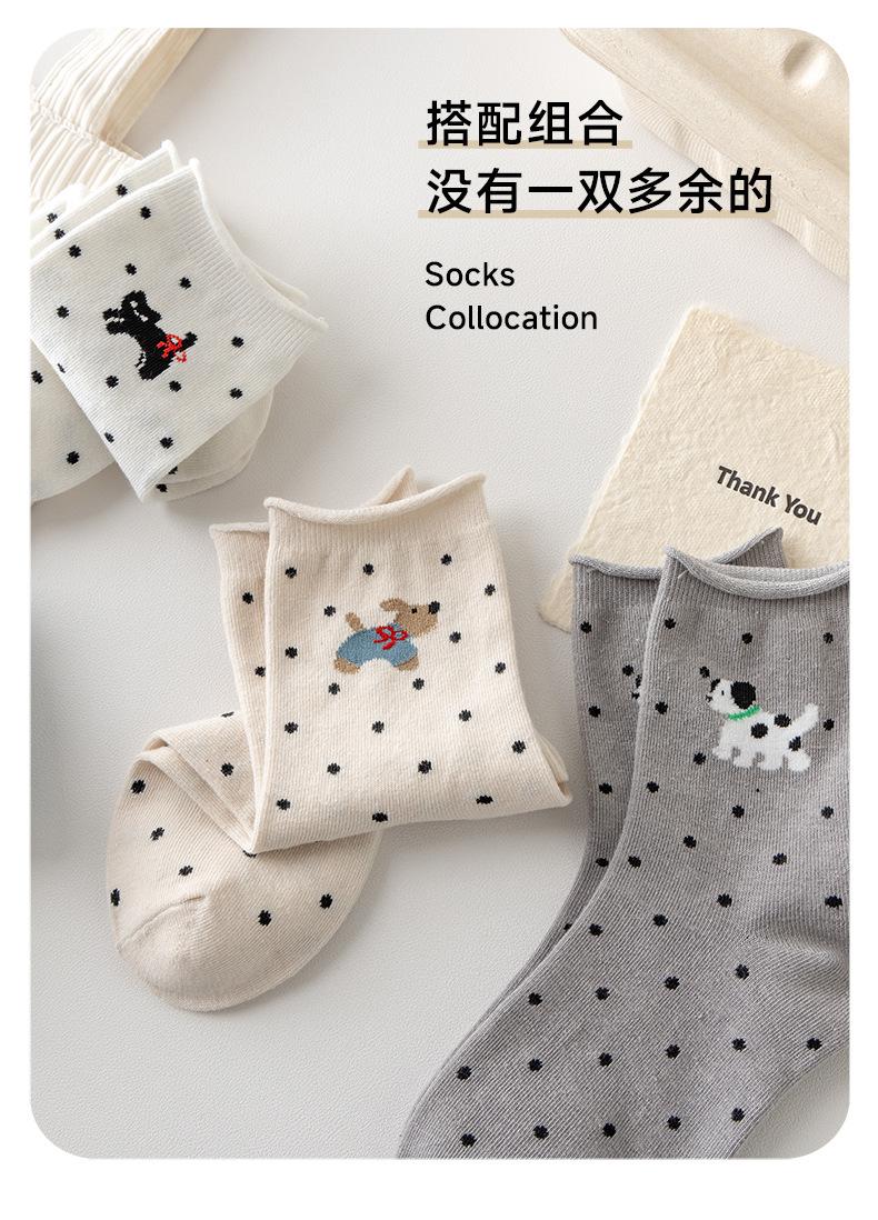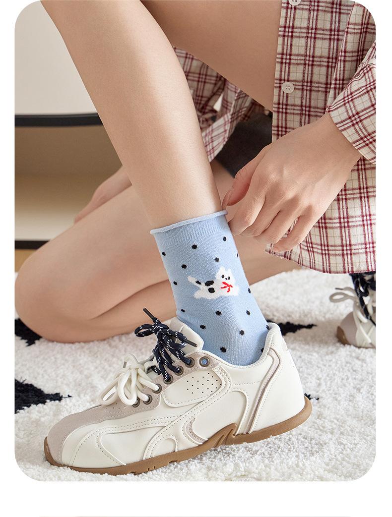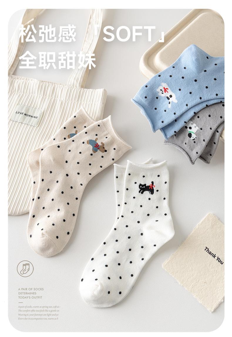 Calcetines de Animales de Dibujos Animados para Mujer, Calcetines Finos de Media Caña Estilo Japonés para Primavera y Otoño, Calcetines Slouch de Borde Enrollado con Lunares, Calcetines Largos Versátiles de Moda