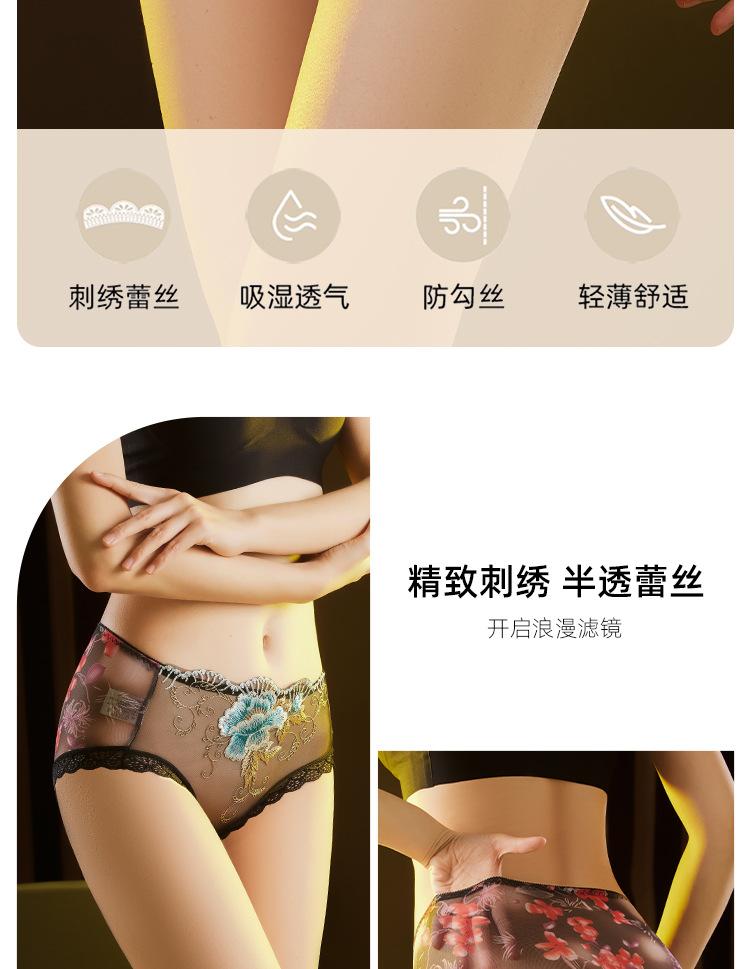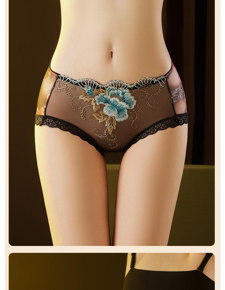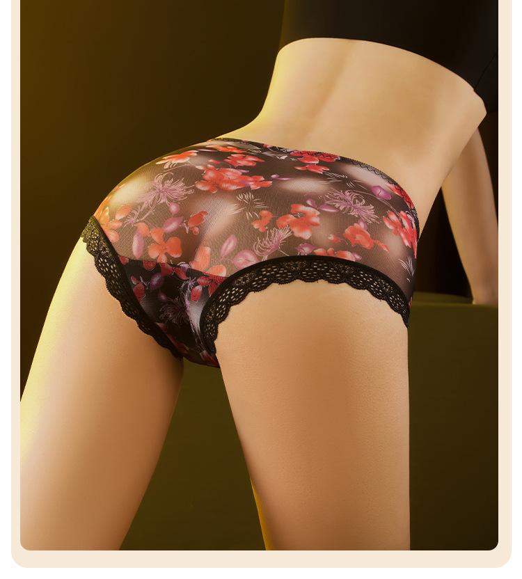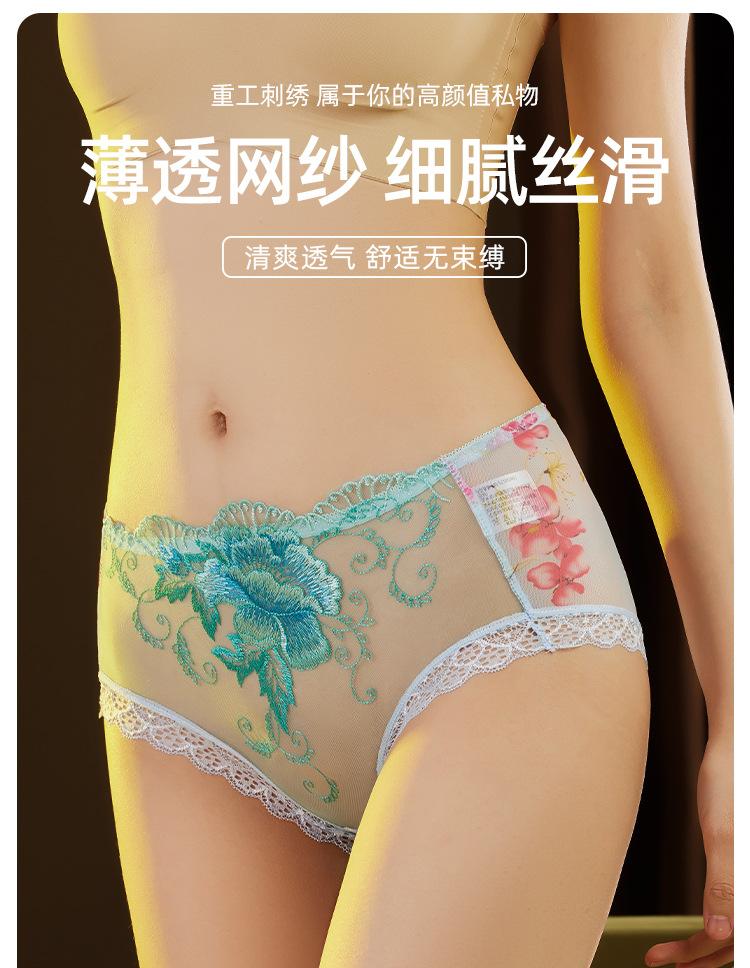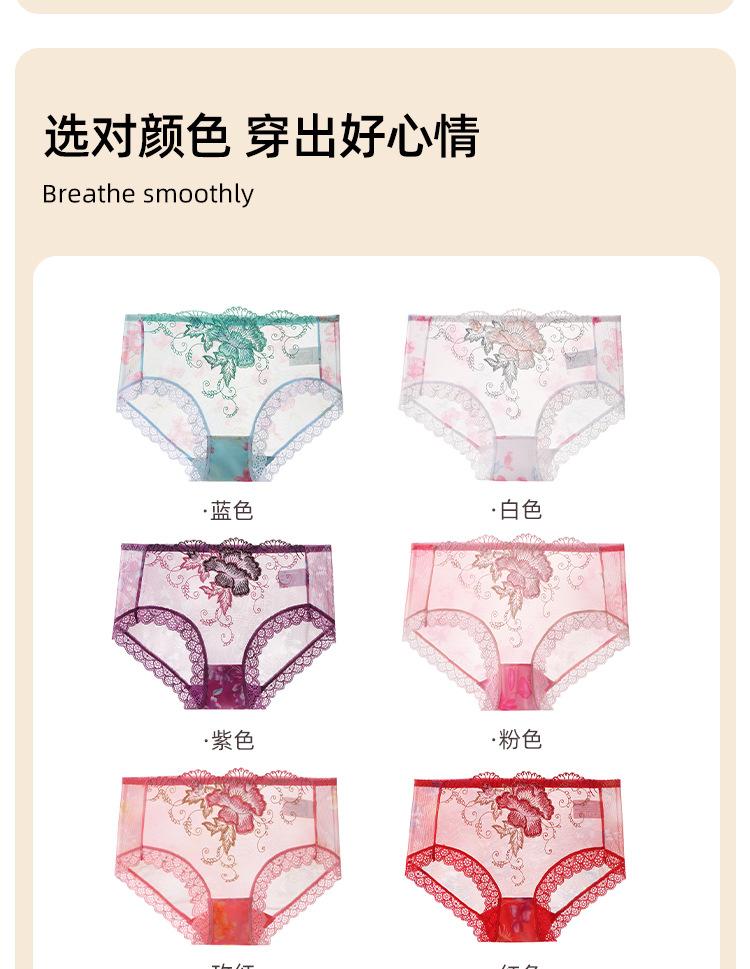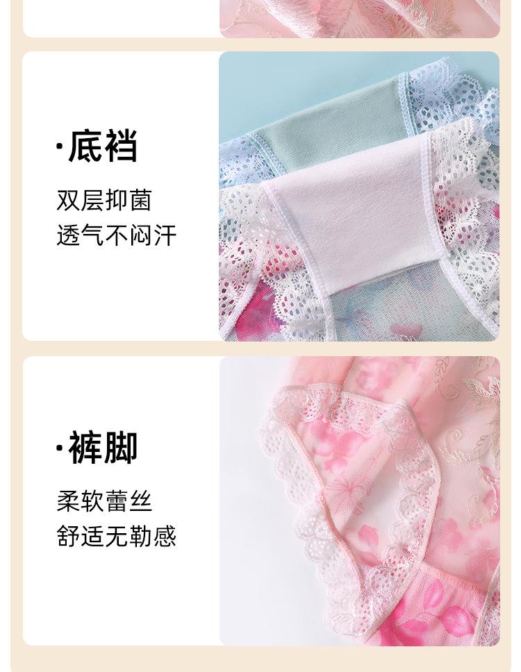 Ropa Interior para Mujer Encaje Sexy Malla Ligera Deseo Puro Calado Calzones Antibacteriales para Mujer