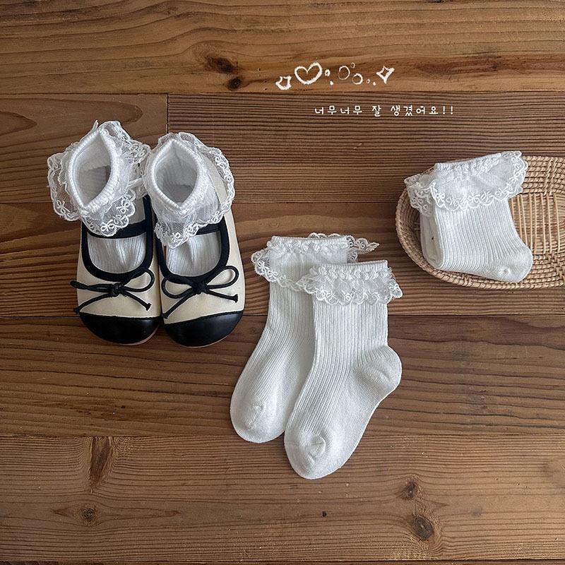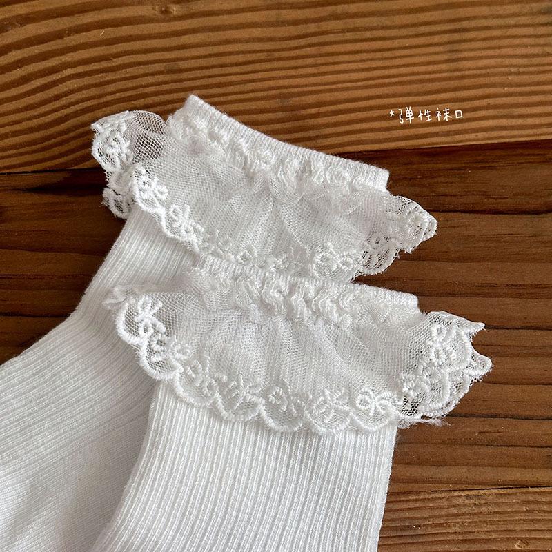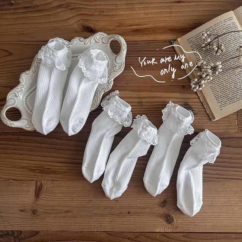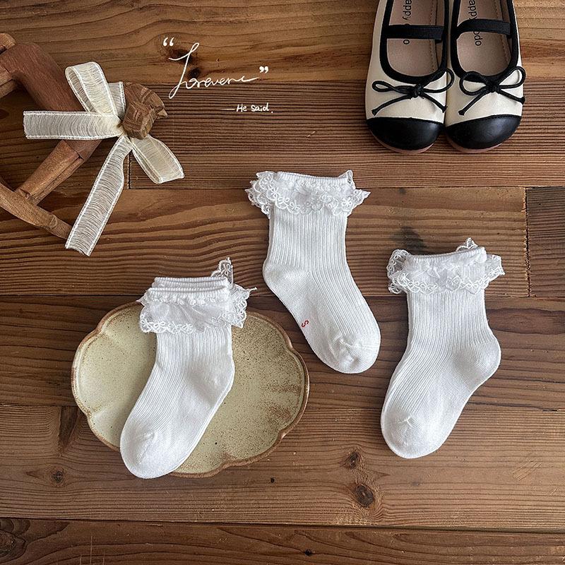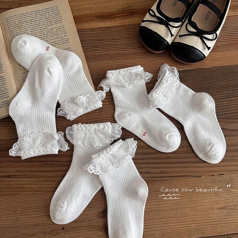 Calcetines de Encaje Blanco para Niñas de Otoño, Dulces Calcetines de Encaje de Princesa, Calcetines Cortos de Algodón para Niños Coreanos, Calcetines para Bebé
