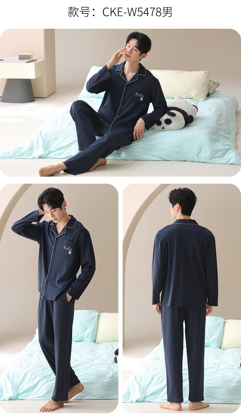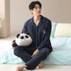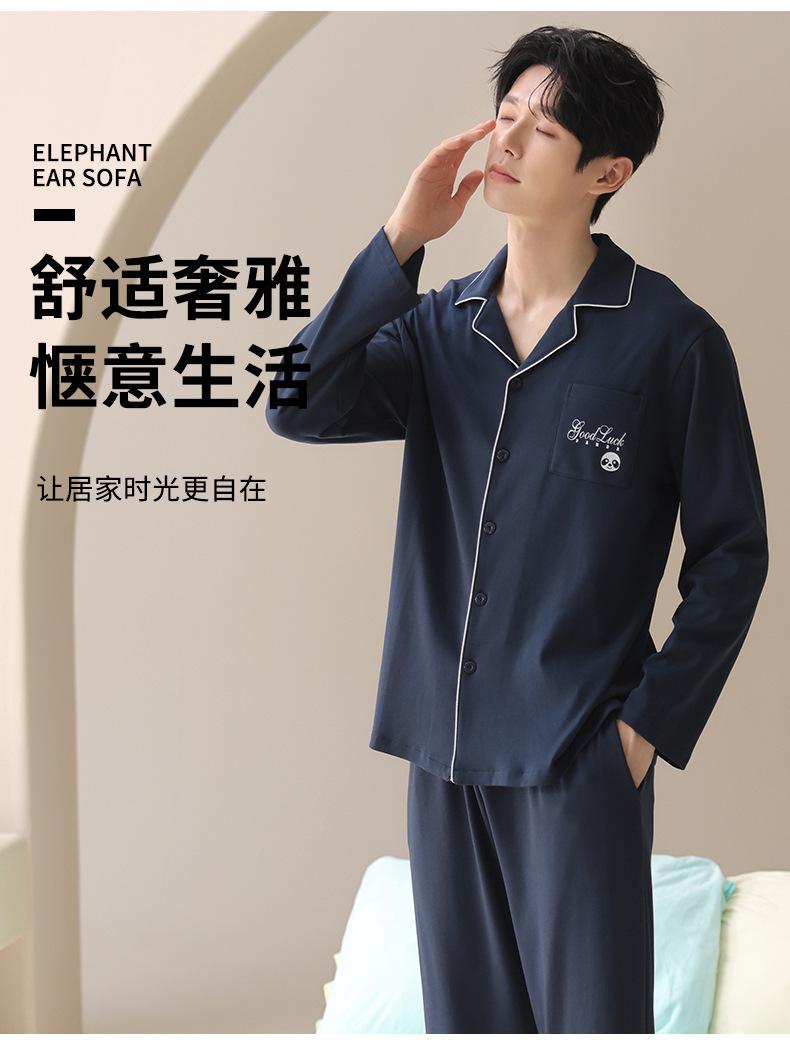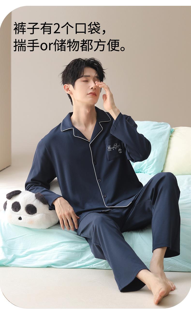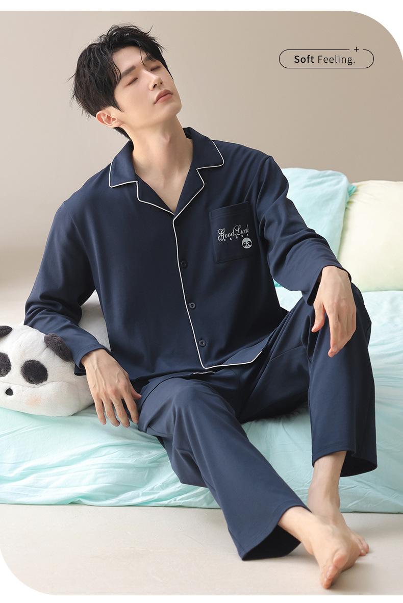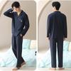 Pijama de Algodón para Hombre de Alta Calidad Otoño Cárdigan de Manga Larga con un Sencillo Conjunto Casual de Algodón para Estar en Casa para Primavera y Otoño con Pantalones Largos