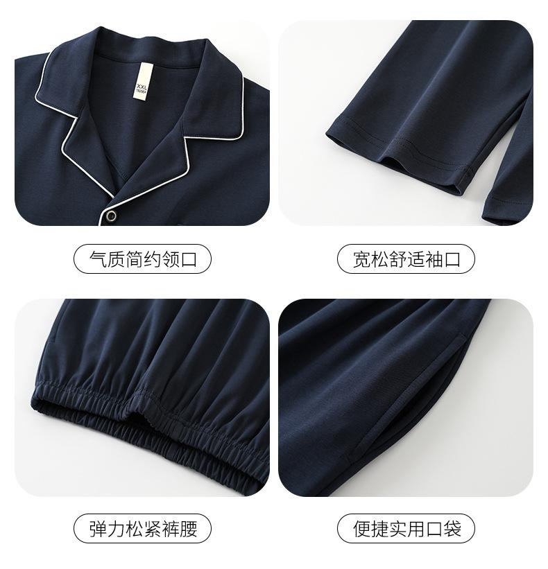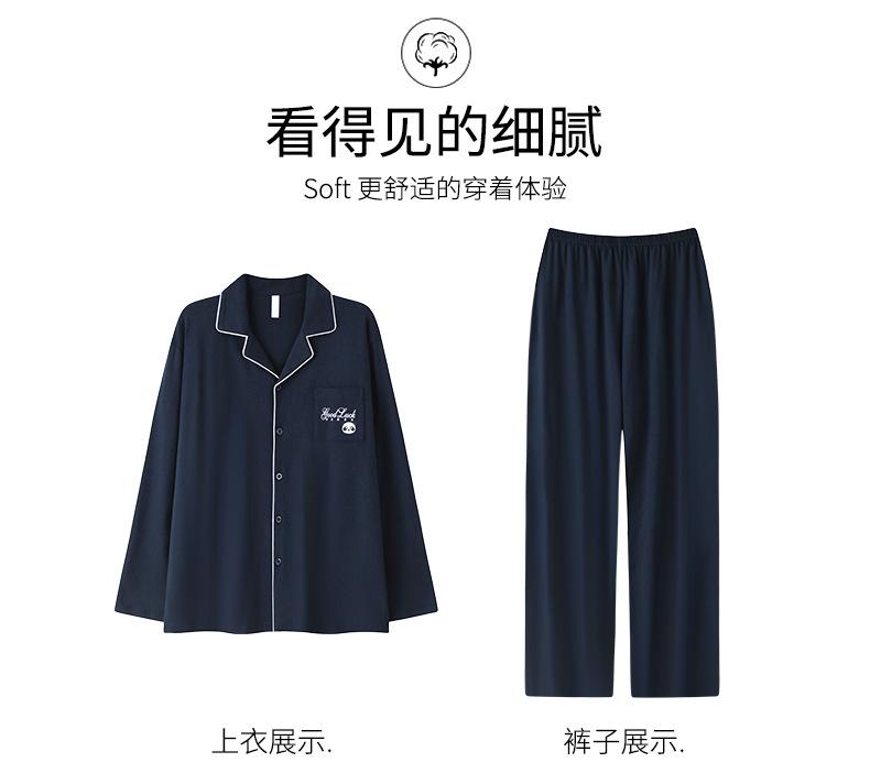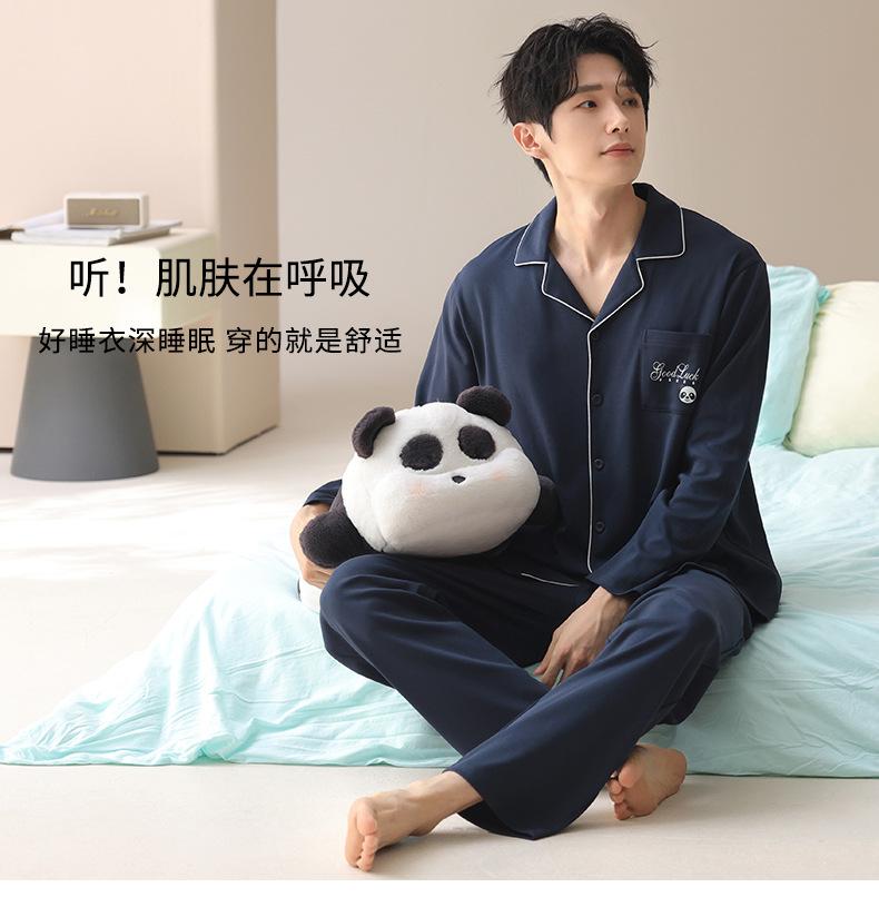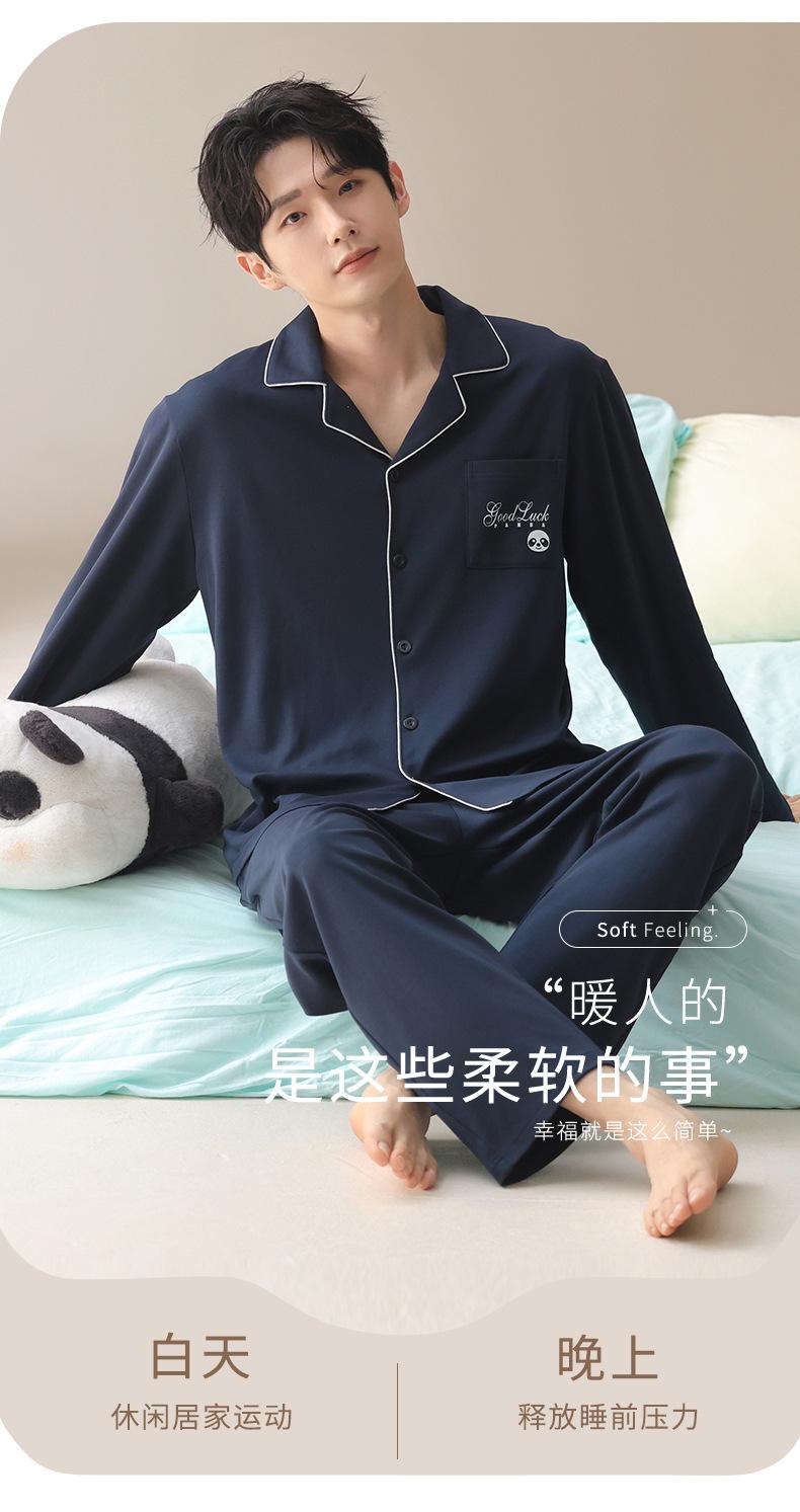 Pijama de Algodón para Hombre de Alta Calidad Otoño Cárdigan de Manga Larga con un Sencillo Conjunto Casual de Algodón para Estar en Casa para Primavera y Otoño con Pantalones Largos
