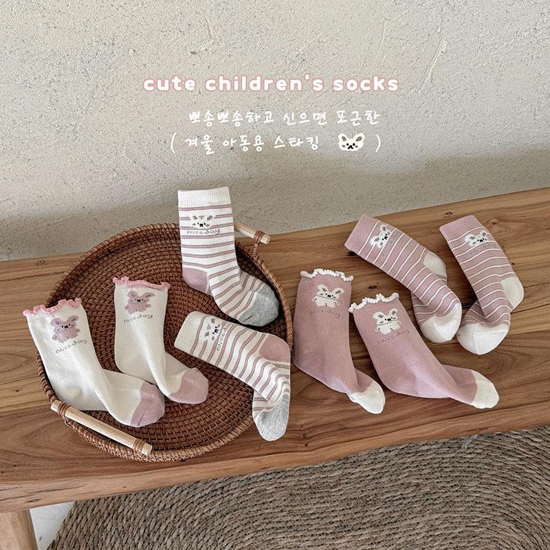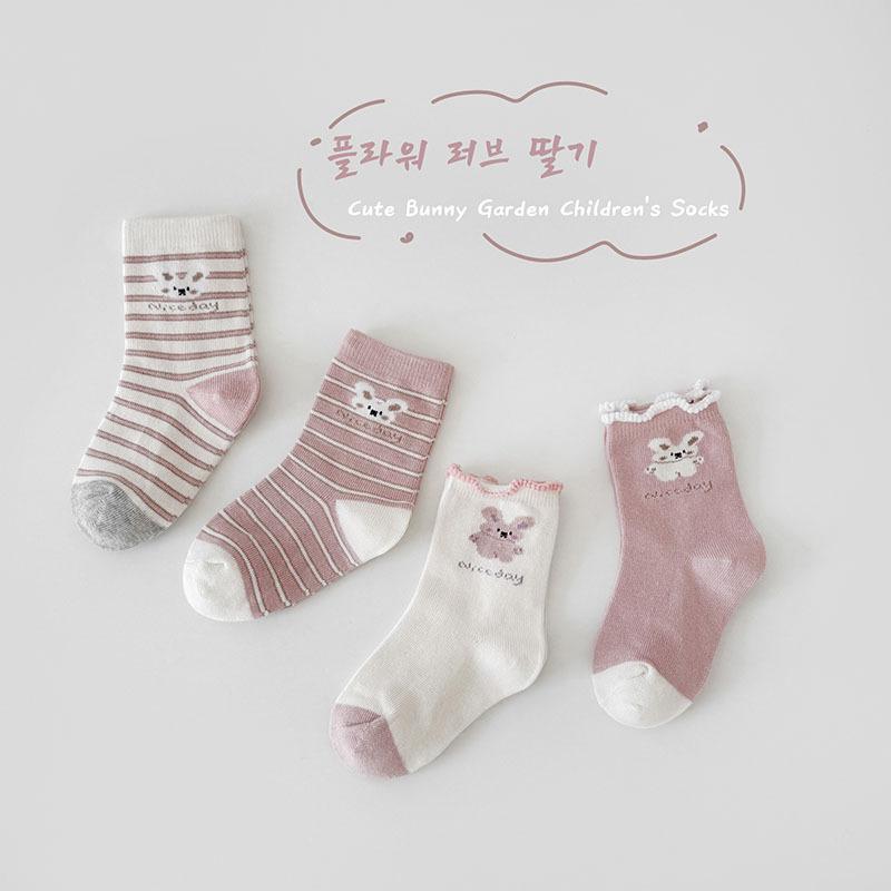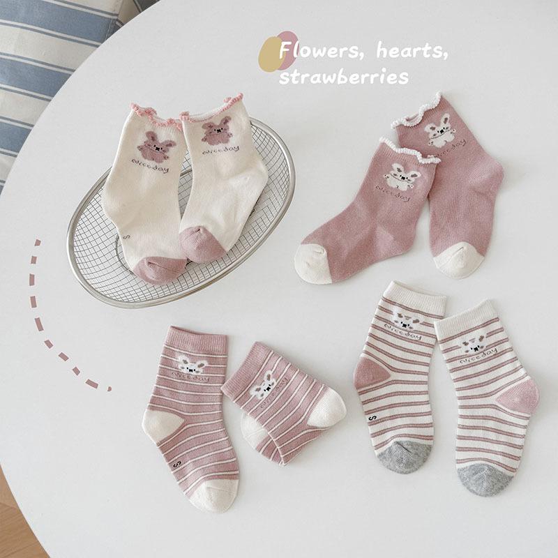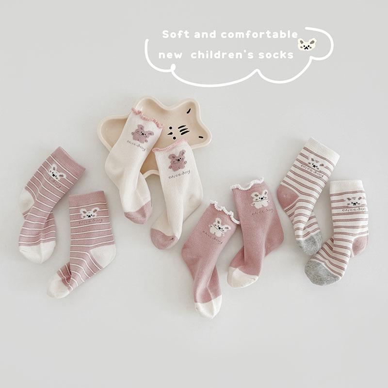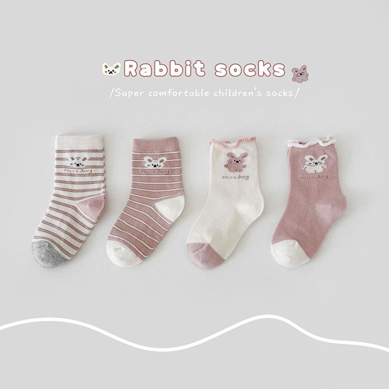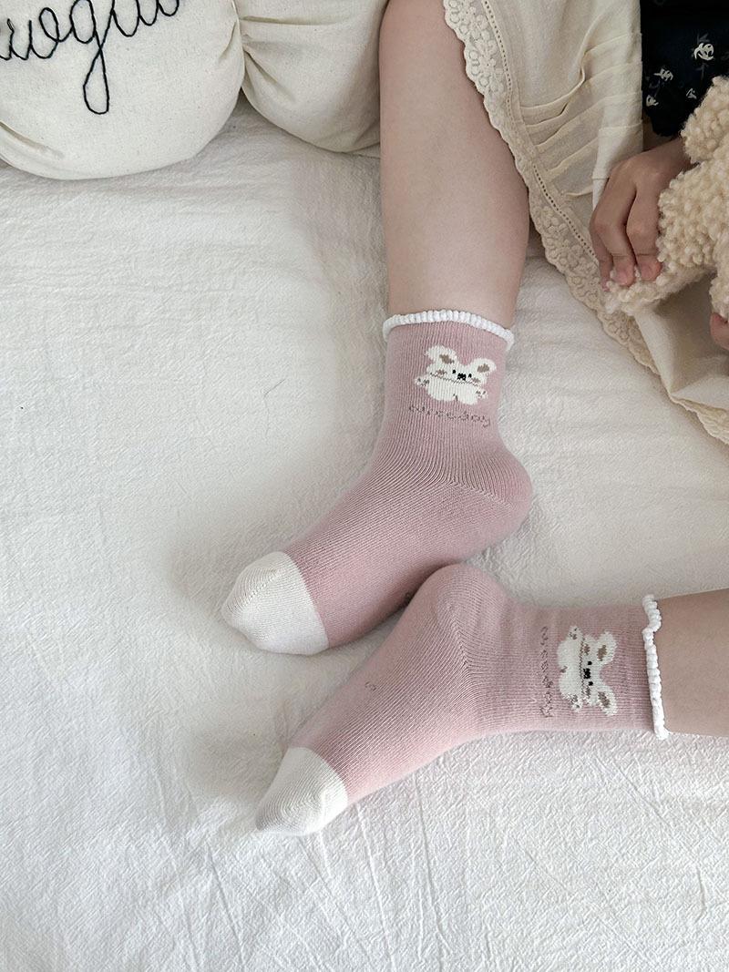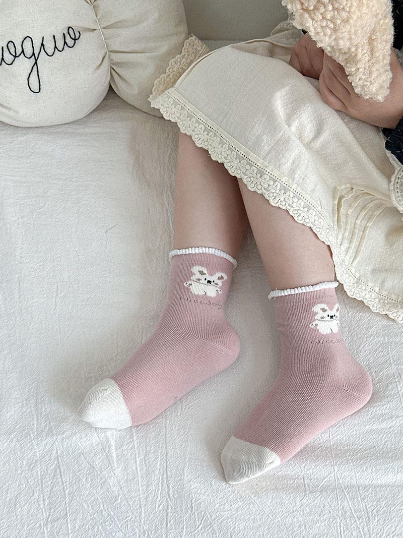 Calcetines de Algodón para Niñas 2025 Otoño e Invierno Calcetines para Niños Rosados Calcetines Deportivos Casuales para Niñitas Lindos Calcetines de Conejito