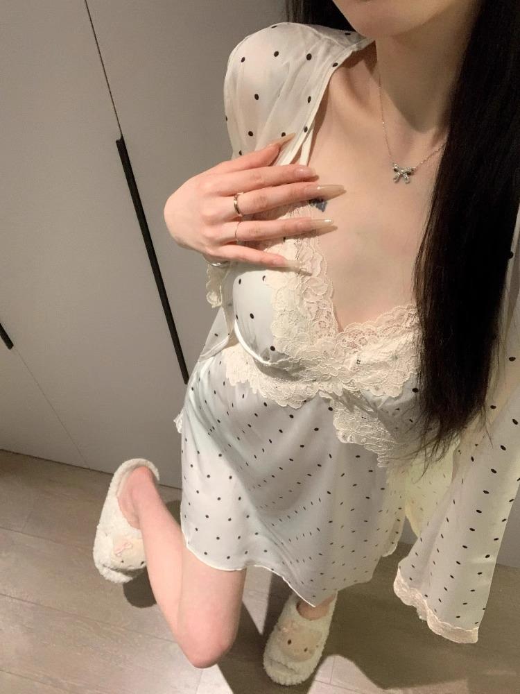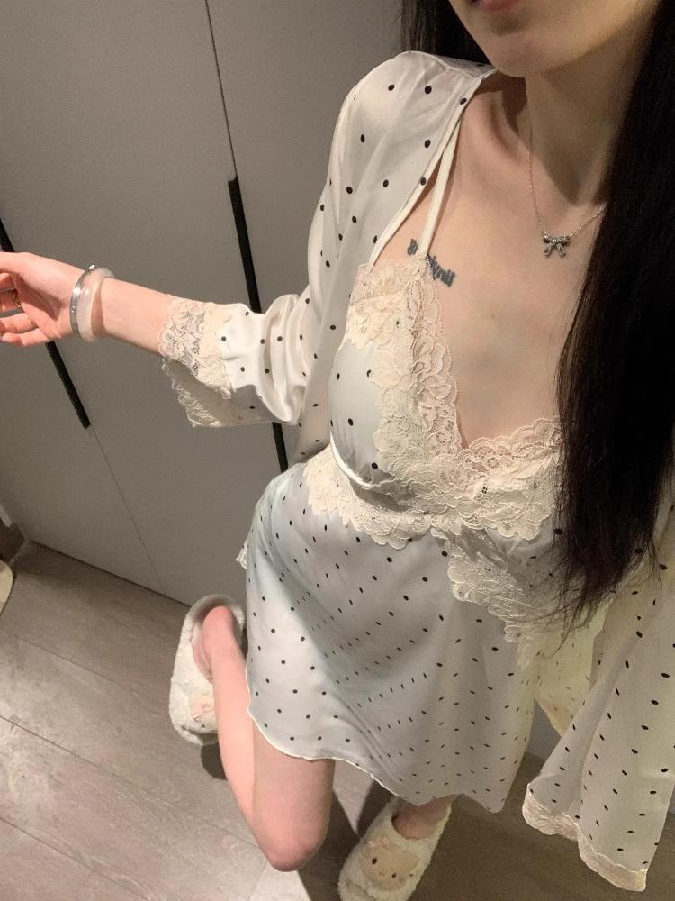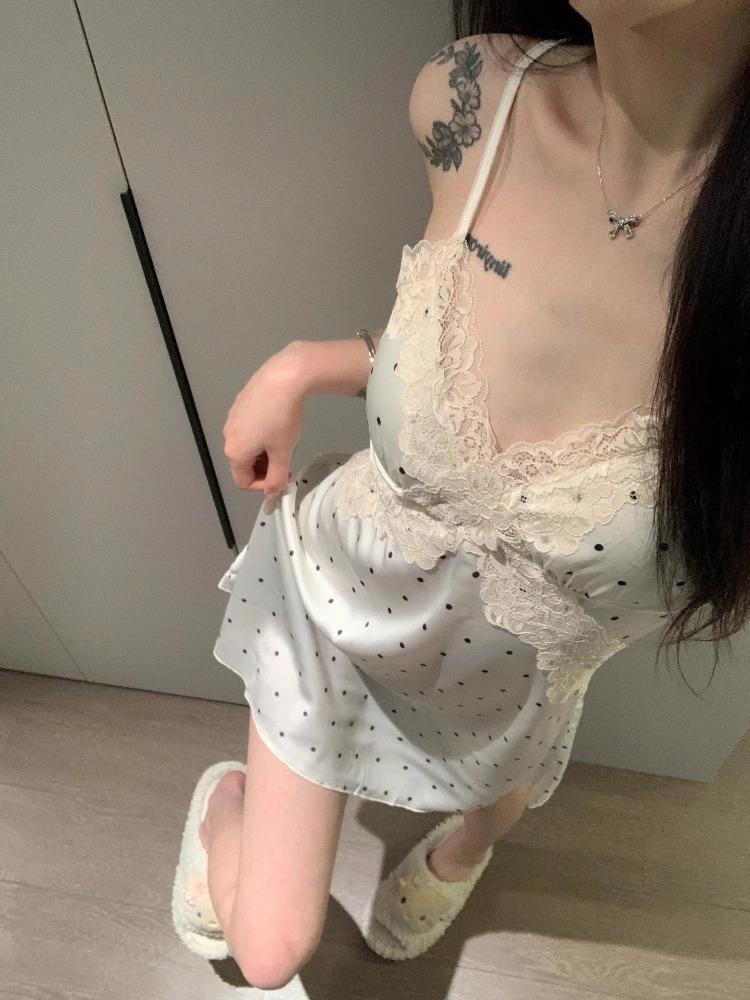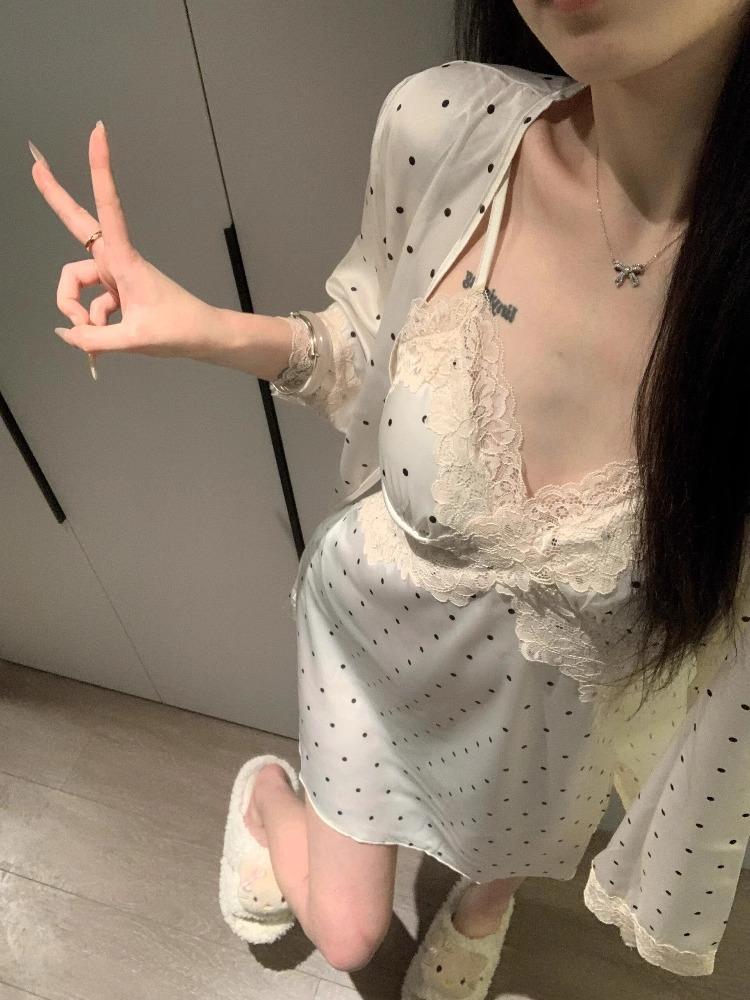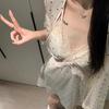 Camisón con Tirantes Sexy Francés de Puro Deseo para Mujer Verano Nuevo Encaje Pijama Seda de Hielo Talla Grande Conjunto Ropa de Casa