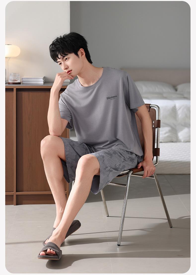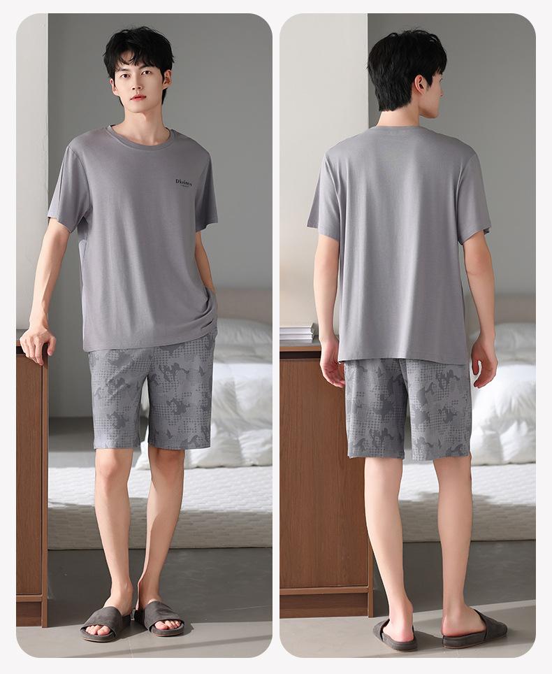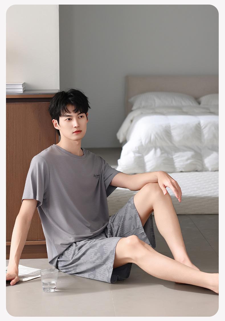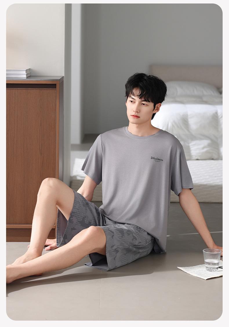 Pijama de Verano para Hombre de Modal de Manga Corta y Pantalón Corto Fino para Verano para Hombre de Seda Helada Talla Grande Se Puede Usar Fuera Conjunto de Ropa para el Hogar
