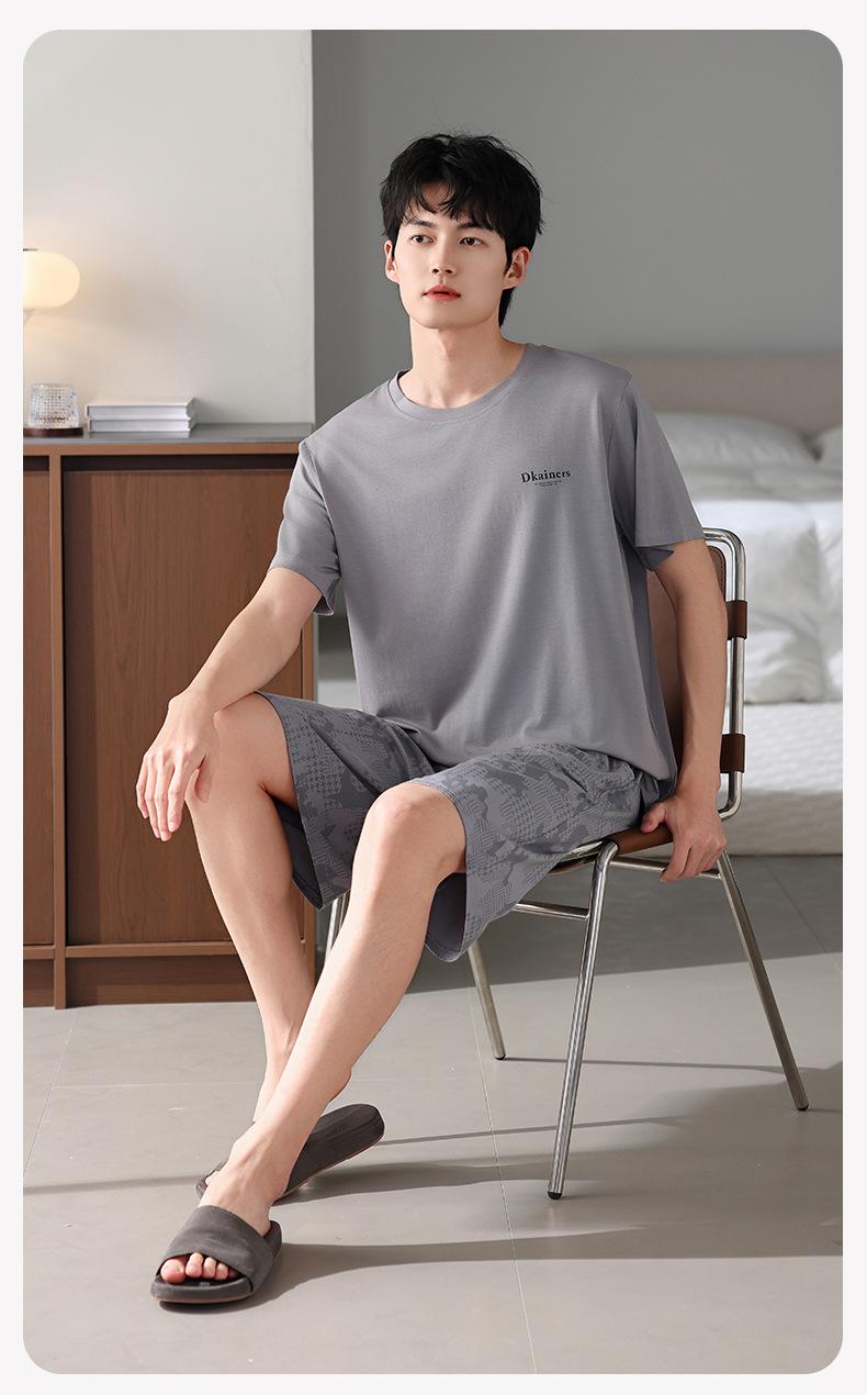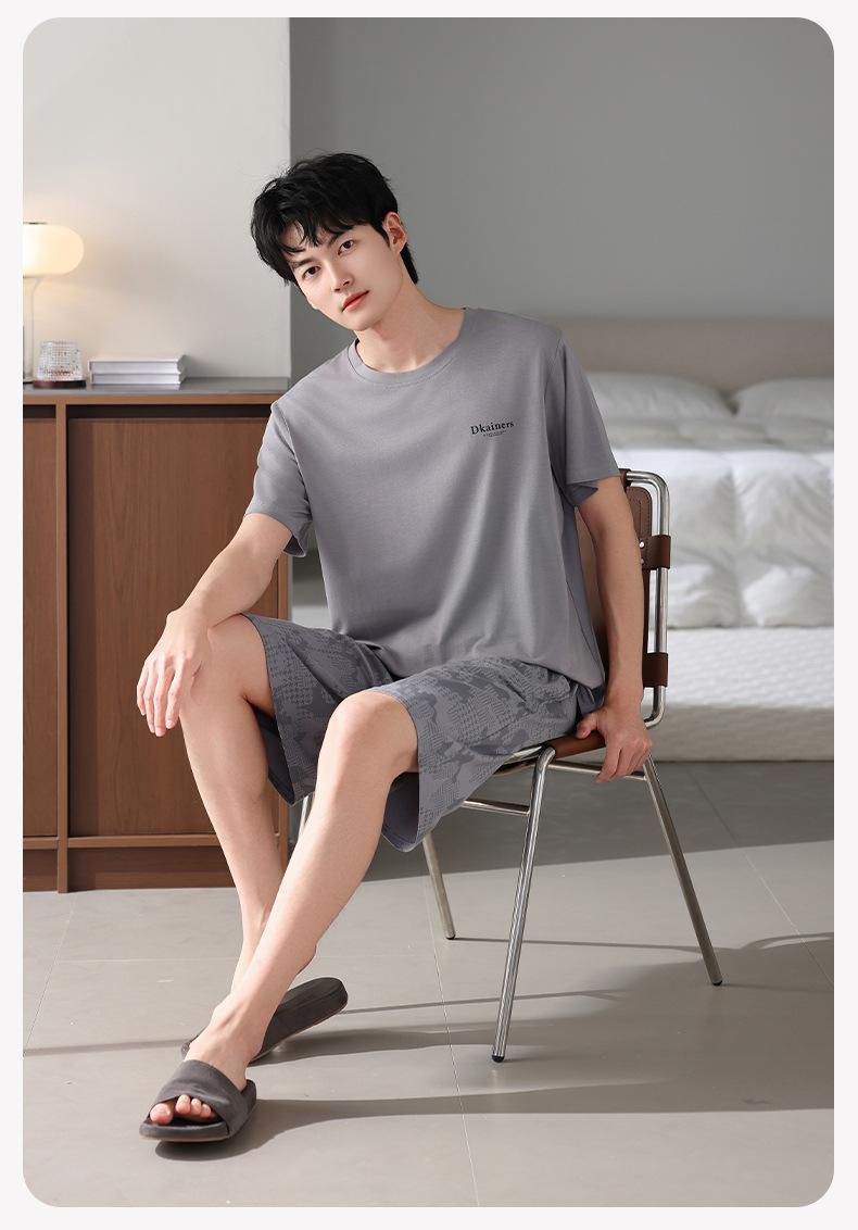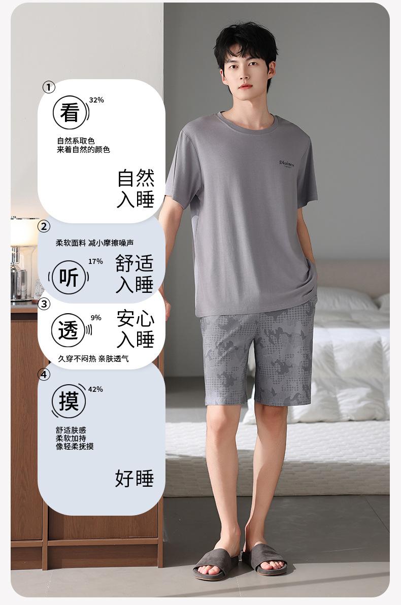 Pijama de Verano para Hombre de Modal de Manga Corta y Pantalón Corto Fino para Verano para Hombre de Seda Helada Talla Grande Se Puede Usar Fuera Conjunto de Ropa para el Hogar