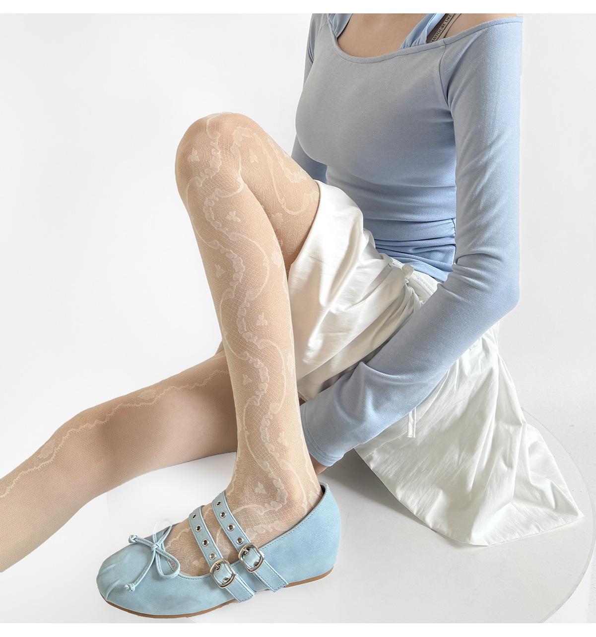 Nicho Delgado Retro Calado Patrón de Vid Negra Medias Sexy Chica Caliente Blanco Lechoso Deseo Puro Adelgazantes Medias Base