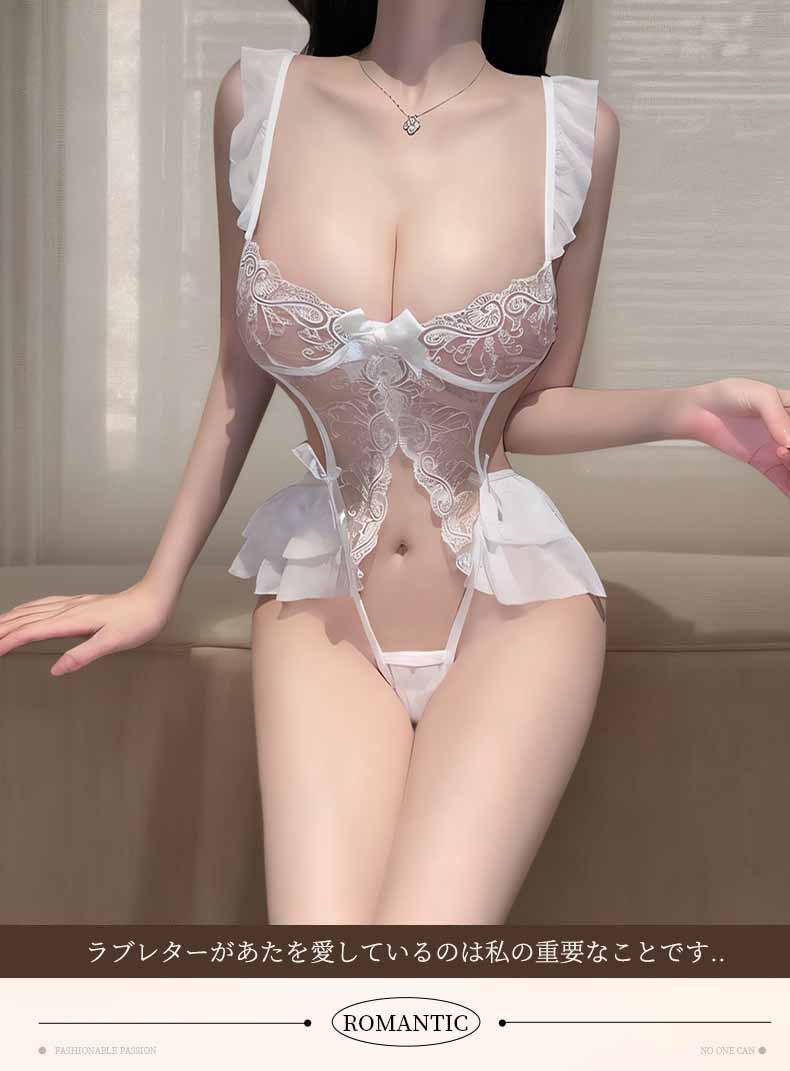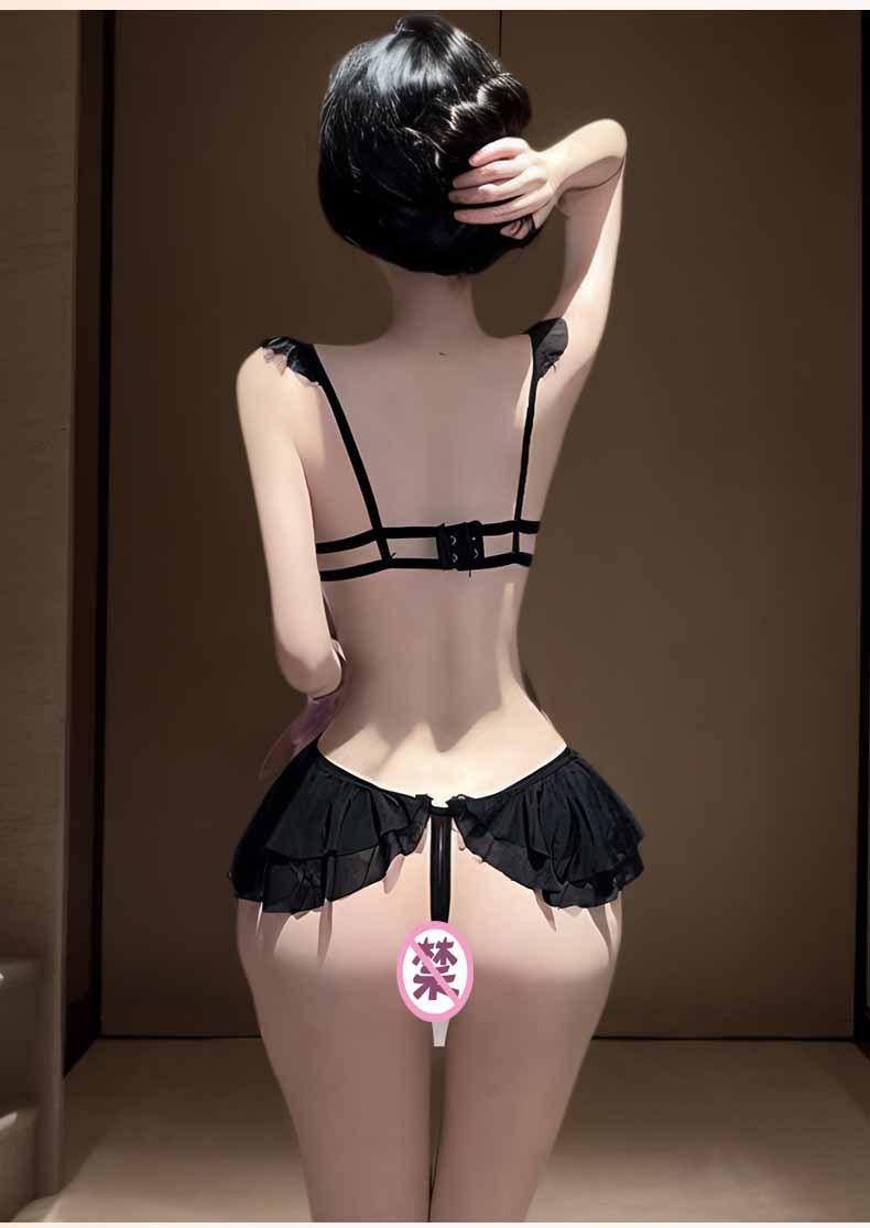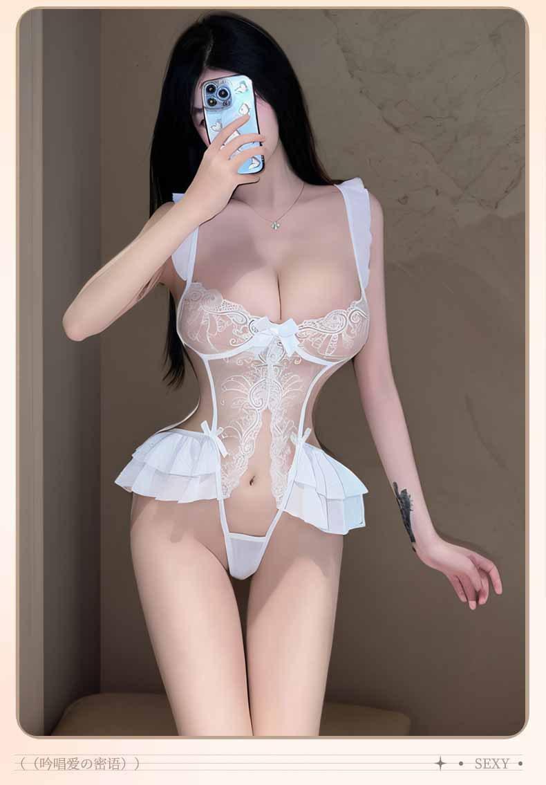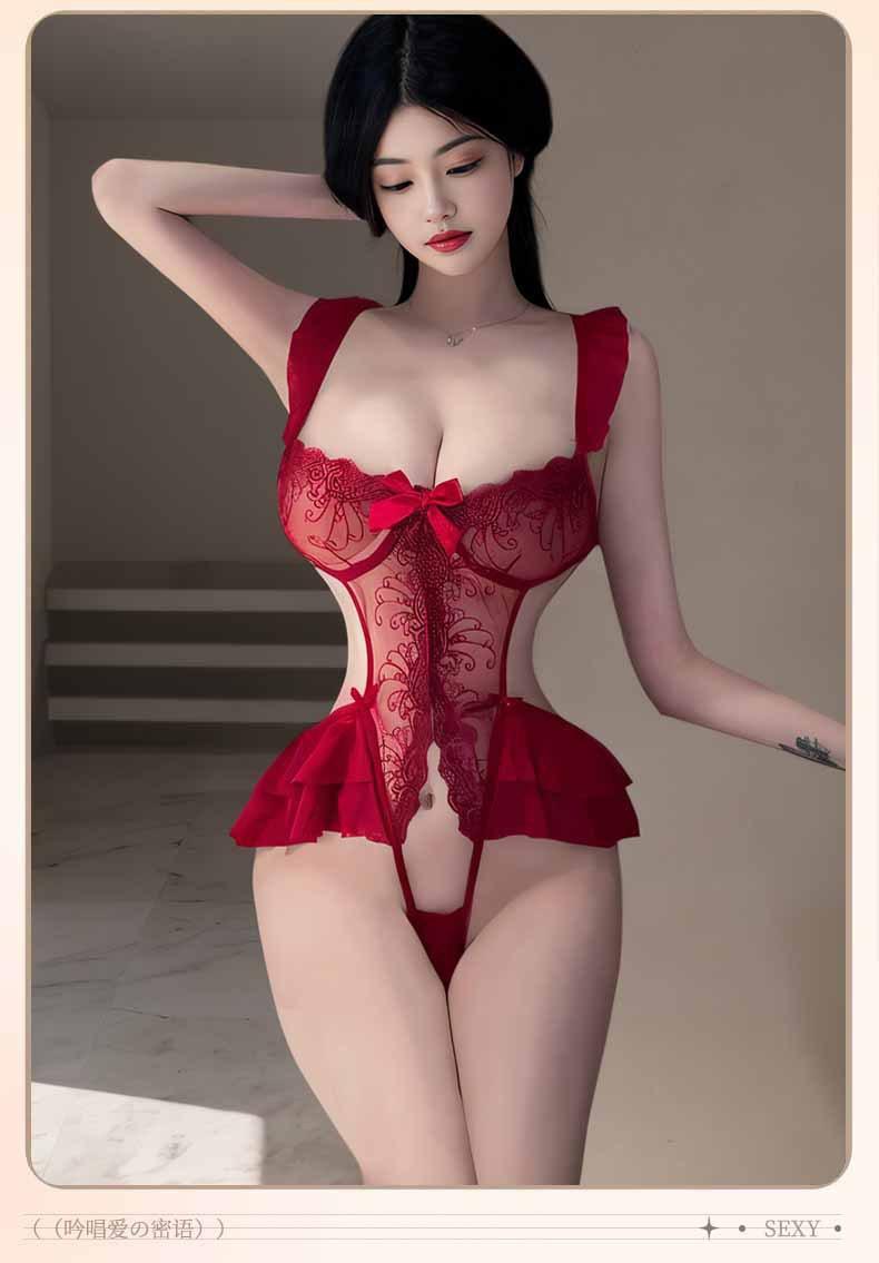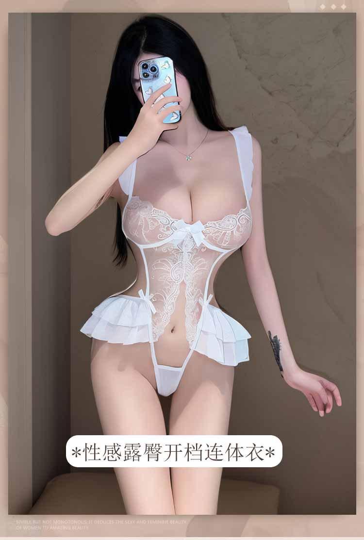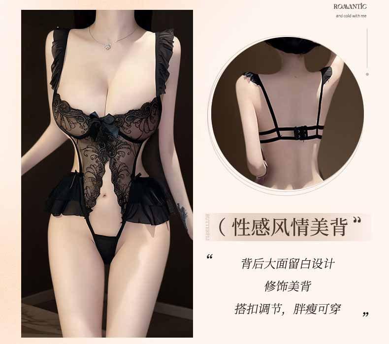 Lencería Sexy, Pijama Sexy de Encaje de Una Pieza, Entrepierna Hueca, Ropa Caliente, Uniforme Tentación Push-Up para Pechos Pequeños