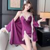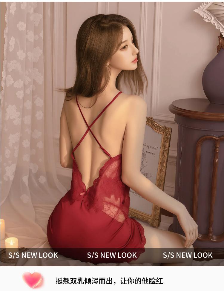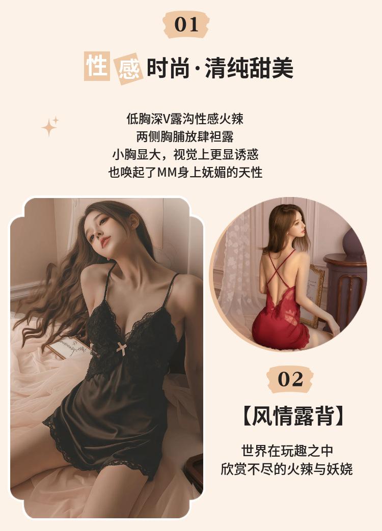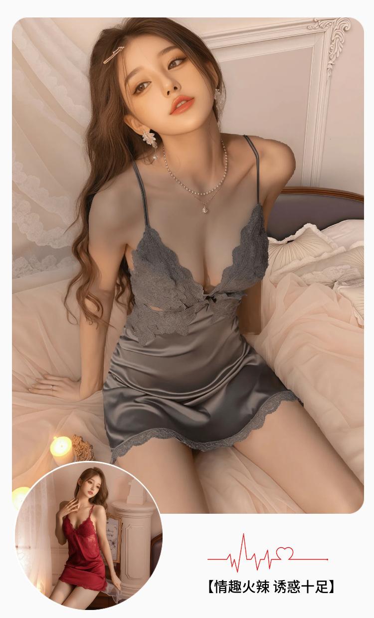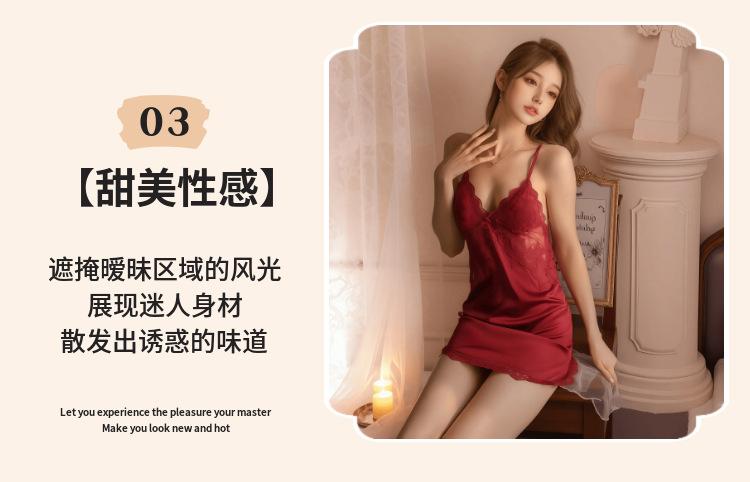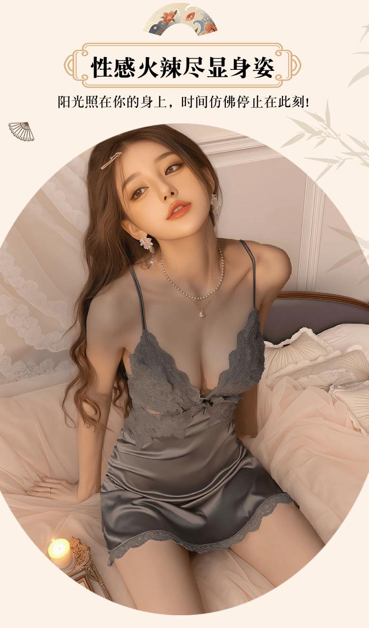 Ropa de Dormir Sexy para Mujer con Seda de Hielo, Almohadilla en el Pecho, Hermoso Encaje en la Espalda, Camisón Floral Soluble en Agua, Ropa de Descanso de Seda Estilo Deseo Puro