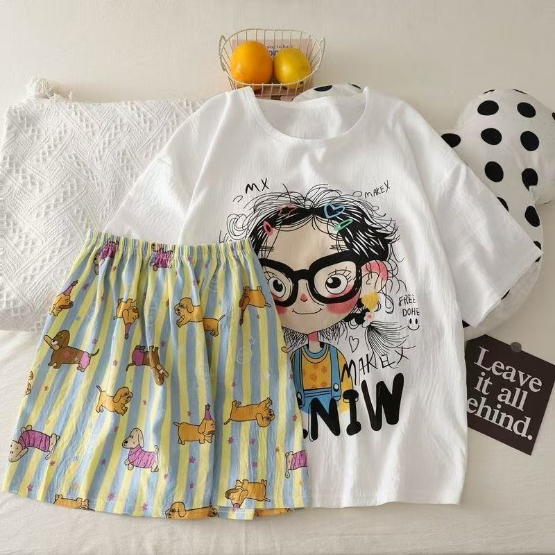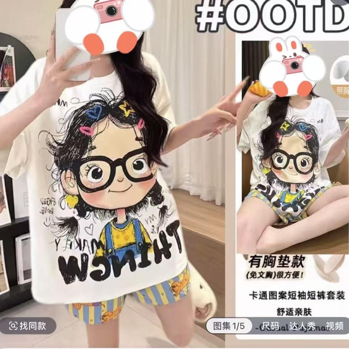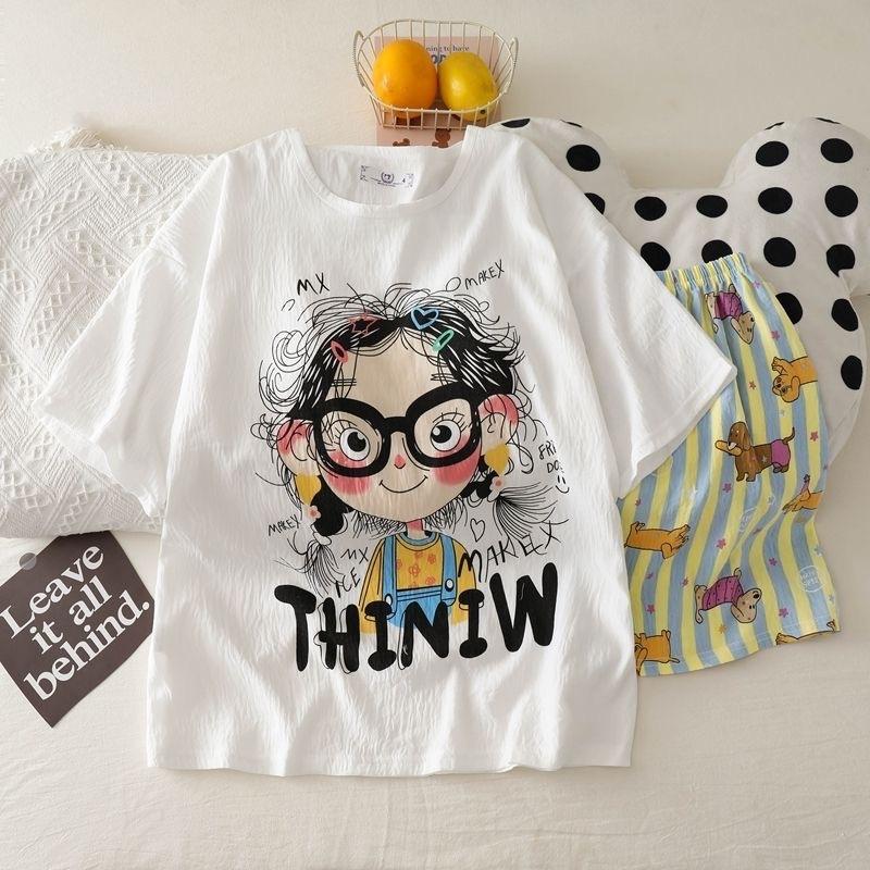 2025 Pijama Casual Nuevo para Mujer Verano Manga Corta Shorts Dulce y Lindo Dibujo Animado Set de Ropa para el Hogar de Mujer