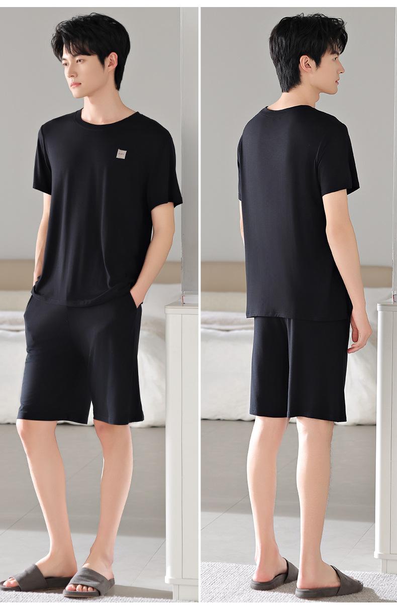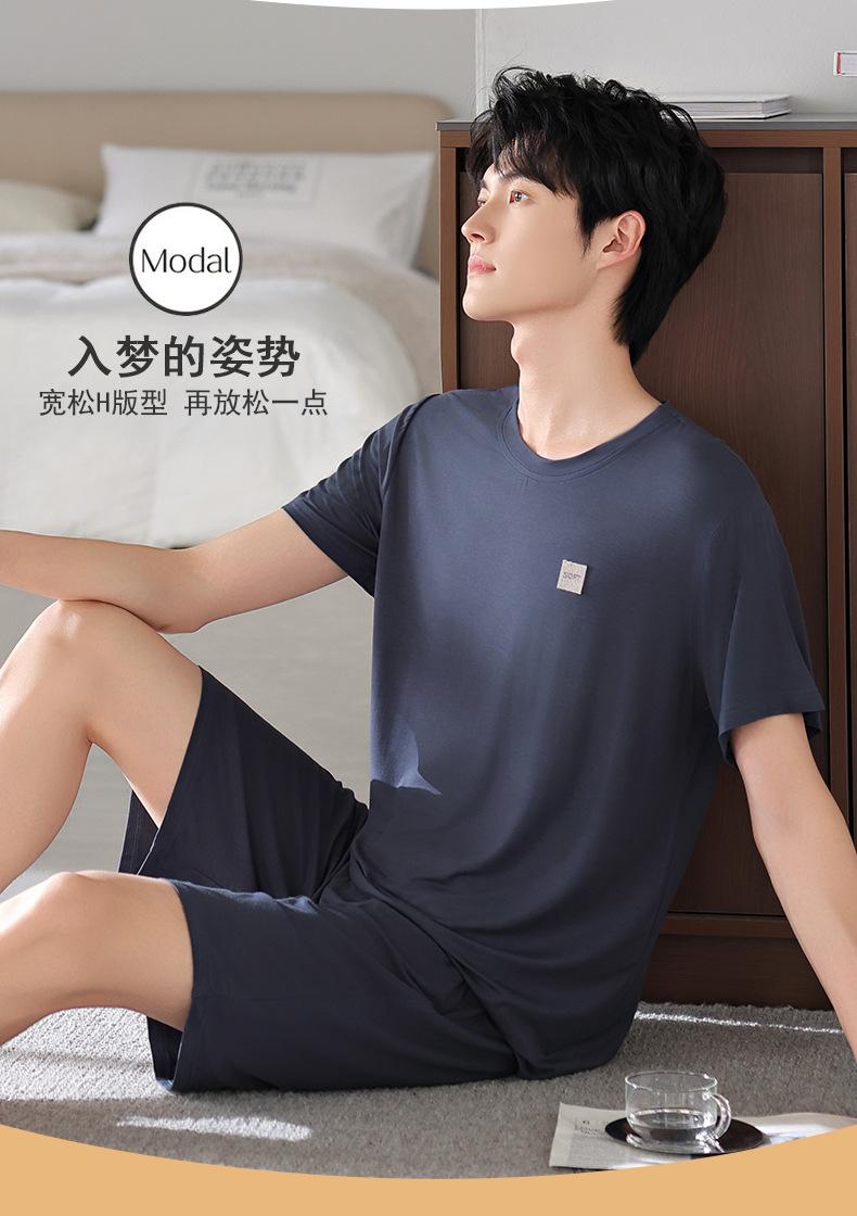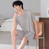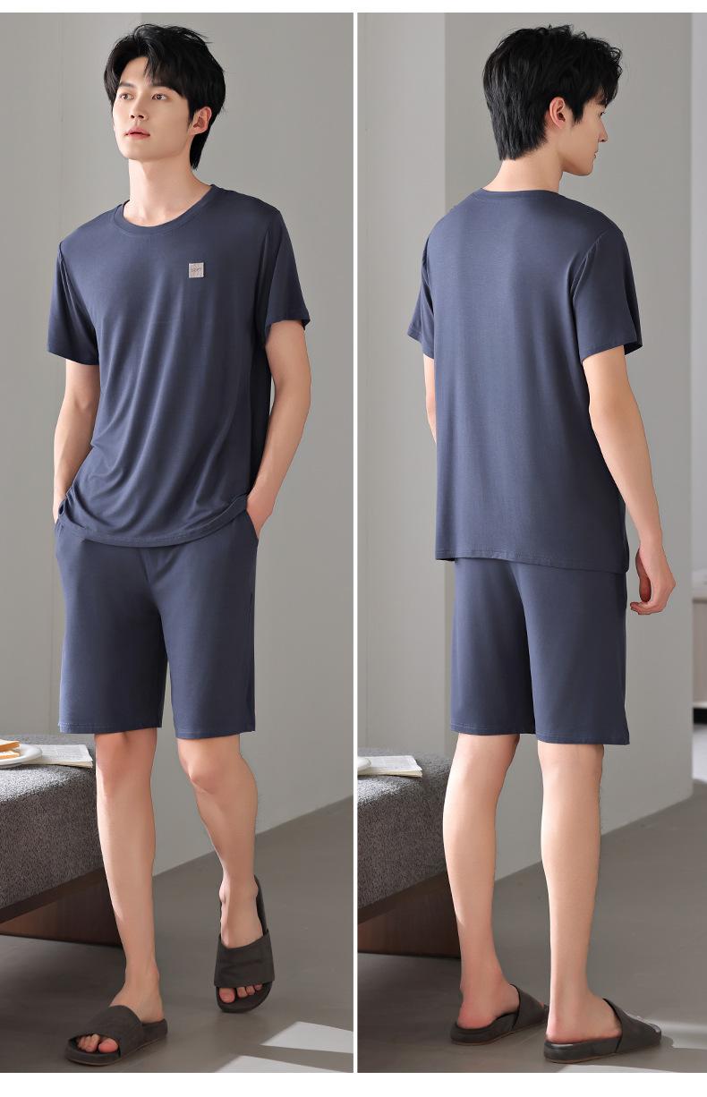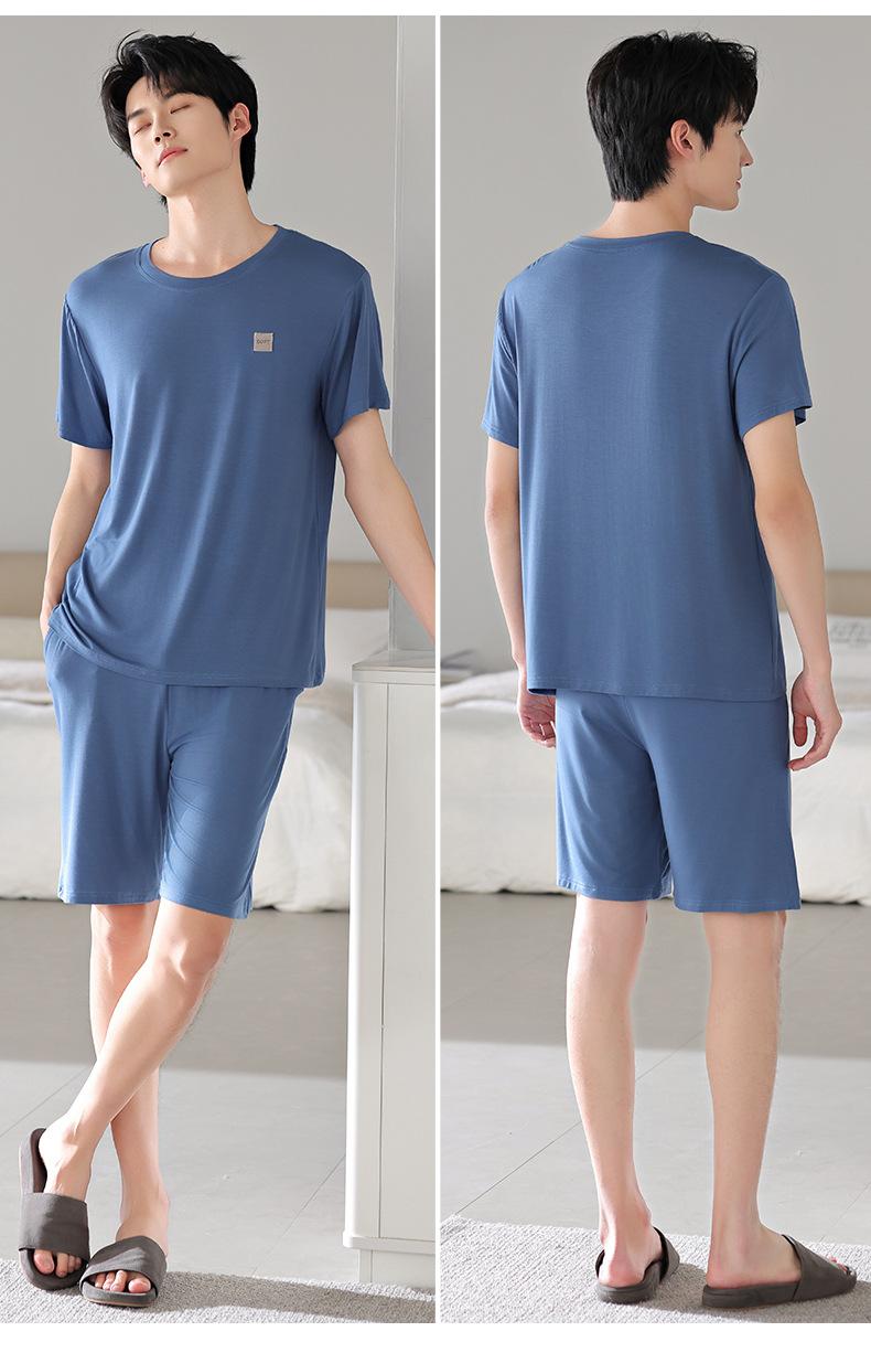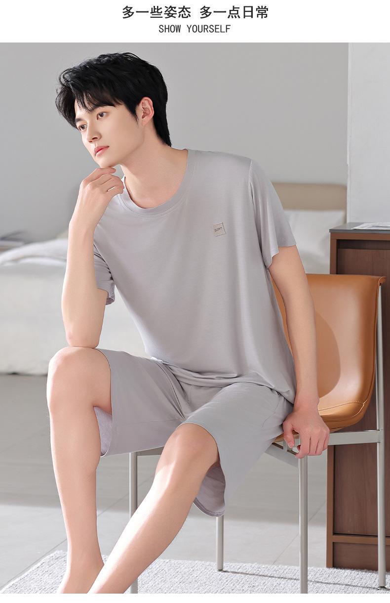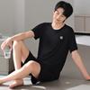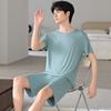 Pijamas de Verano para Hombre Nuevo Manga Corta Shorts Algodón Modal Fresco Delgado Moda Traje Simple Ropa de Casa para Hombre