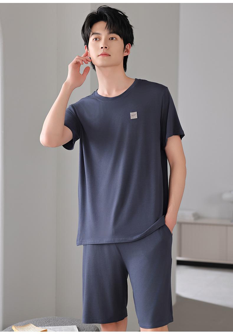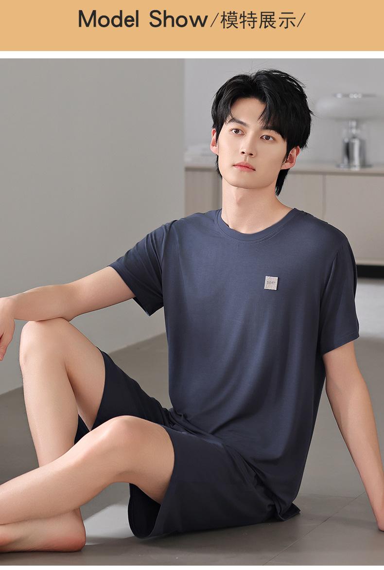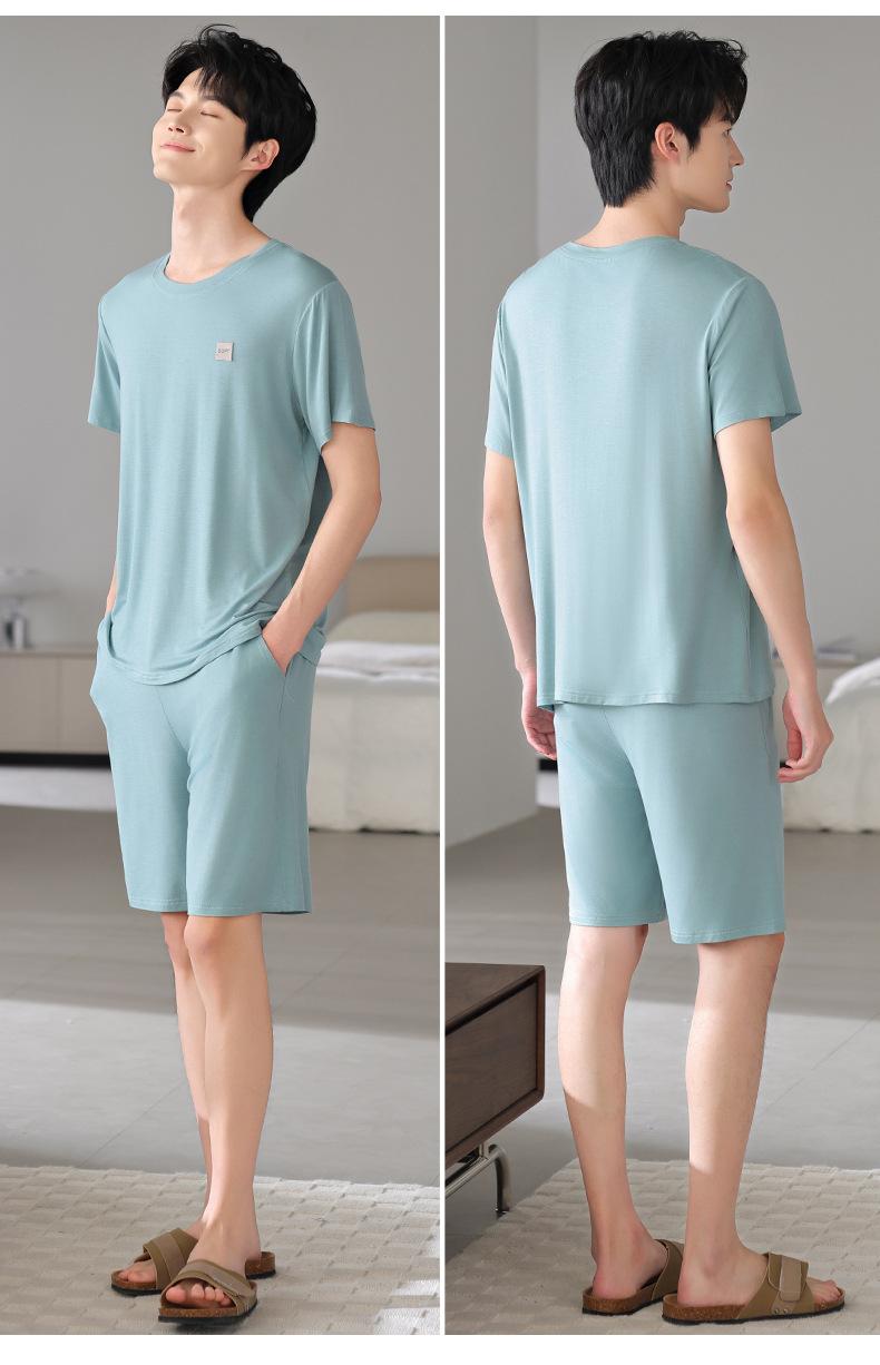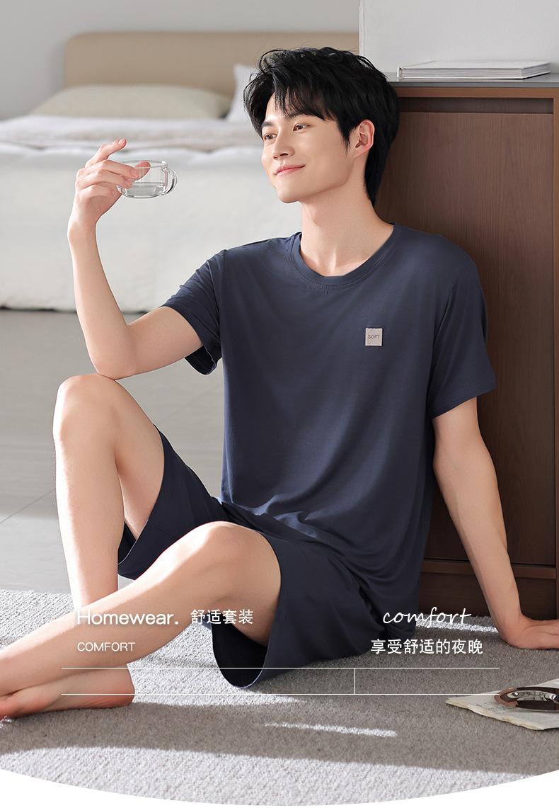 Pijamas de Verano para Hombre Nuevo Manga Corta Shorts Algodón Modal Fresco Delgado Moda Traje Simple Ropa de Casa para Hombre