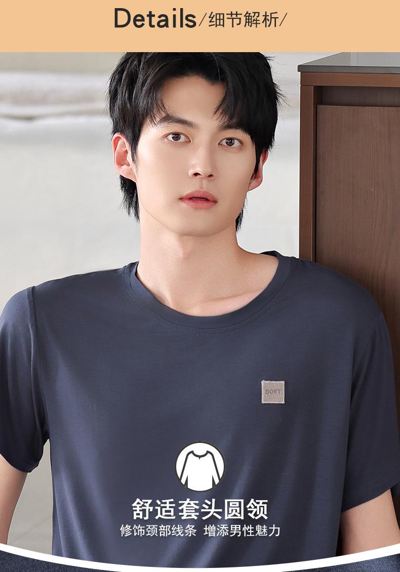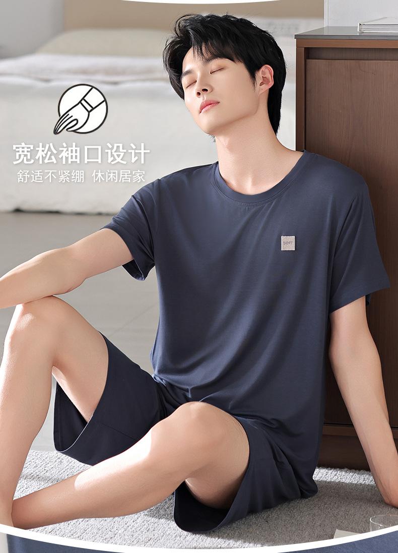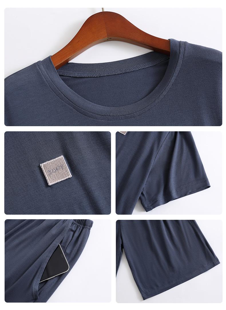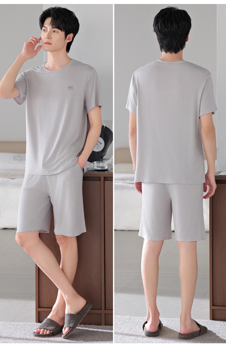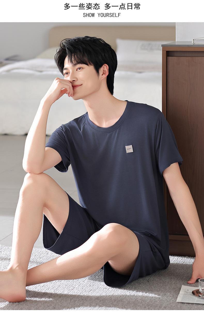 Pijamas de Verano para Hombre Nuevo Manga Corta Shorts Algodón Modal Fresco Delgado Moda Traje Simple Ropa de Casa para Hombre