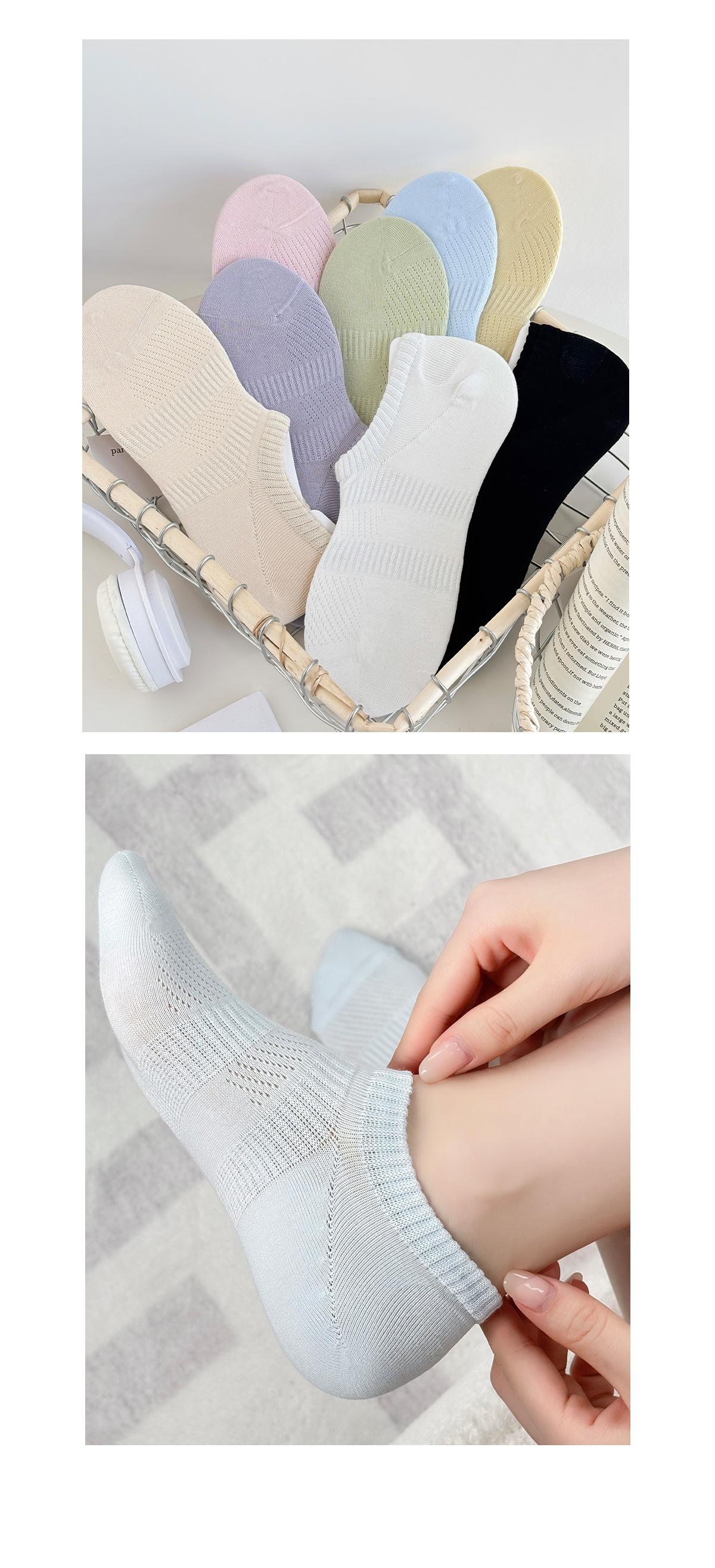 Calcetines invisibles de algodón puro para mujer, finos de verano, estilo japonés, antideslizantes, de malla transpirable, color sólido, versátiles, calcetines cortos invisibles para verano