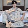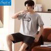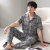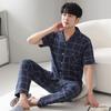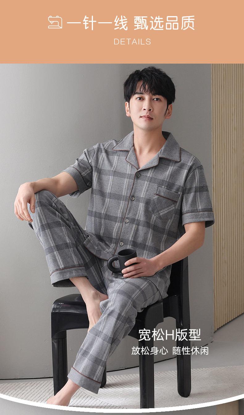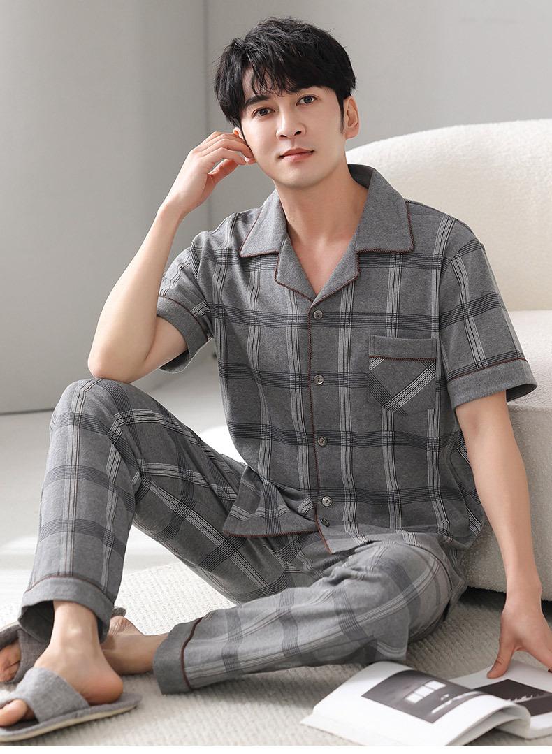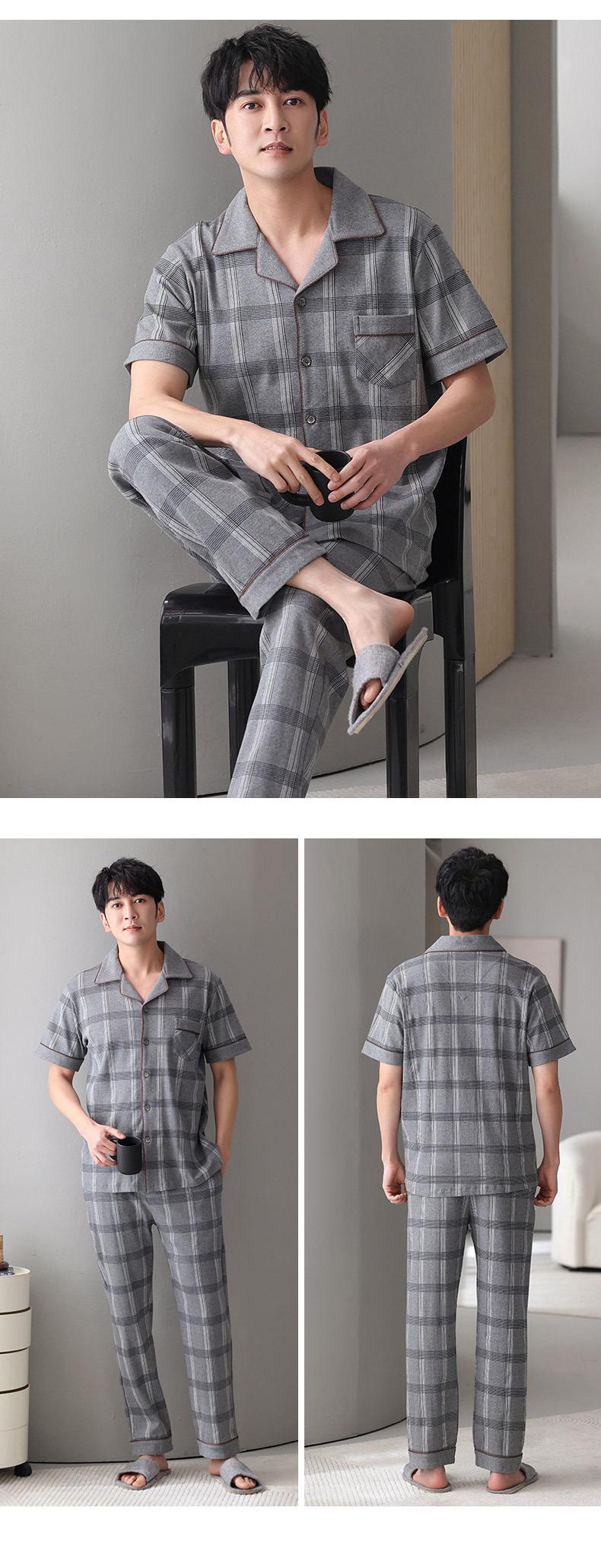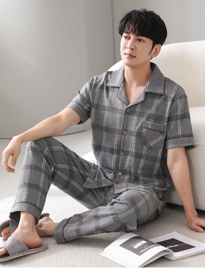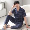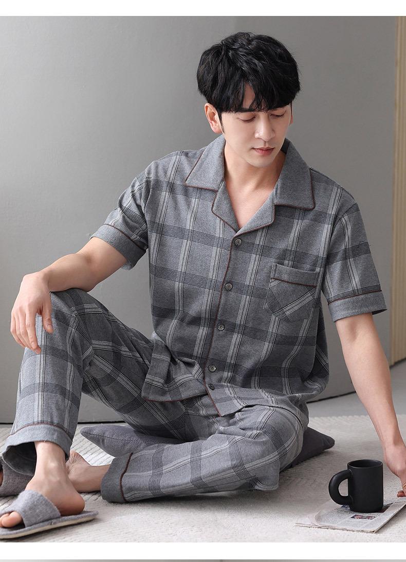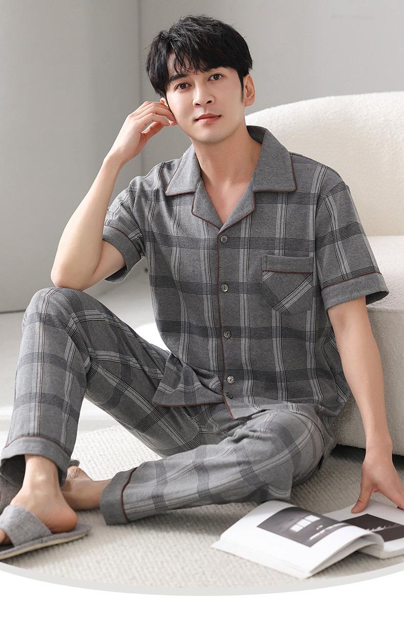 Pijama para Hombre Verano Algodón Puro Manga Corta Pantalón Verano Algodón Delgado Talla Grande Cómodo Se Puede Usar Afuera Conjunto de Ropa para el Hogar