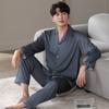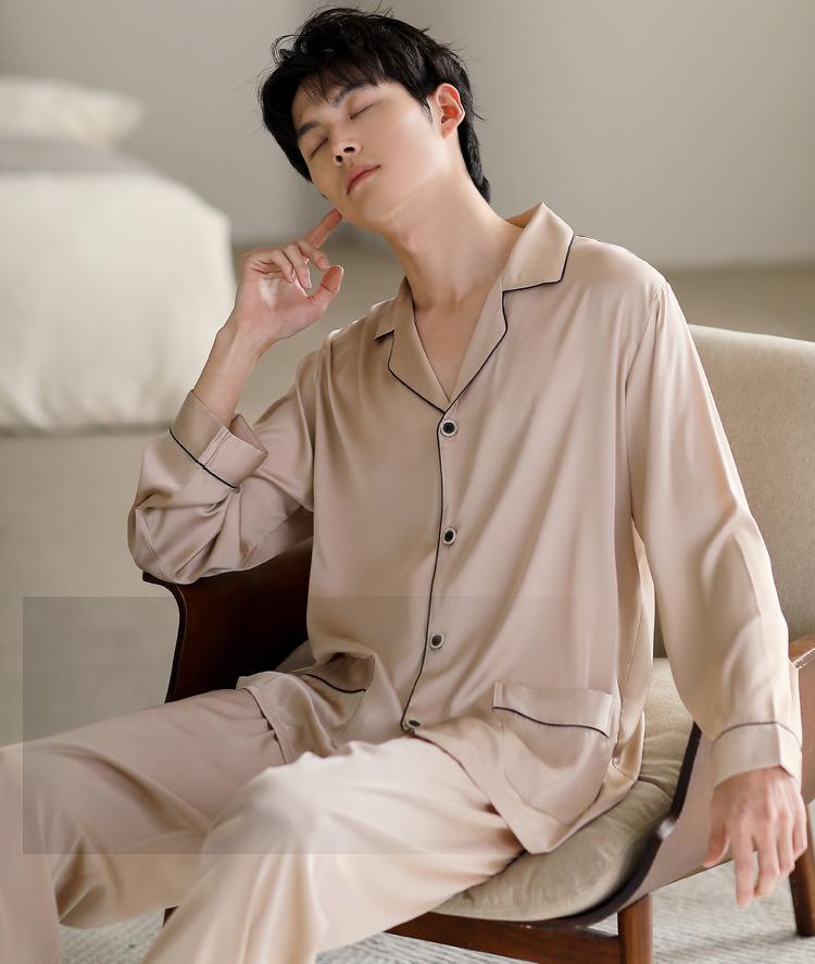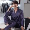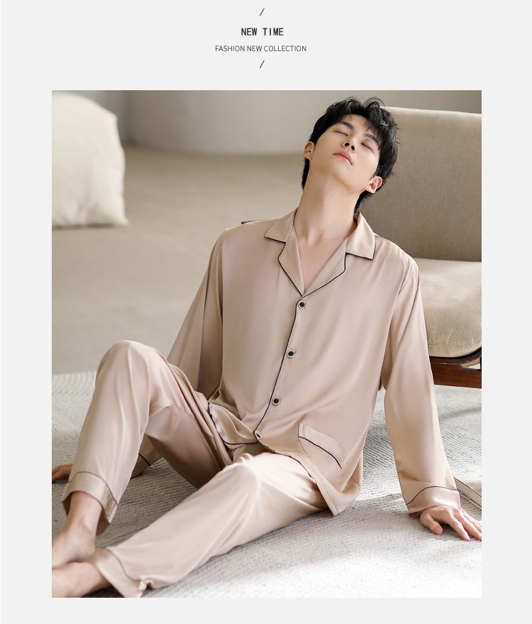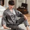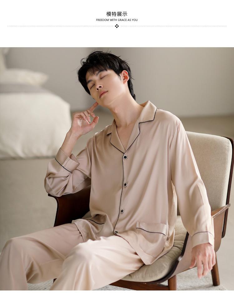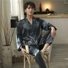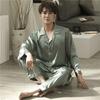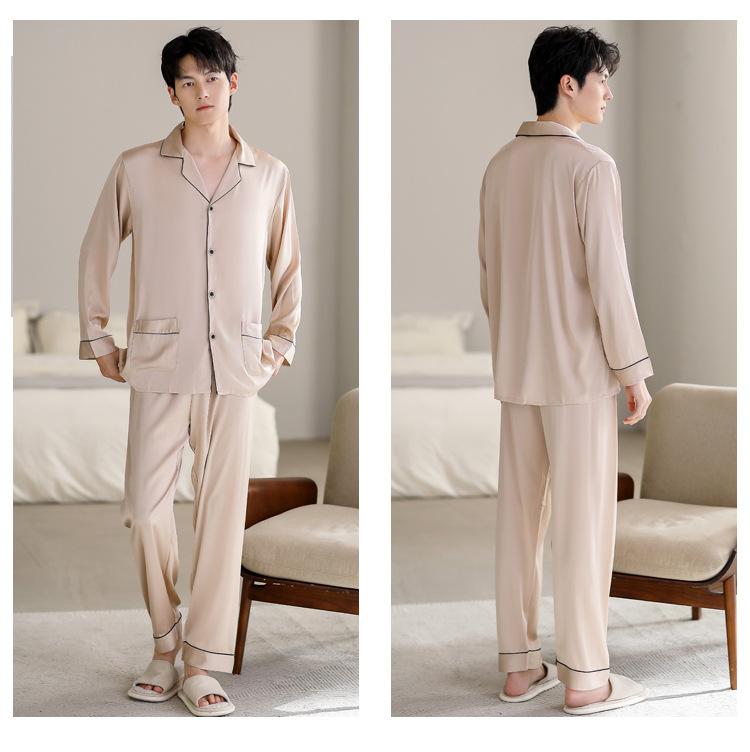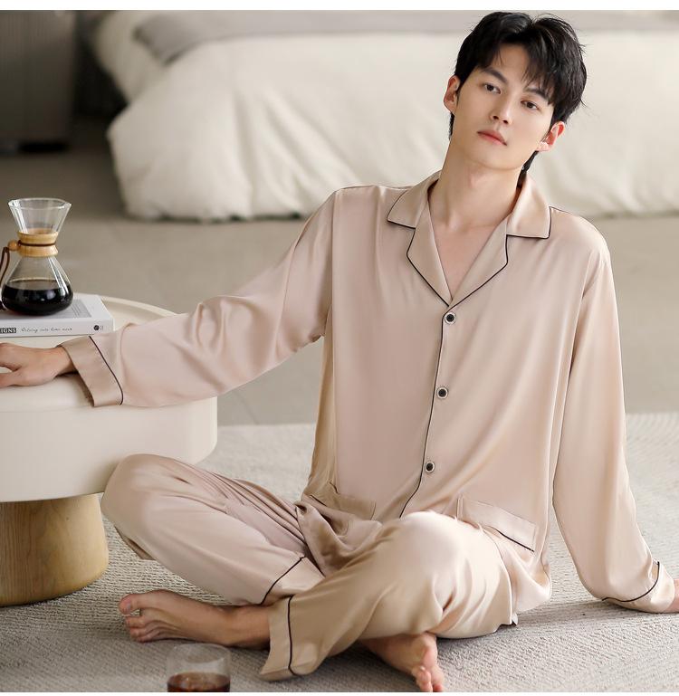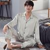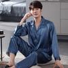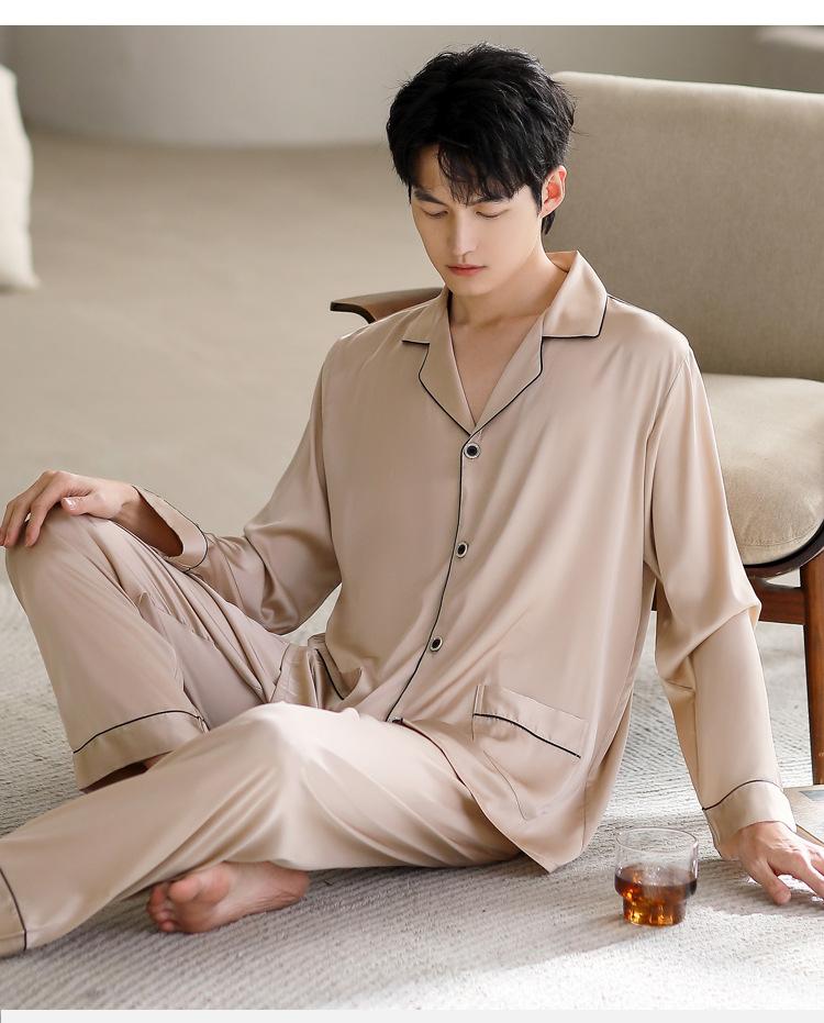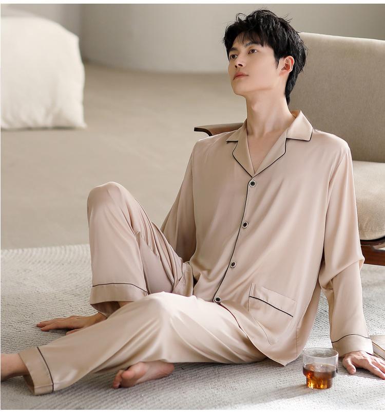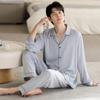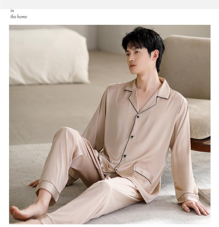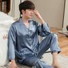 Pijama para Hombre Primavera y Otoño Seda de Hielo Manga Larga Ropa para el Hogar Traje de Alta Gama de Simulación de Seda Fina para Primavera y Verano