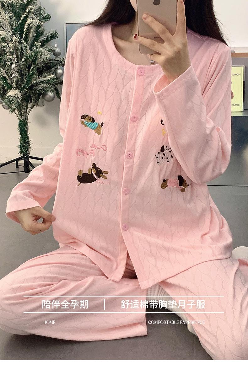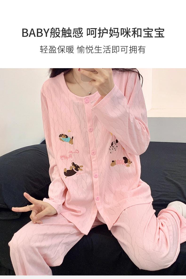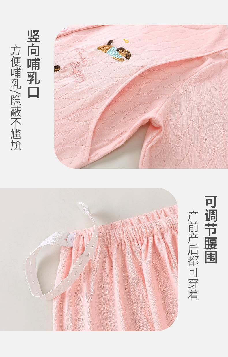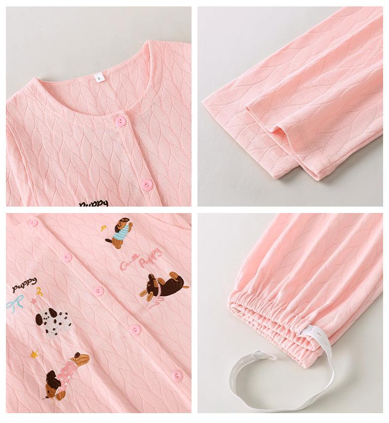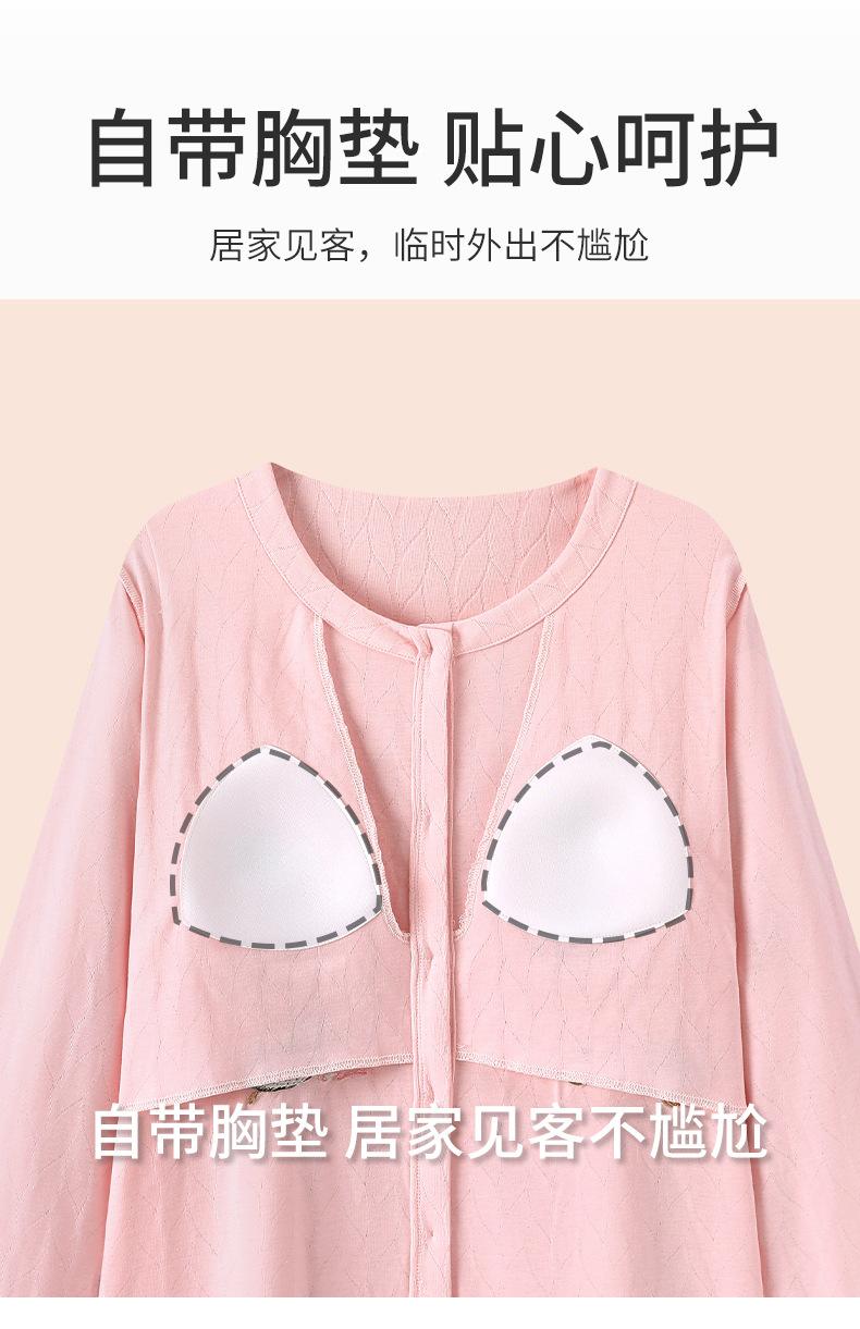 Pijama de Lactancia de Algodón de Cuello Redondo al por Mayor con Almohadillas para el Busto para Mujer, Ropa de Maternidad Dulce de Manga Larga para el Verano Postparto