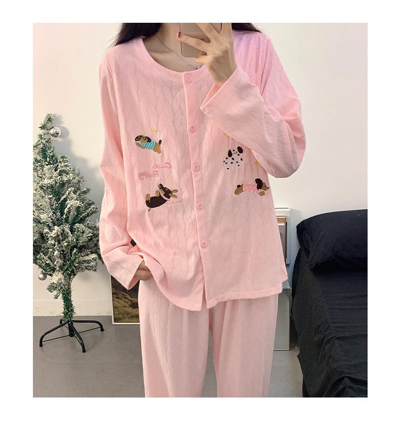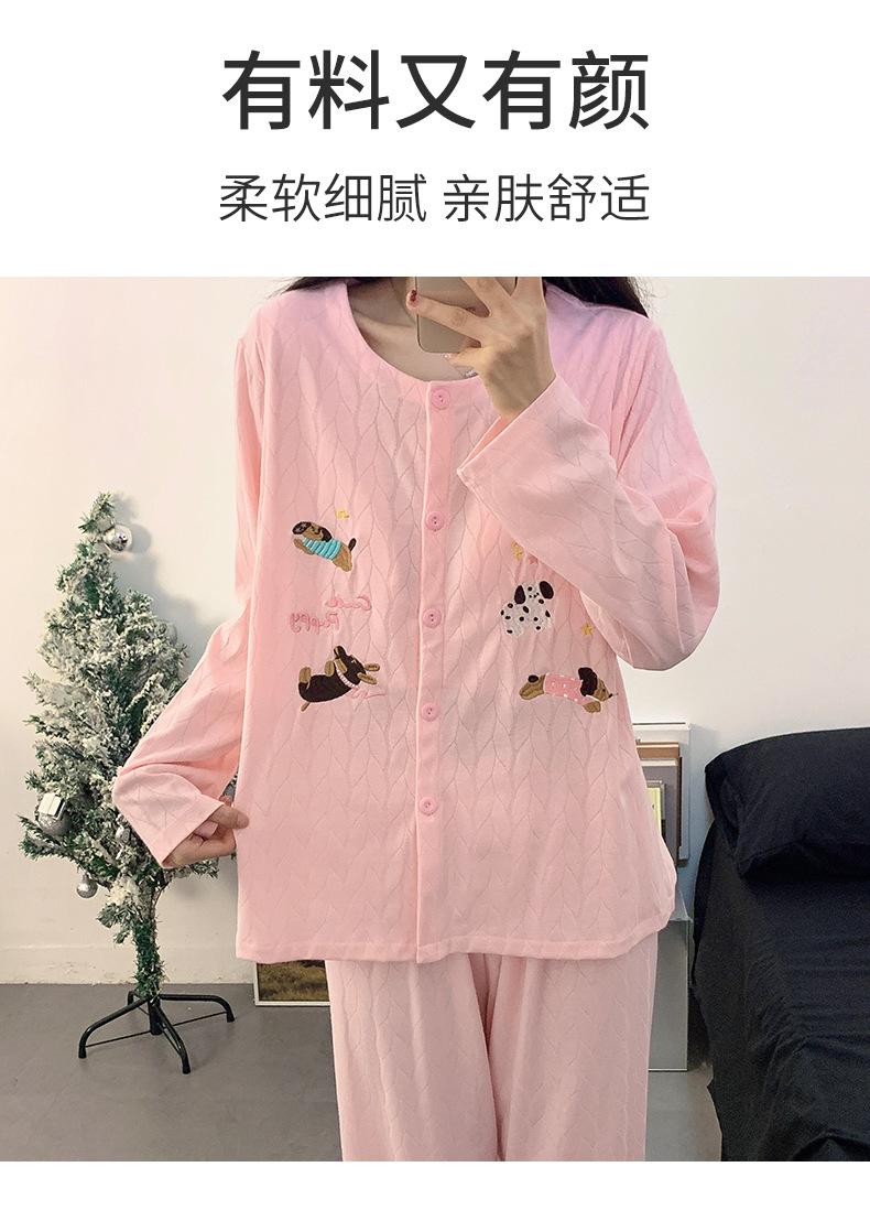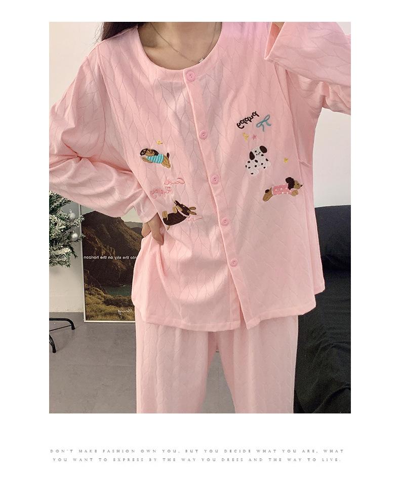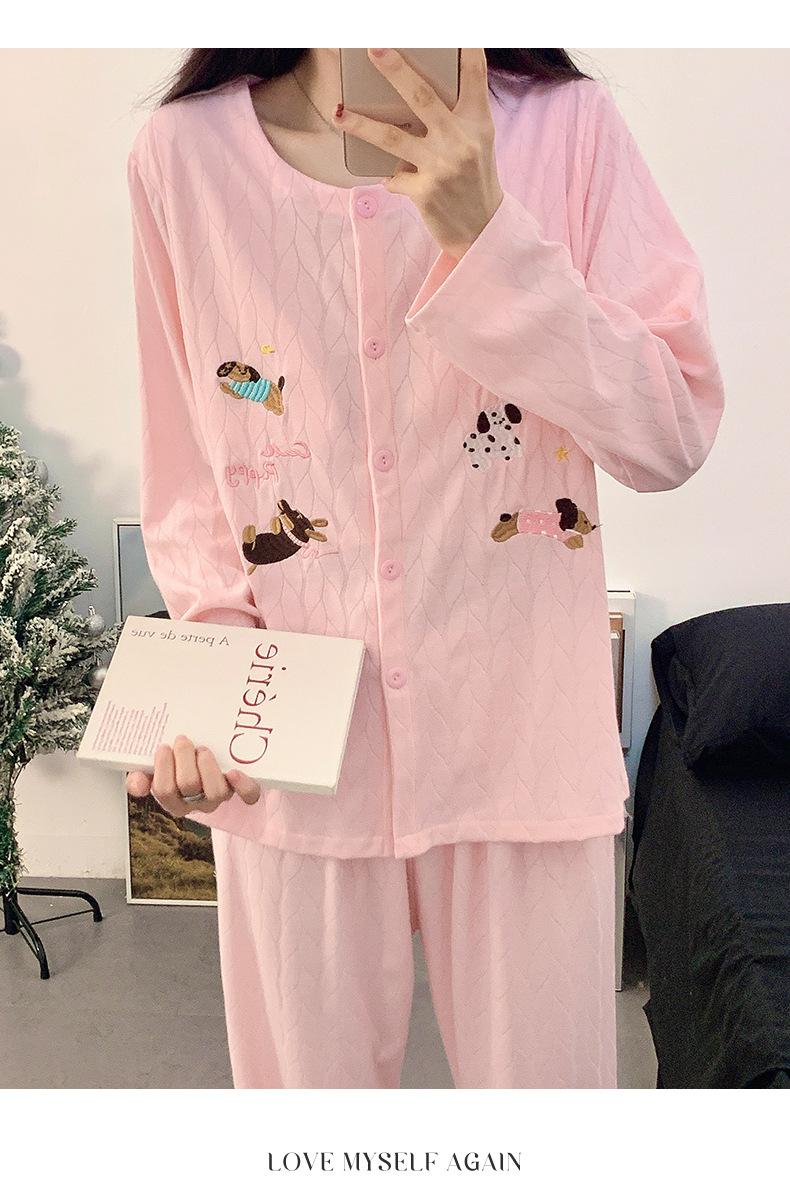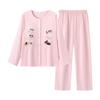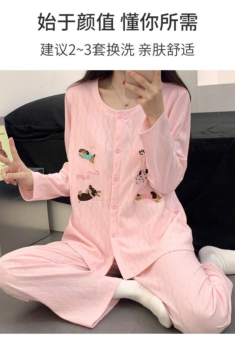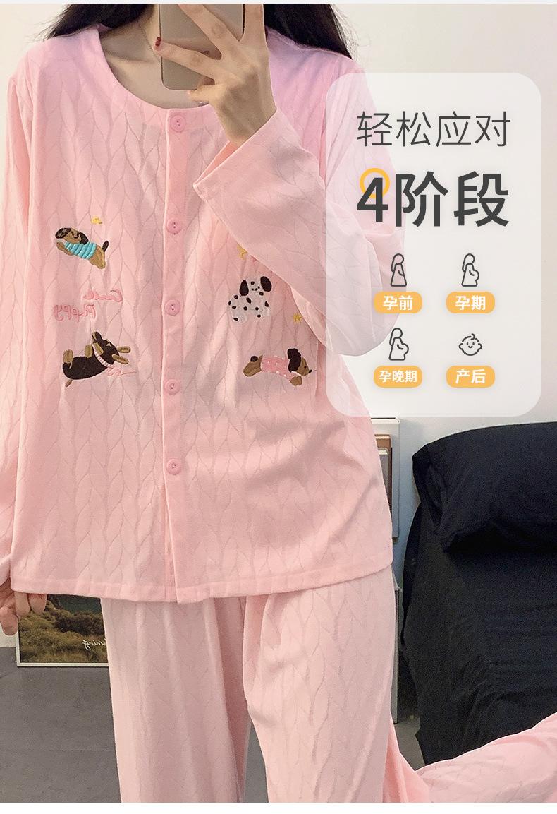 Pijama de Lactancia de Algodón de Cuello Redondo al por Mayor con Almohadillas para el Busto para Mujer, Ropa de Maternidad Dulce de Manga Larga para el Verano Postparto