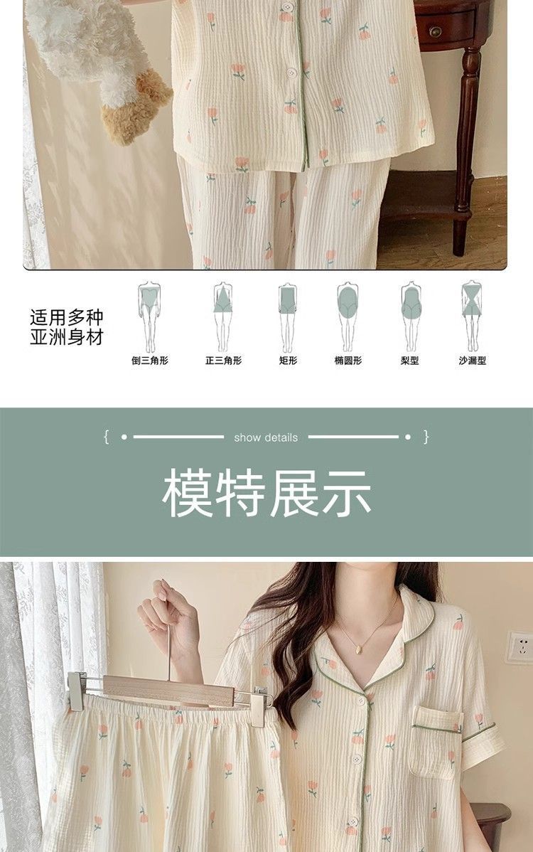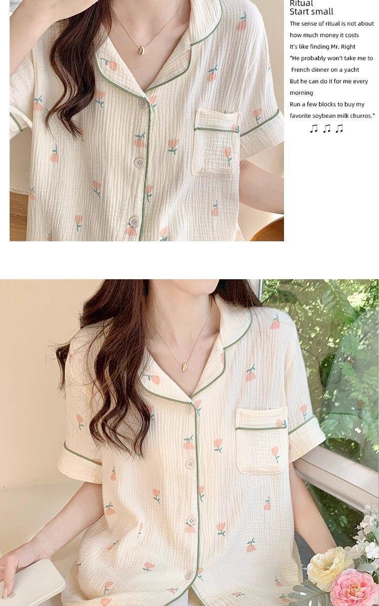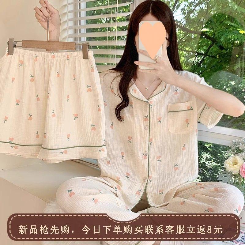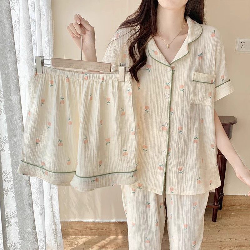 Pijama Nuevo de Tres Piezas para Mujer Tulipán Fresco y Dulce Estilo Ins Manga Corta Shorts Pantalones Ropa para el Hogar