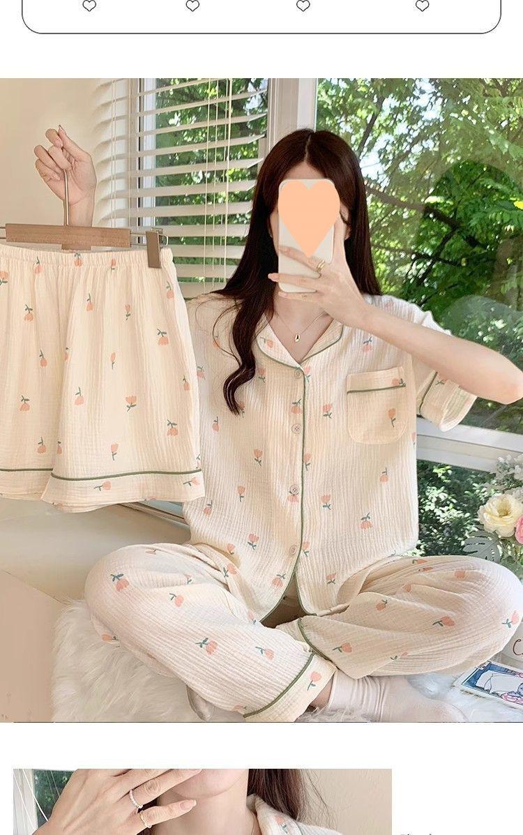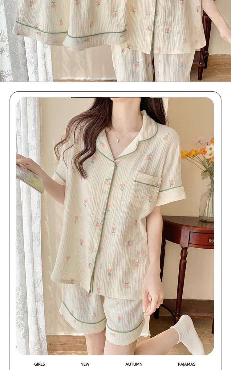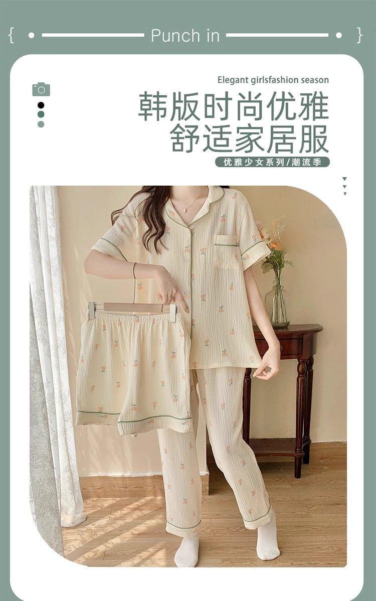 Compra Pijama Nuevo de Tres Piezas para Mujer Tulipán Fresco y Dulce Estilo Ins Manga Corta Shorts Pantalones Ropa para el Hogar al por mayor en Joom.pro