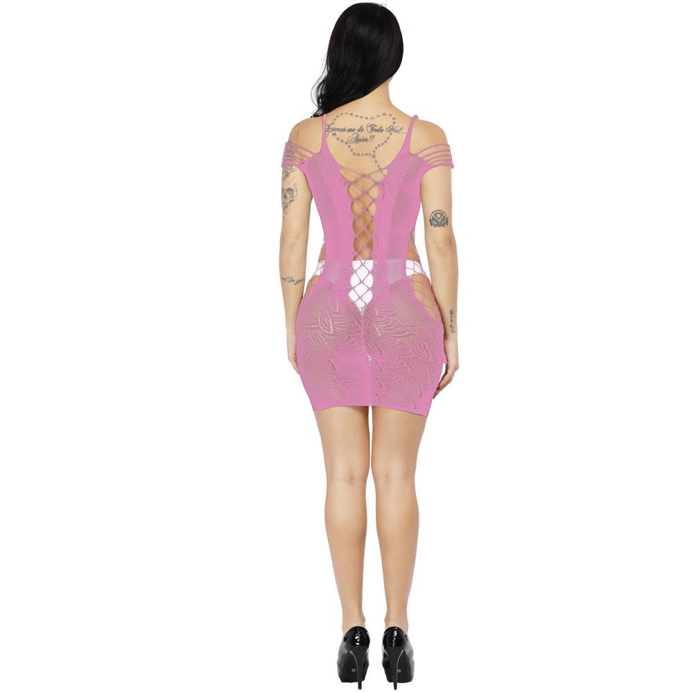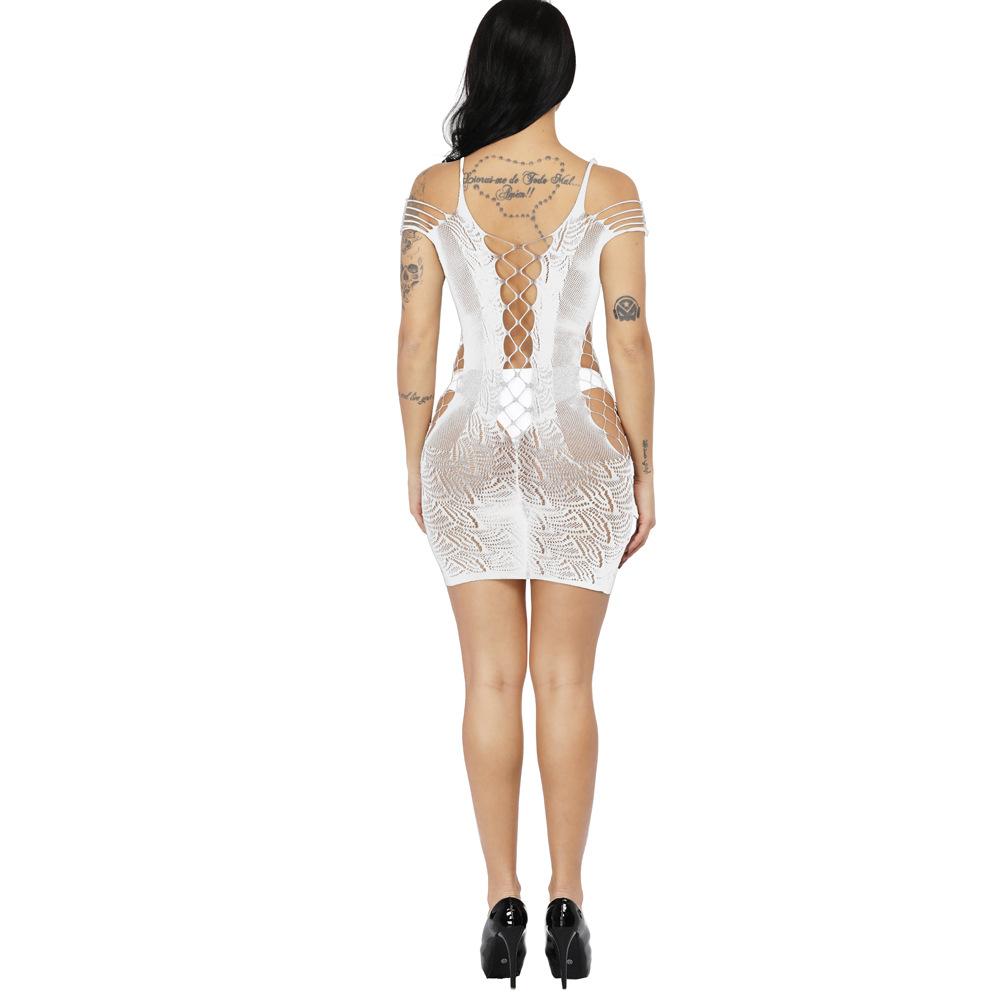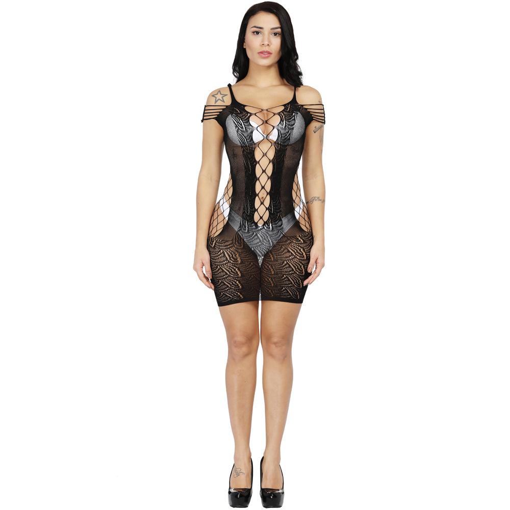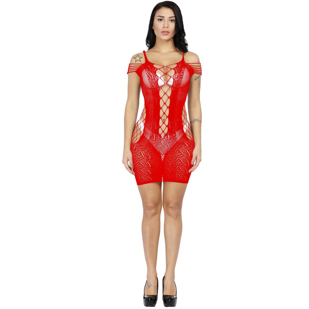 Lencería sexy, falda corta hueca sexy, vestido de malla de una pieza que envuelve la cadera, tirantes, encaje estampado, spandex, lindo, extensiones de cabello