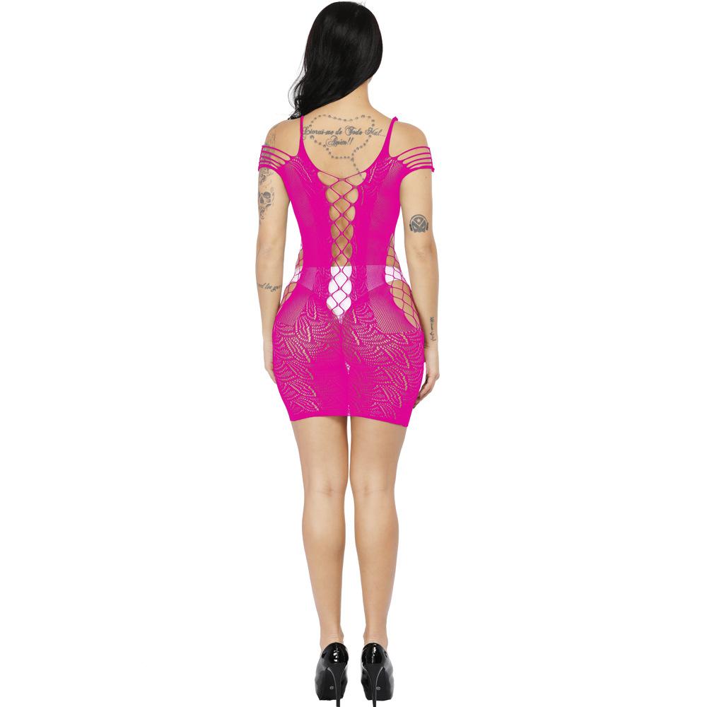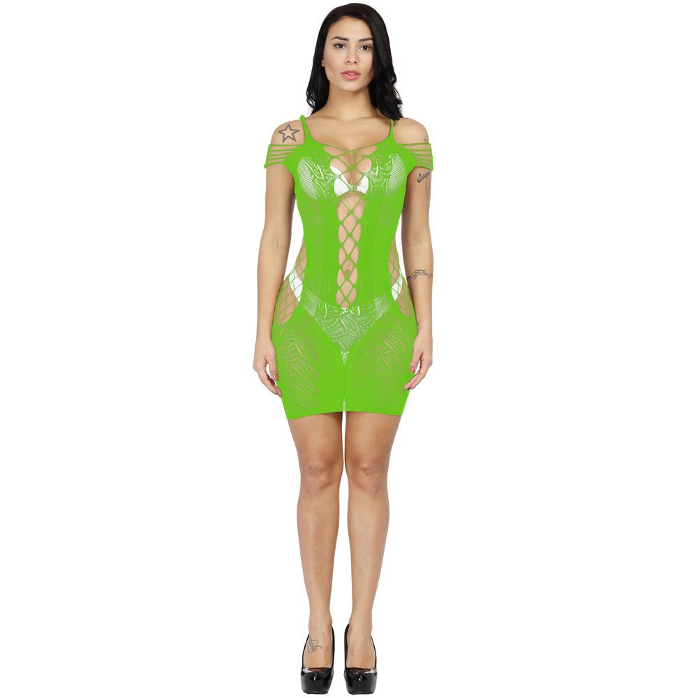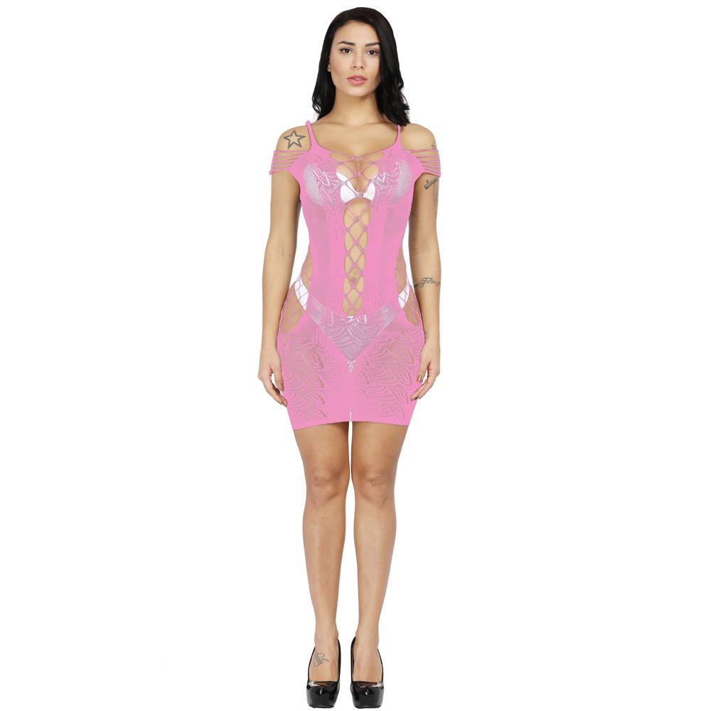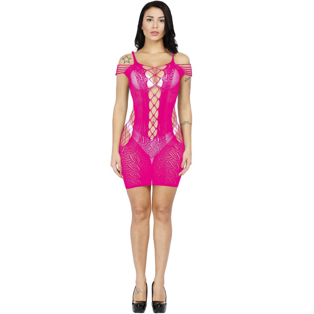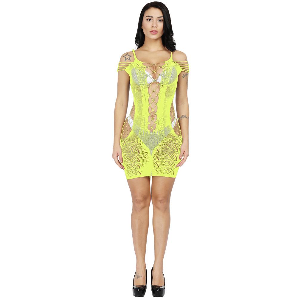 Lencería sexy, falda corta hueca sexy, vestido de malla de una pieza que envuelve la cadera, tirantes, encaje estampado, spandex, lindo, extensiones de cabello