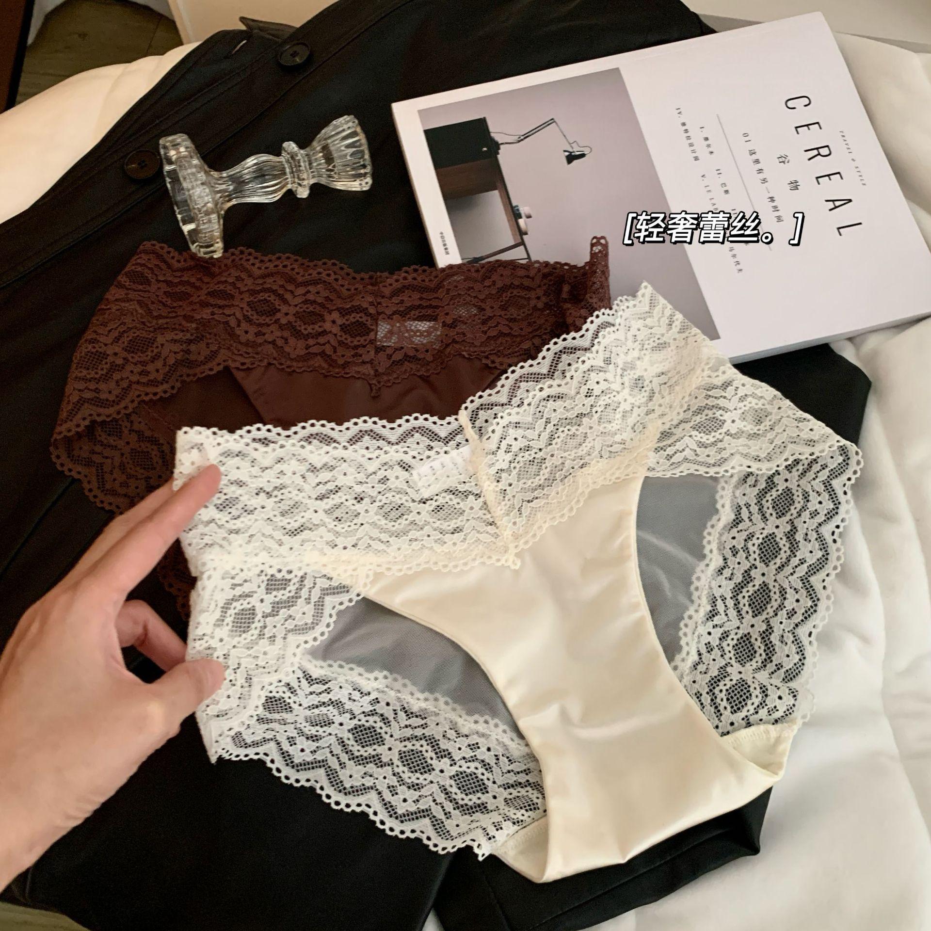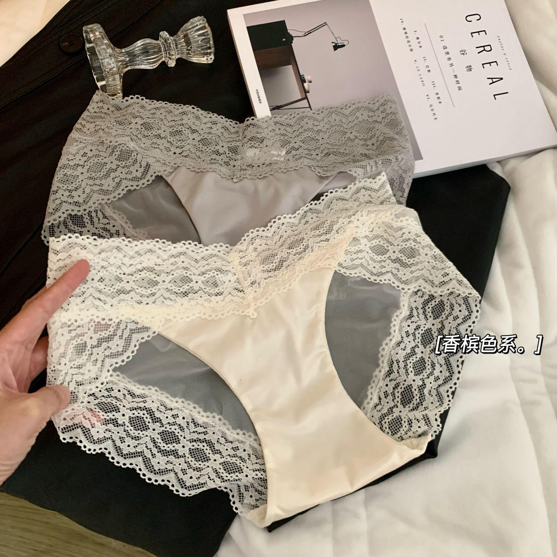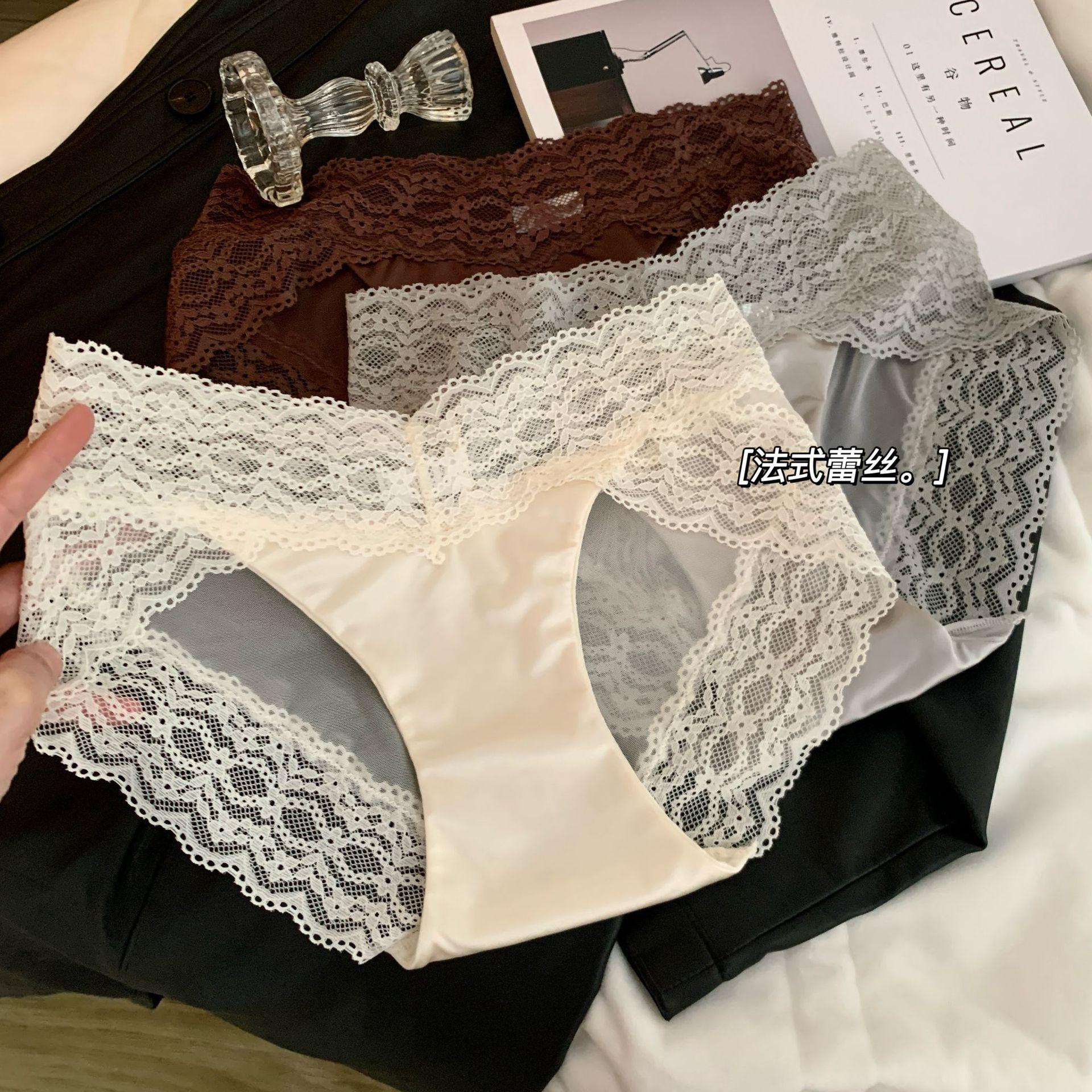 Braguitas de Algodón Puro con Encaje de Lujo Ligero Estilo Francés, Deseo Puro, Nuevas, de Satén Seda de Hielo, Cómodas, Transpirables, Entrepierna de Algodón Puro para Mujeres