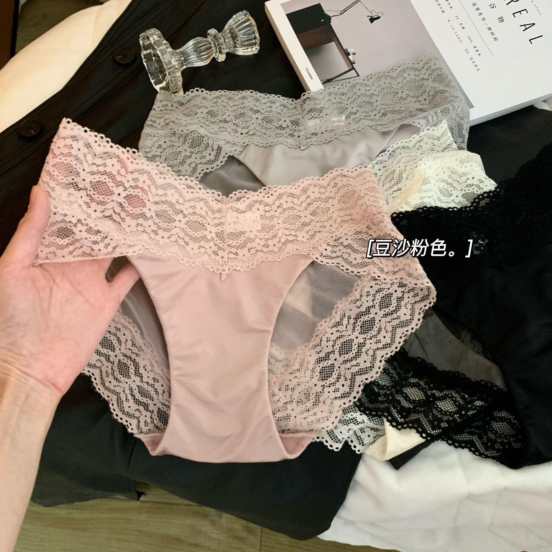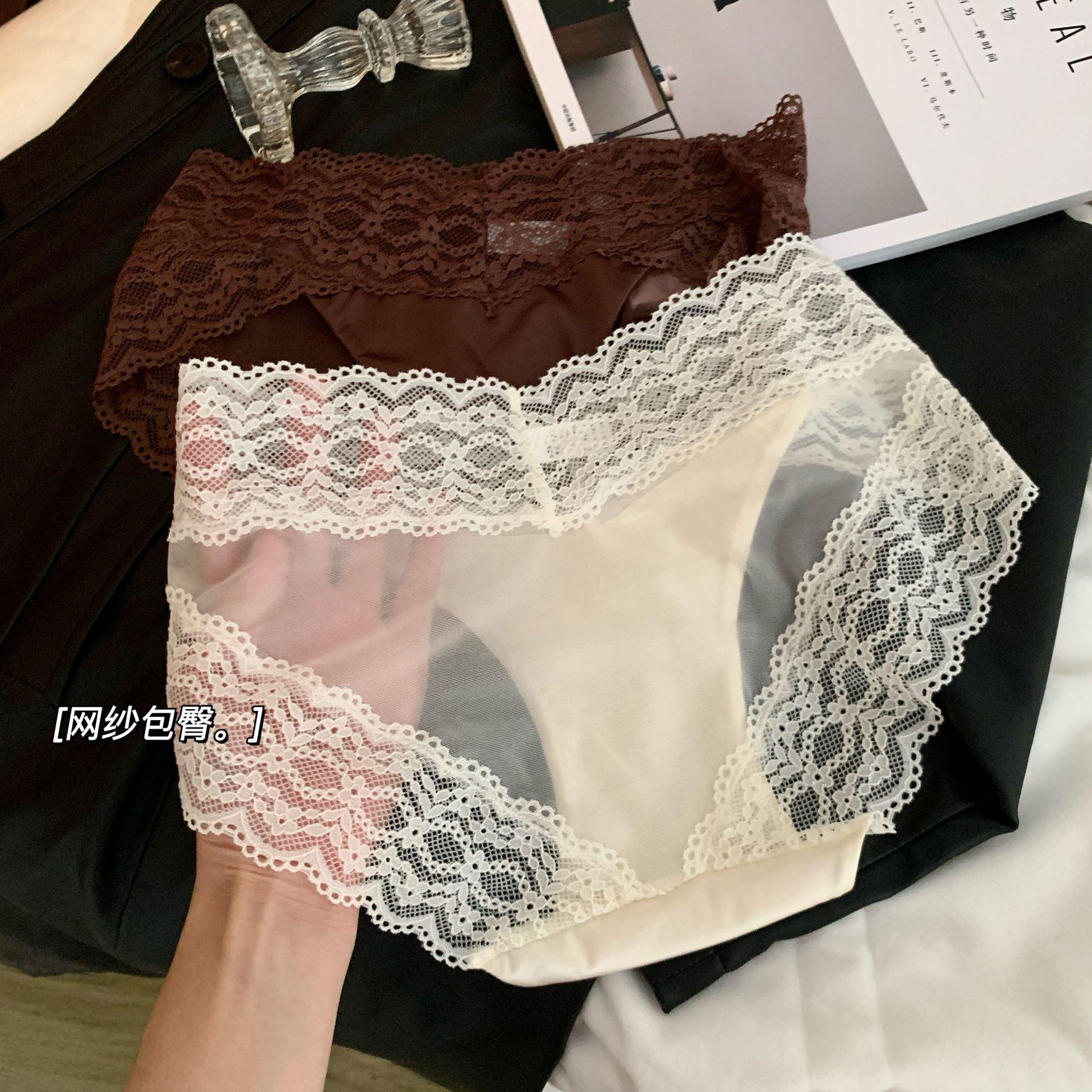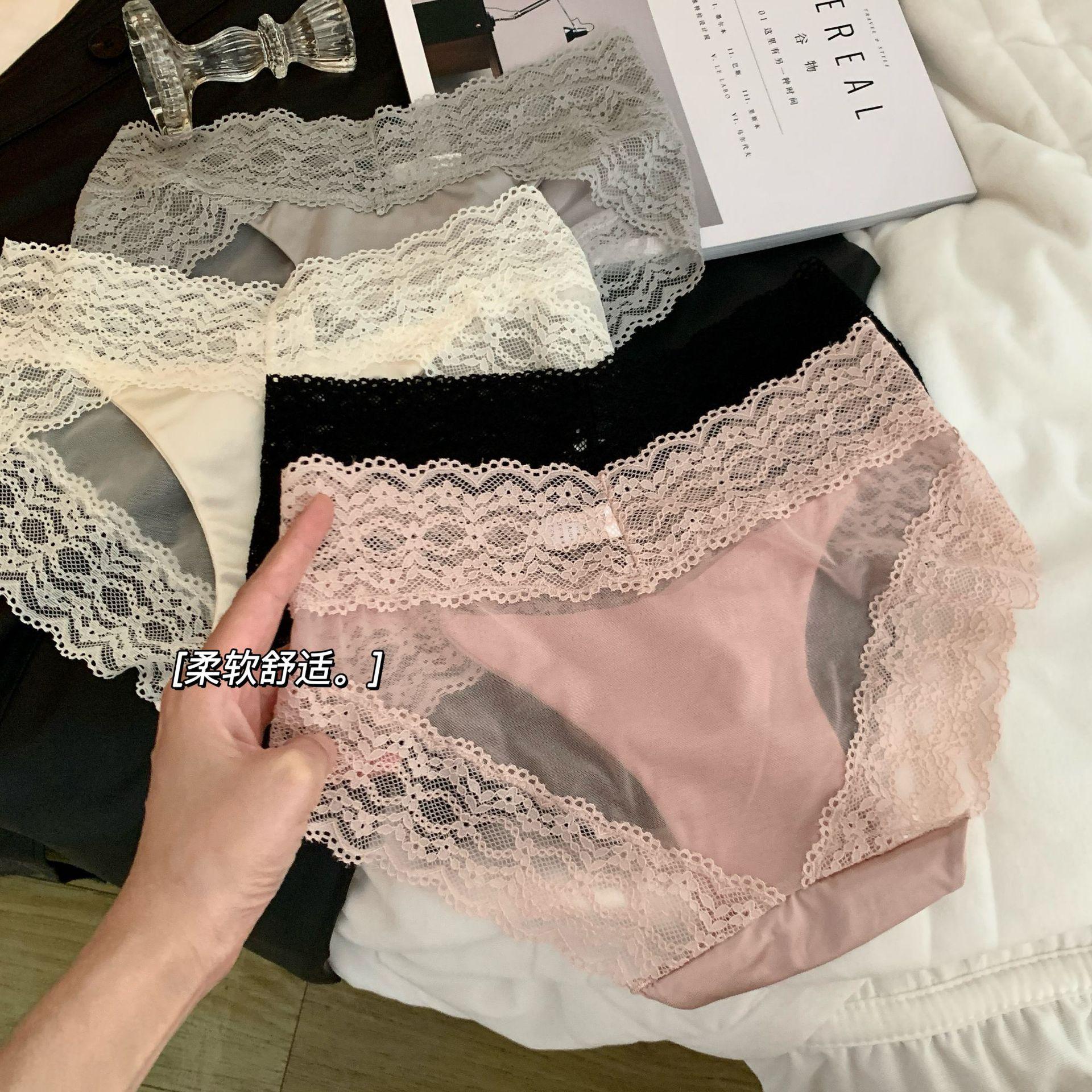 Braguitas de Algodón Puro con Encaje de Lujo Ligero Estilo Francés, Deseo Puro, Nuevas, de Satén Seda de Hielo, Cómodas, Transpirables, Entrepierna de Algodón Puro para Mujeres