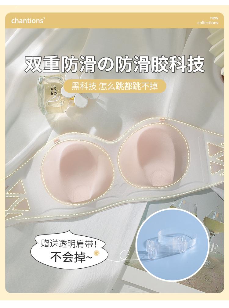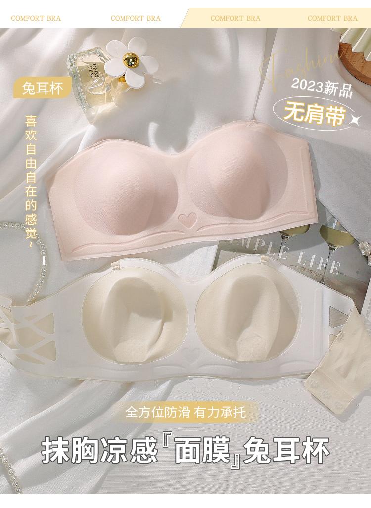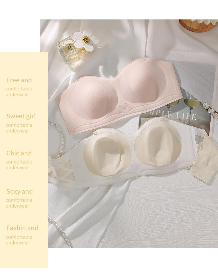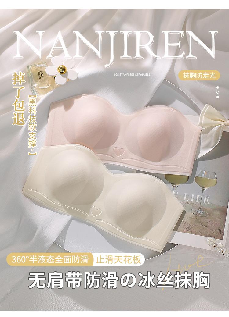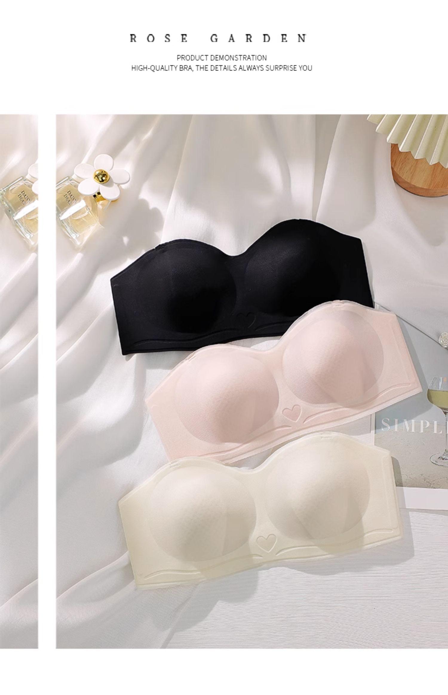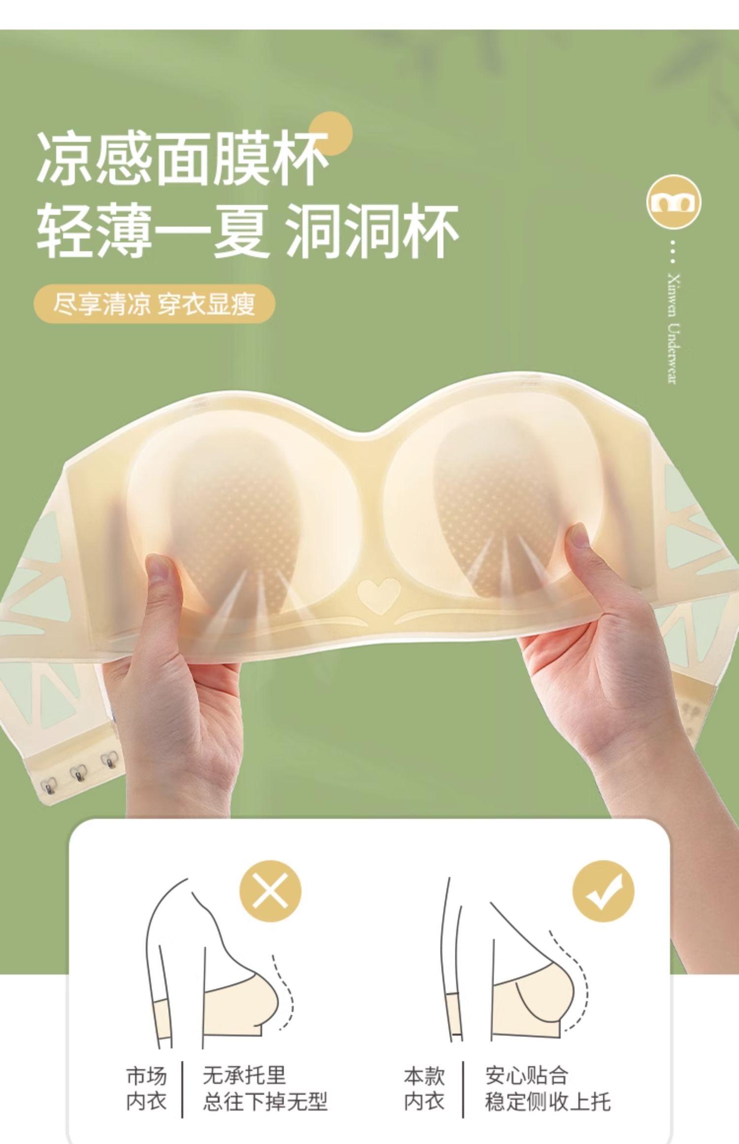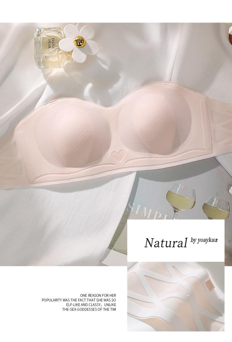 Sostén Bandeau sin Tirantes para Mujer, Antideslizante, Push-Up, Delgado, Copa Refrescante Invisible de Verano, Sostén Envolvente Sin Costuras