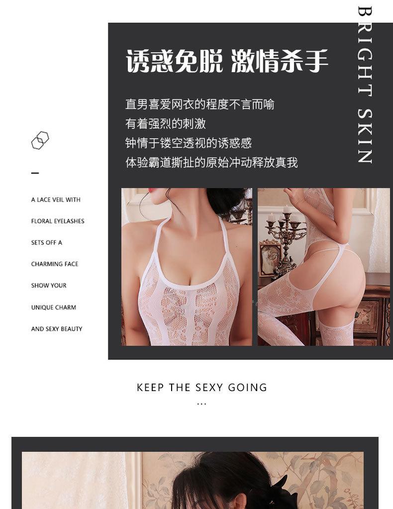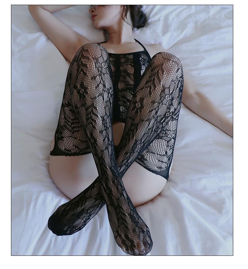 Noche Larga Ropa Interior Sexy Medias Sexy Halter Encaje Medias Sexy de Red Cuello Colgante Hueco Entrepierna Abierta Malla 075